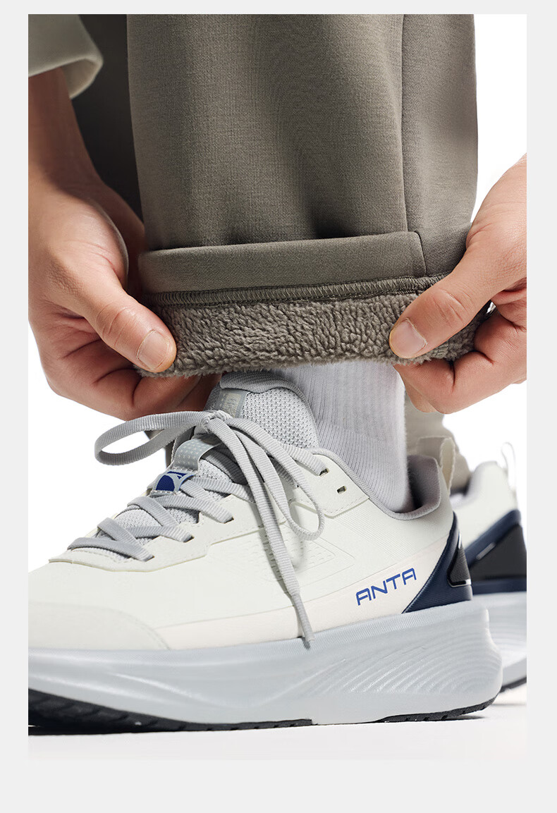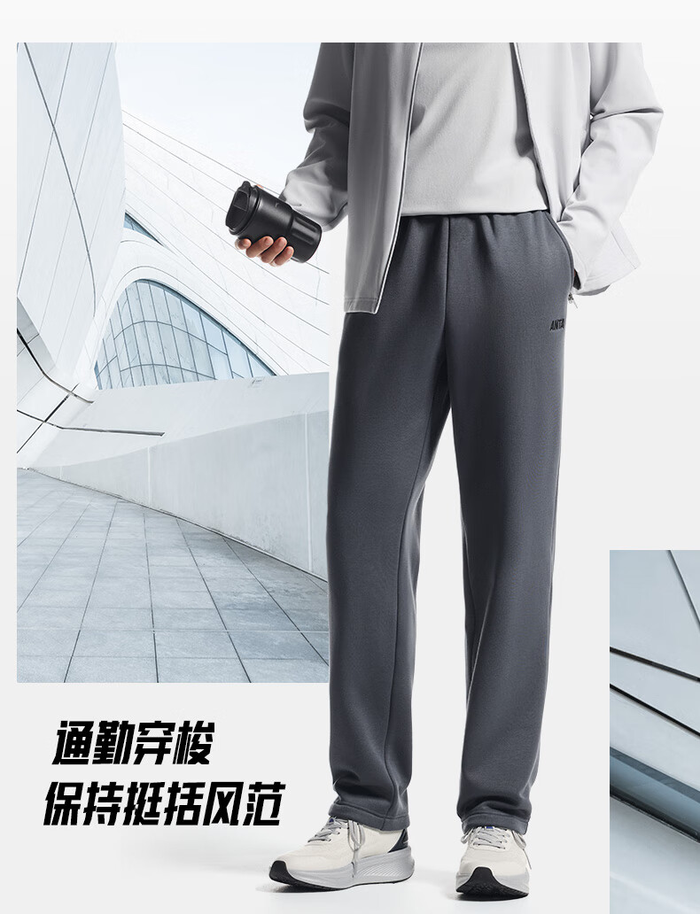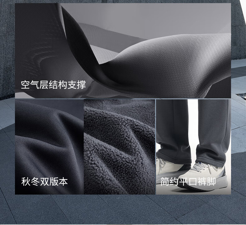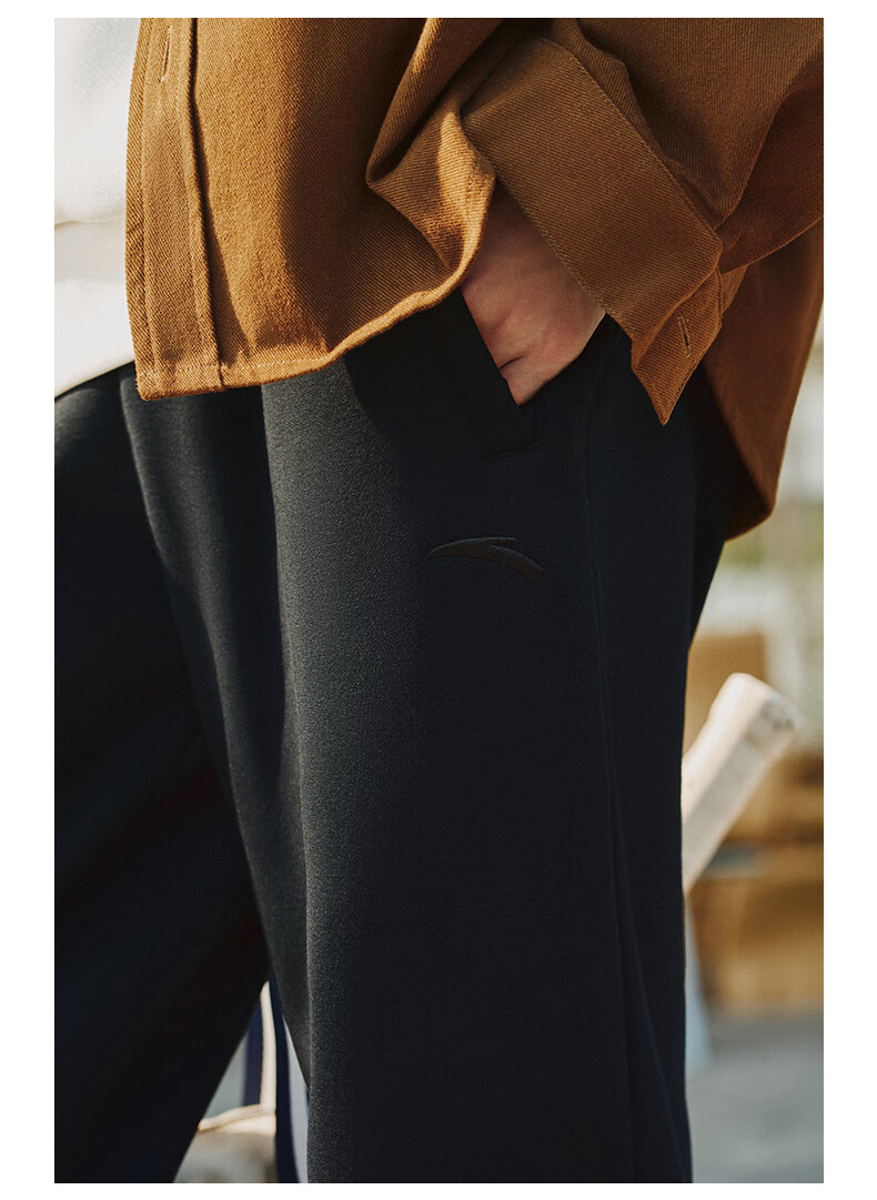 安踏加绒保暖运动裤男士直筒卫裤秋季针织户外跑步长裤平口休闲裤