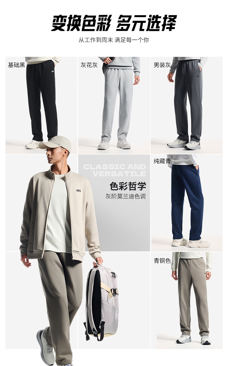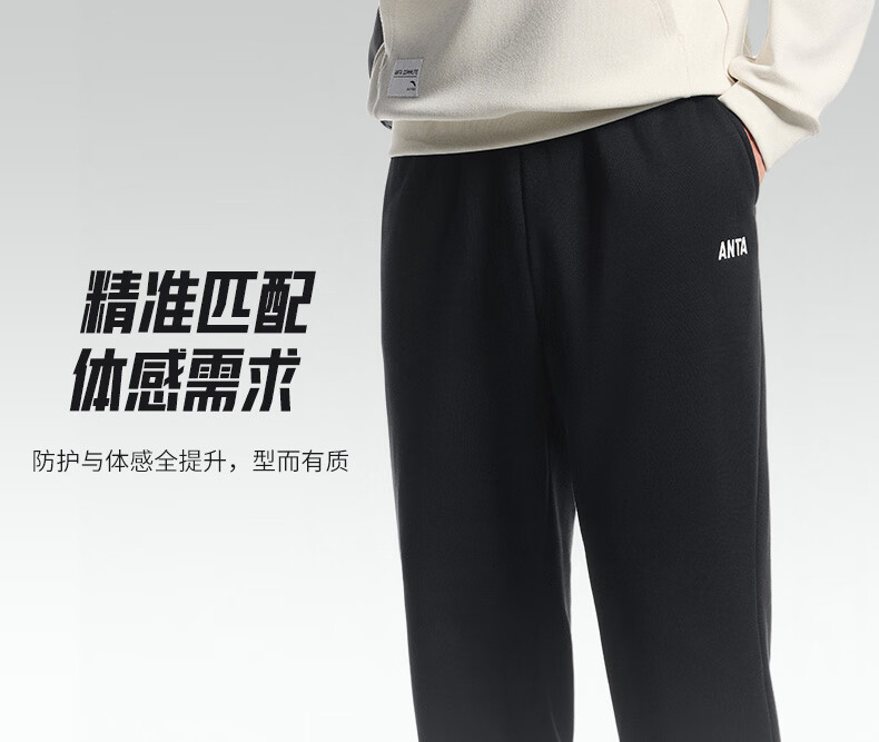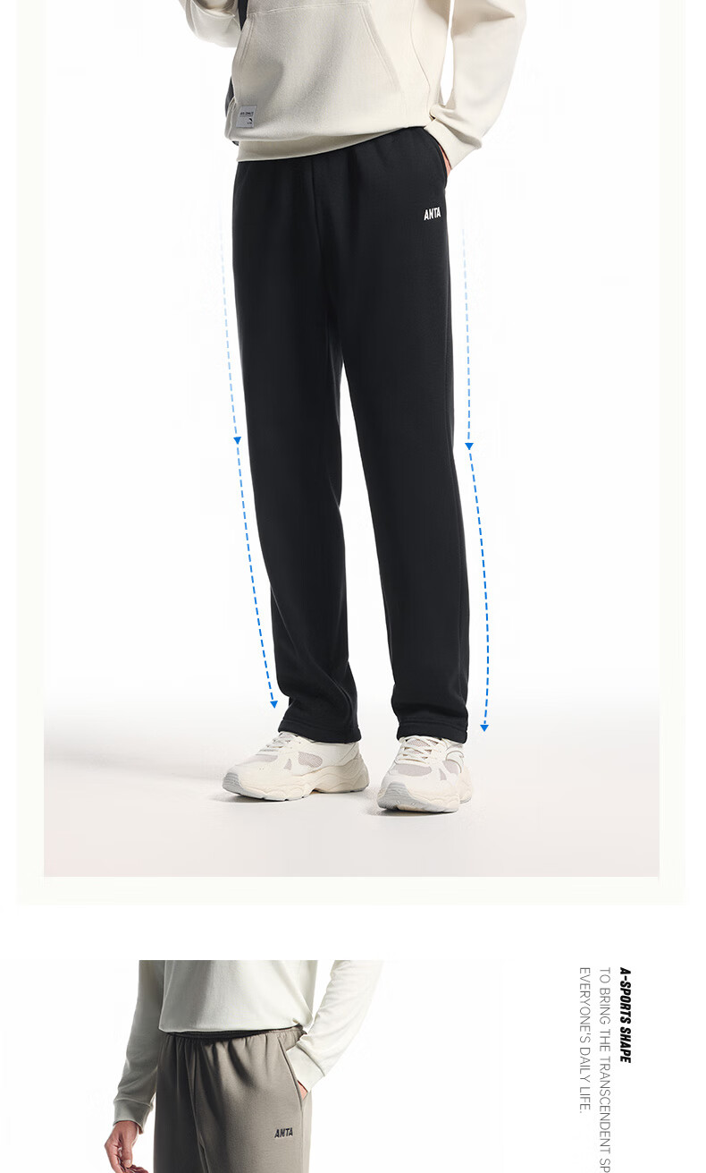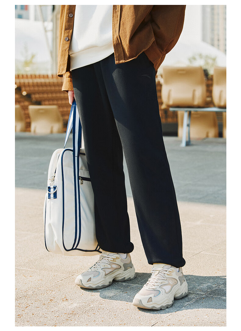 安踏加绒保暖运动裤男士直筒卫裤秋季针织户外跑步长裤平口休闲裤