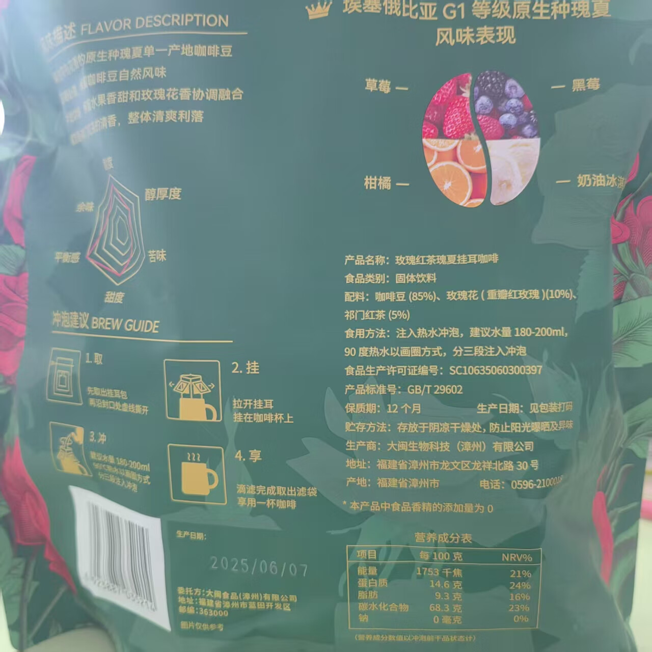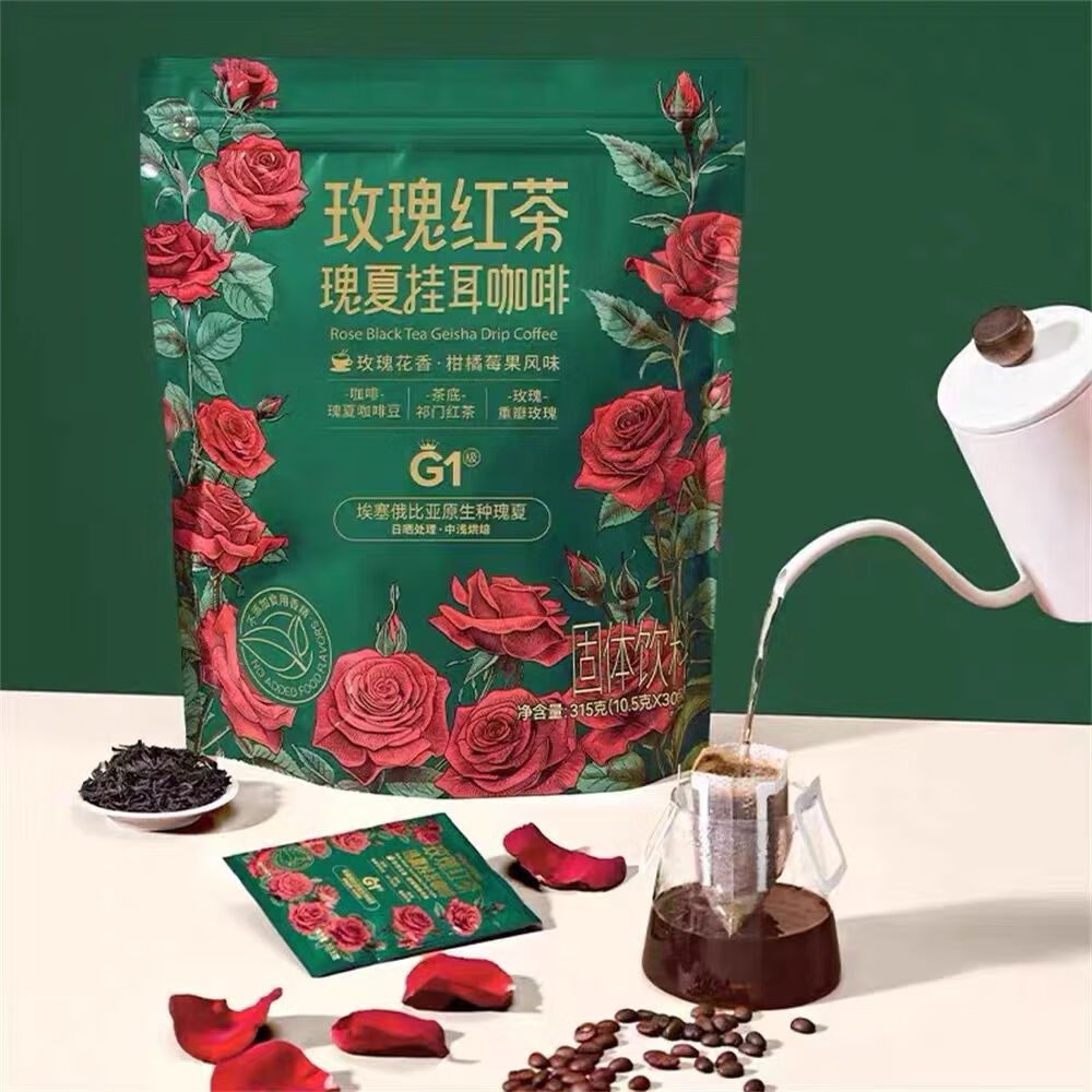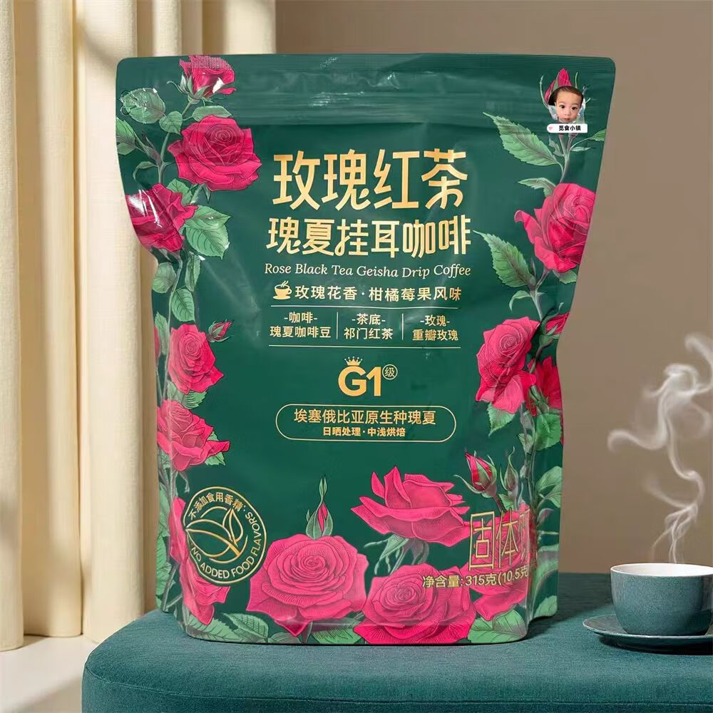 DOURUIMI玫瑰红茶瑰夏挂耳咖啡315g(10.5g*30小包)独立包装【临期清仓】