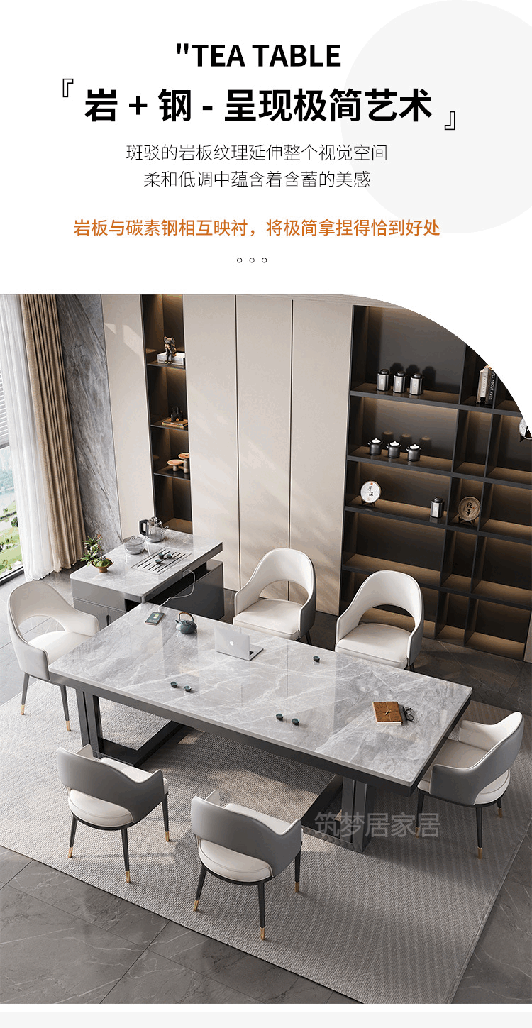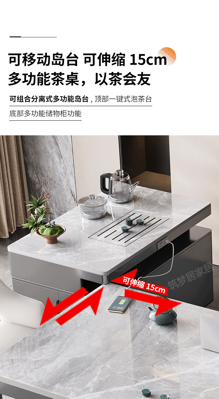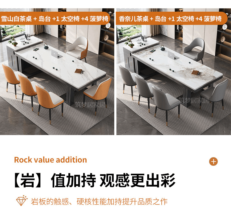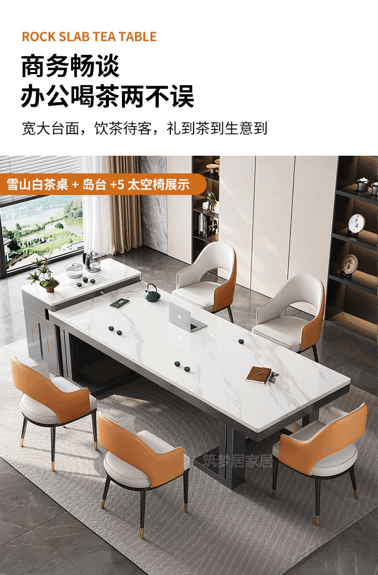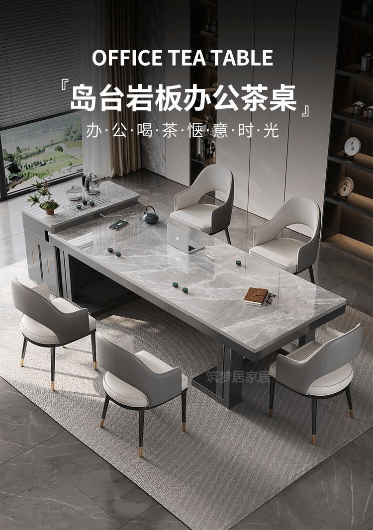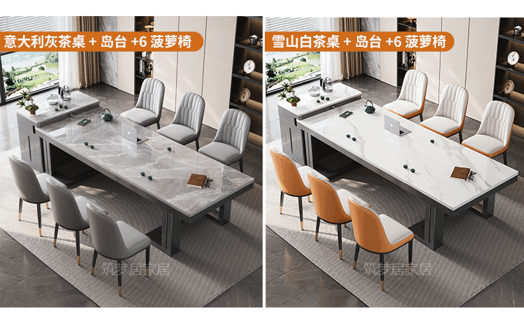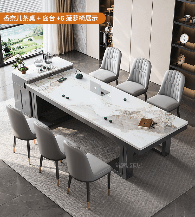 倘然之家轻奢简约岩板岛台餐桌茶桌椅组合高级感办公室家用烧水壶一体茶台 1.8米总长【茶桌岛台】+单桌