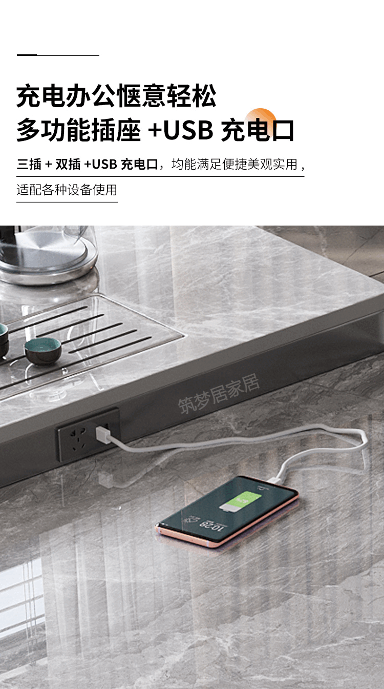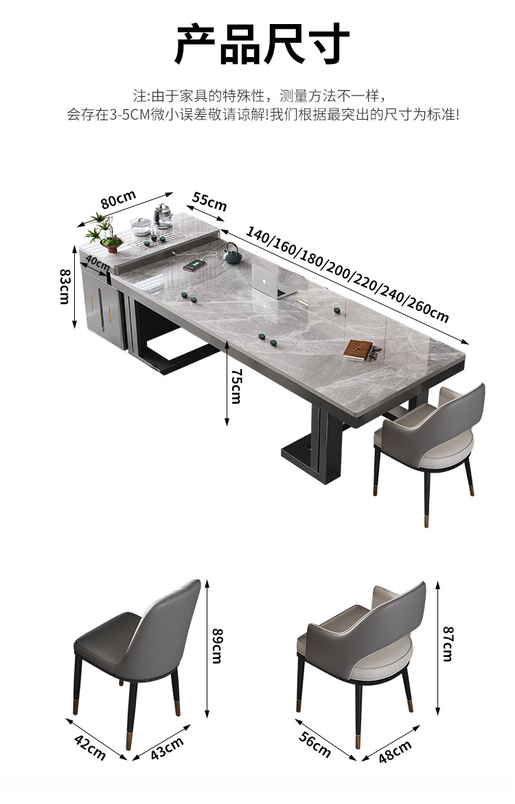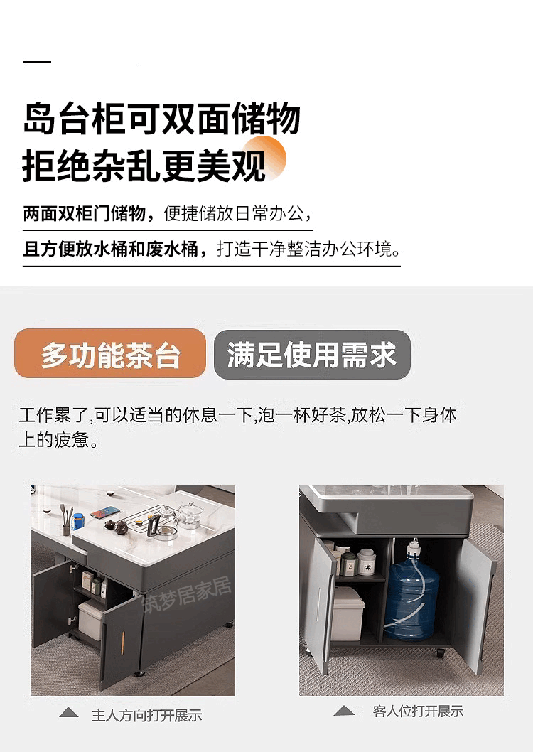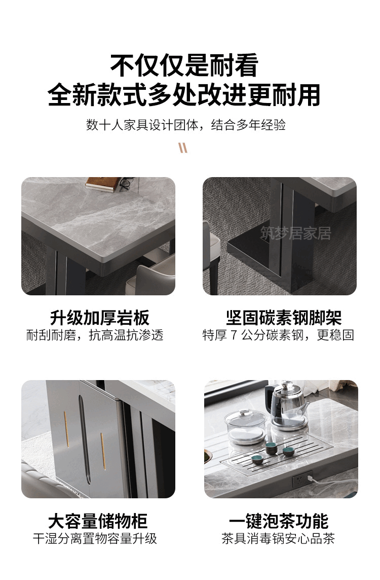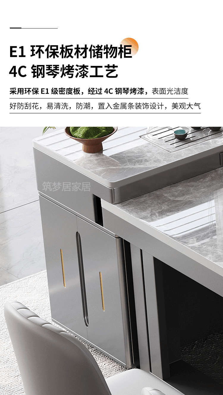 倘然之家轻奢简约岩板岛台餐桌茶桌椅组合高级感办公室家用烧水壶一体茶台 1.8米总长【茶桌岛台】+单桌