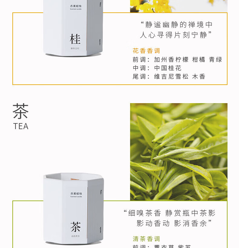 现代园丁桂花香薰蜡烛家用室内持久熏香伴手礼茶香淡香卧室香氛女香薰 龙井