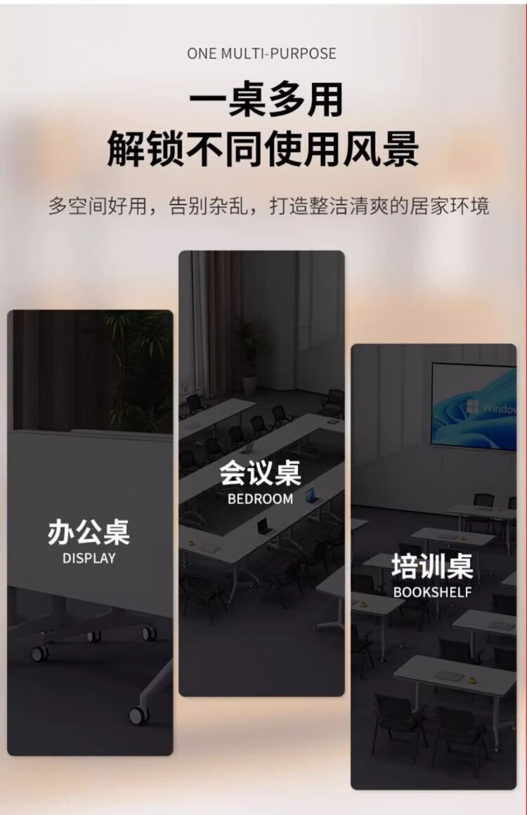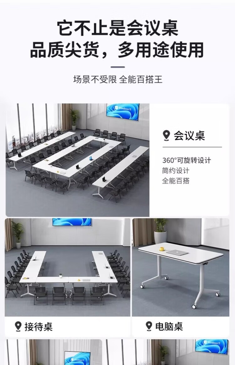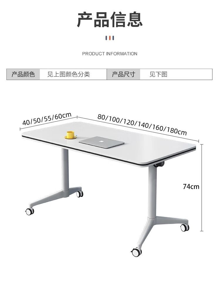 弘星隆培训桌椅组合移动办公桌长条桌教育机构拼接培训桌课桌折叠会议桌 长80宽40白色/可移动可折叠 无备注默认发【白色直角】桌面