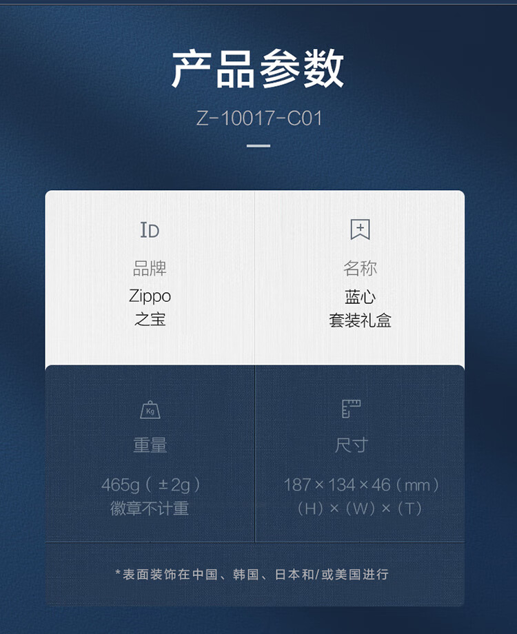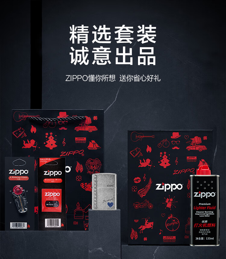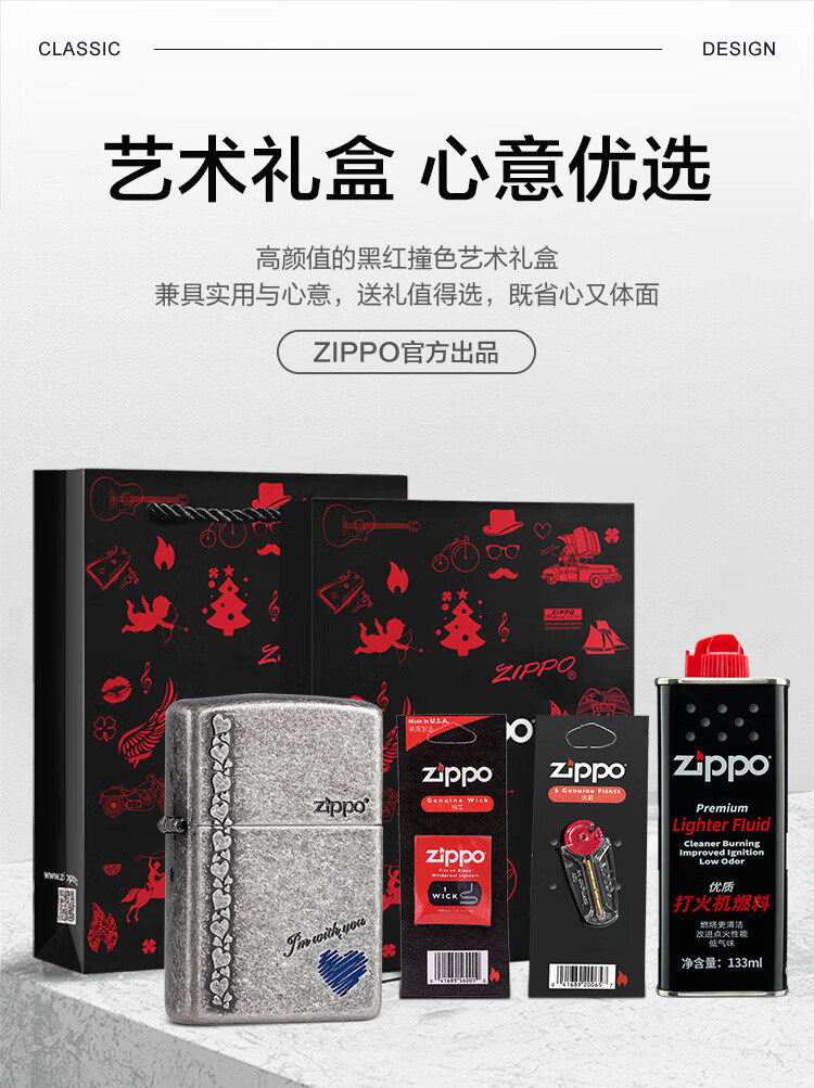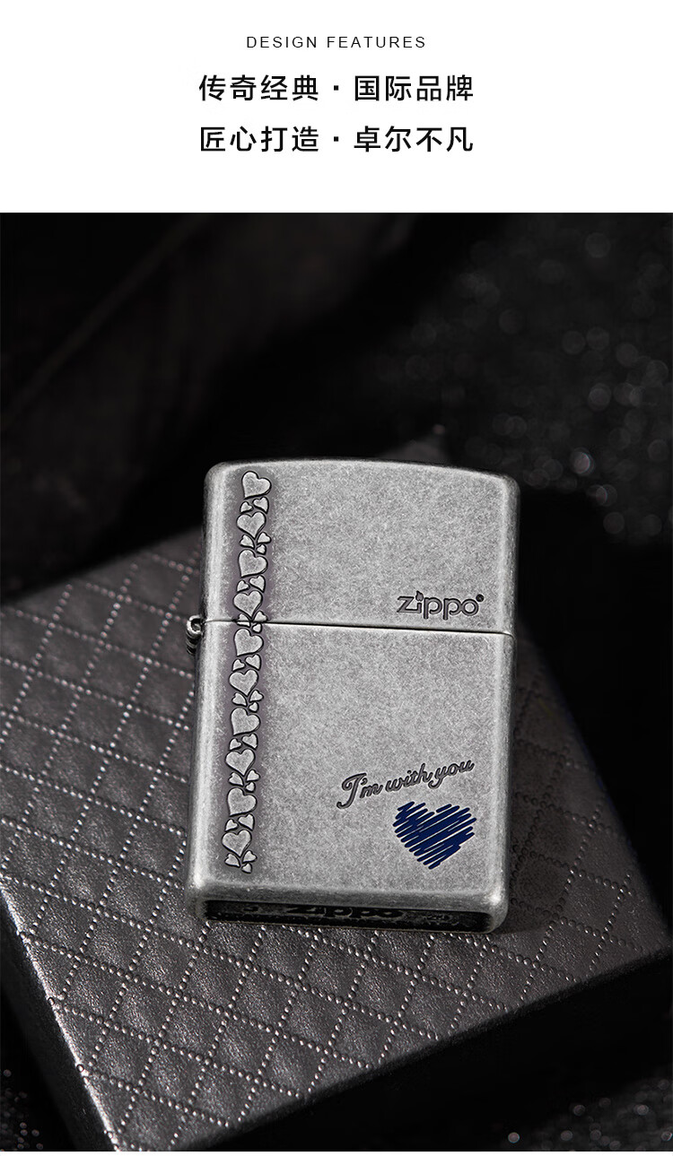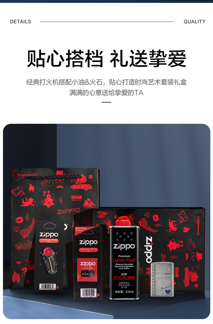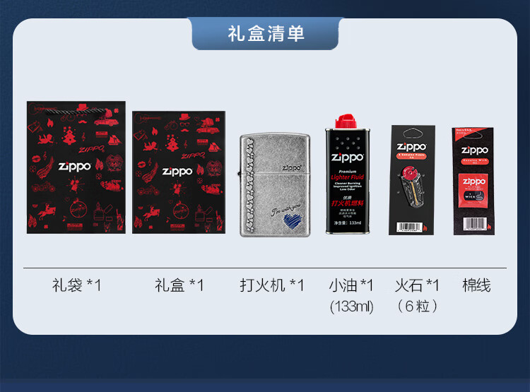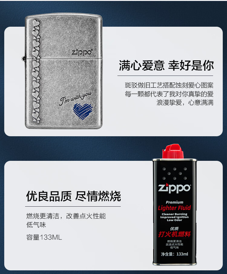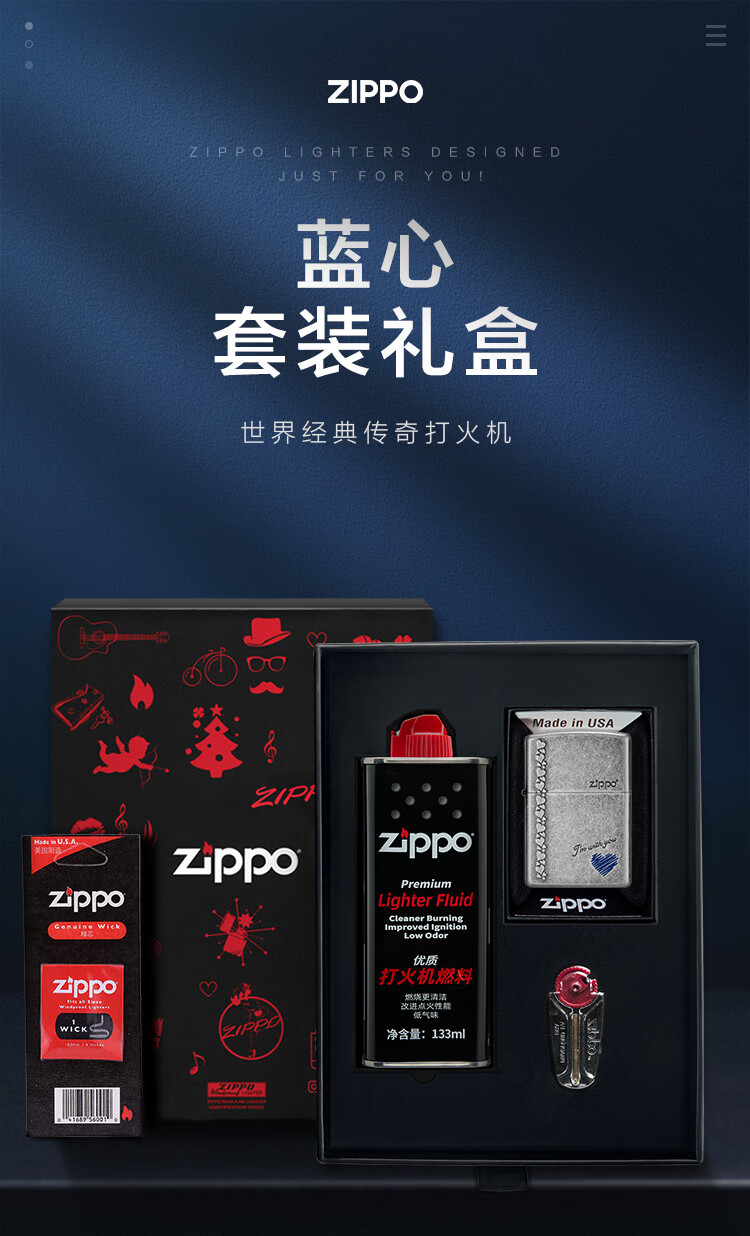 ZIPPO打火机之宝防风煤油 蓝心 生日礼物送男友送老公 含油套装