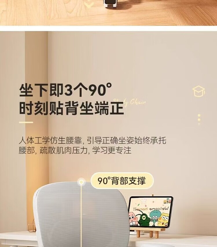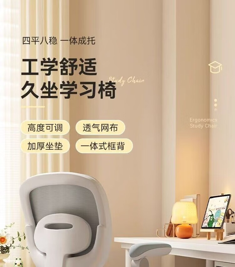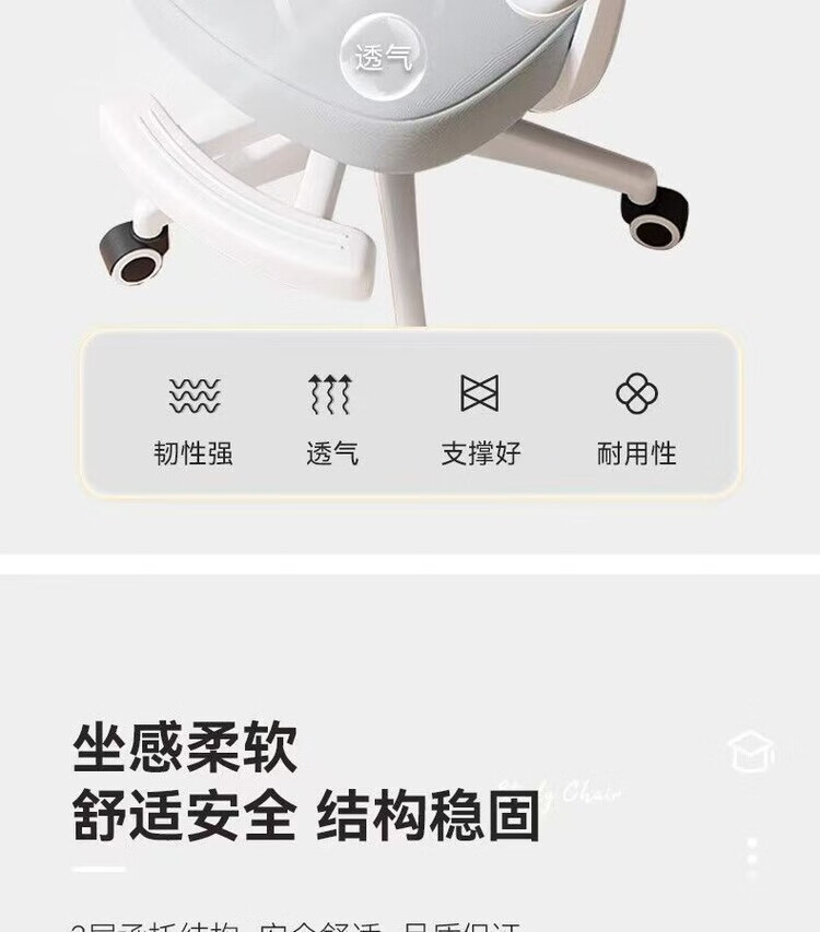 欣慕雅儿童学习椅可升降调节家用写字椅矫正坐姿靠背凳子小学生书桌椅子 梦幻蓝+加厚呼吸棉+静音万向轮