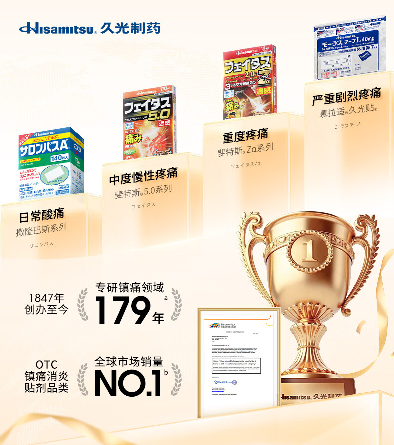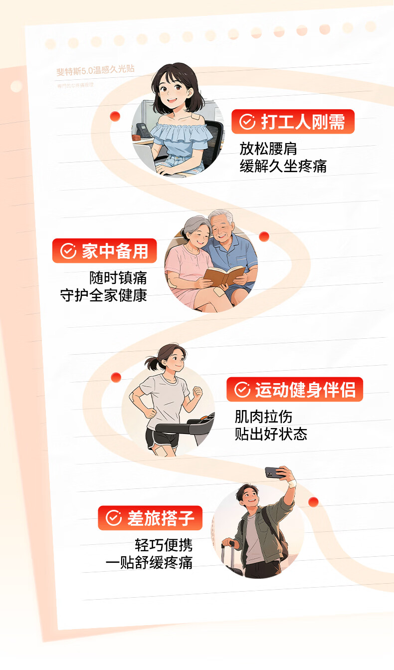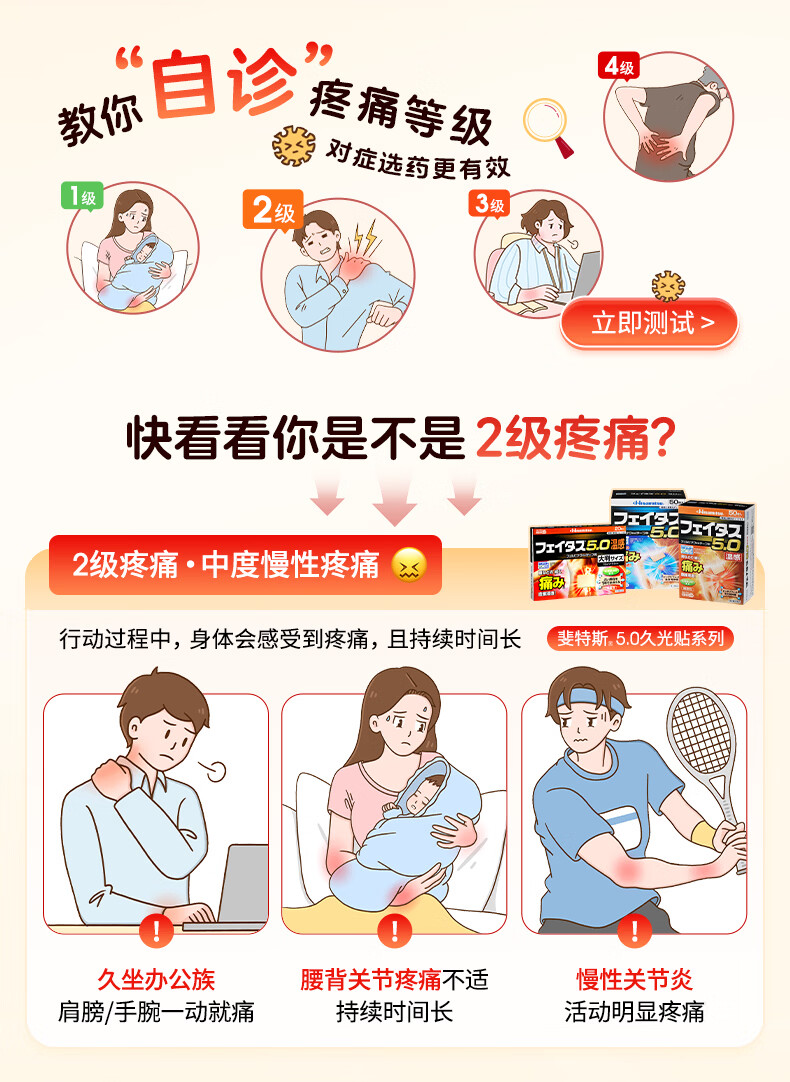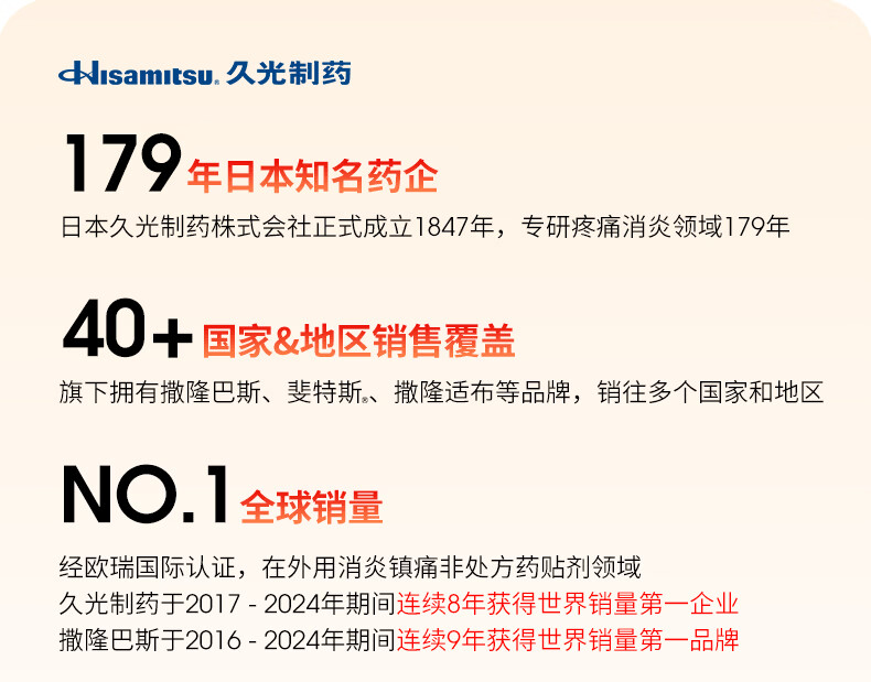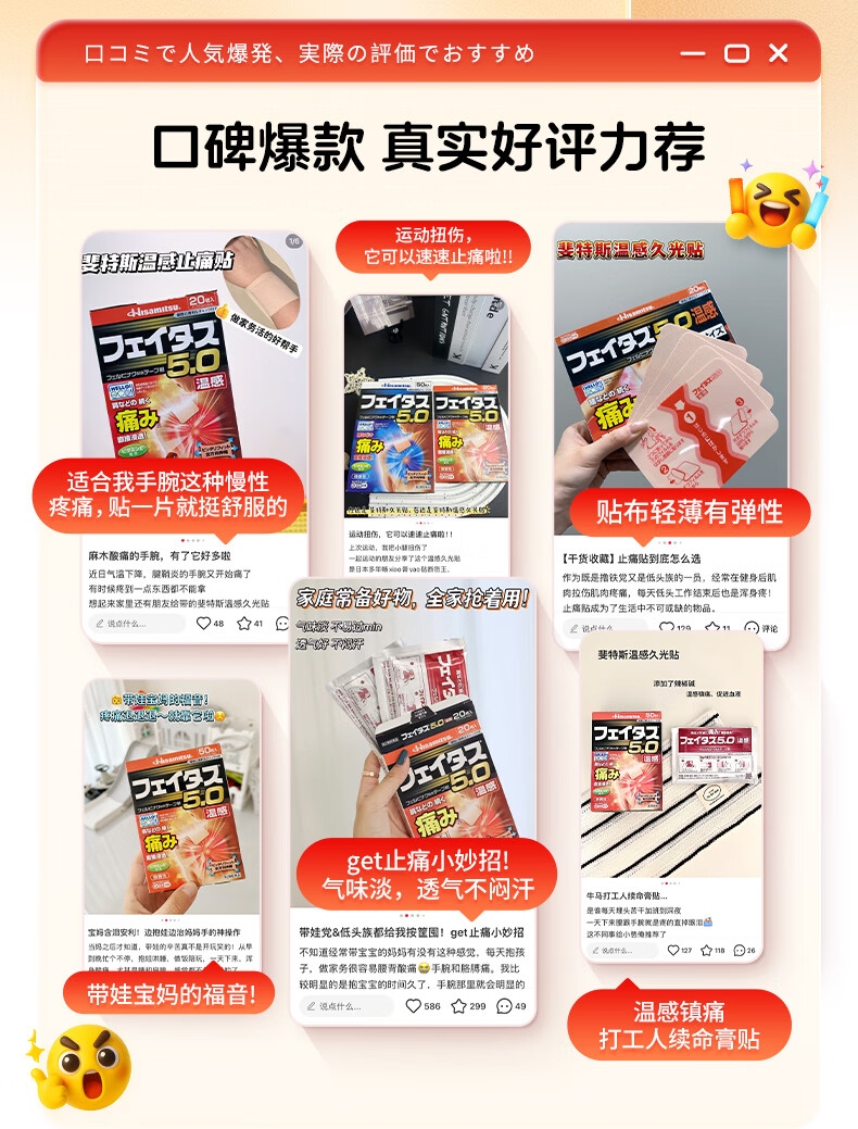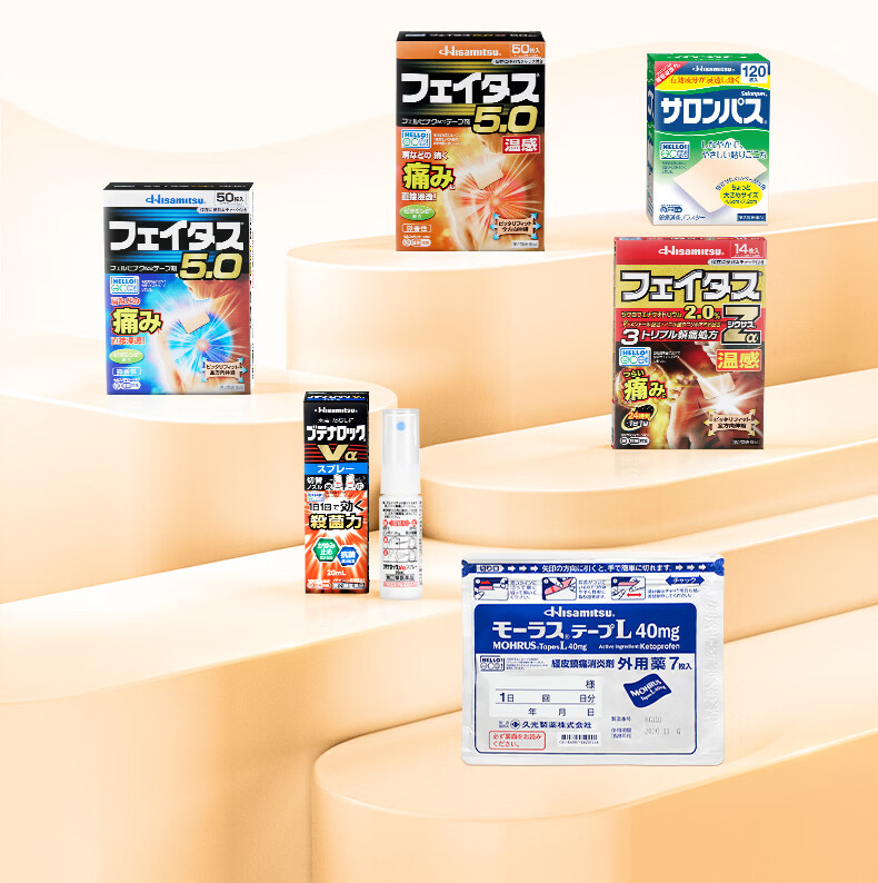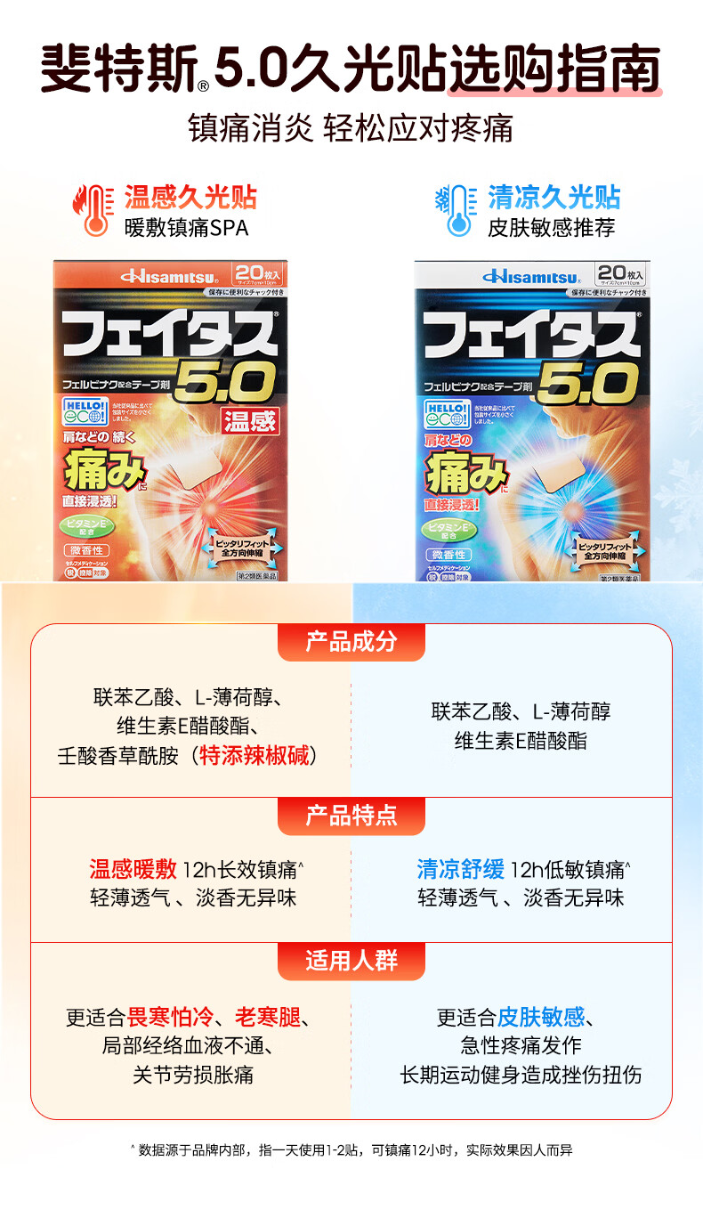 久光制药温感久光贴膏斐特斯5.0镇痛贴日本膏药联苯乙酸止痛颈椎腰痛肩颈腱鞘炎肩周炎(7cm*10cm)20贴撒隆巴斯升级版
