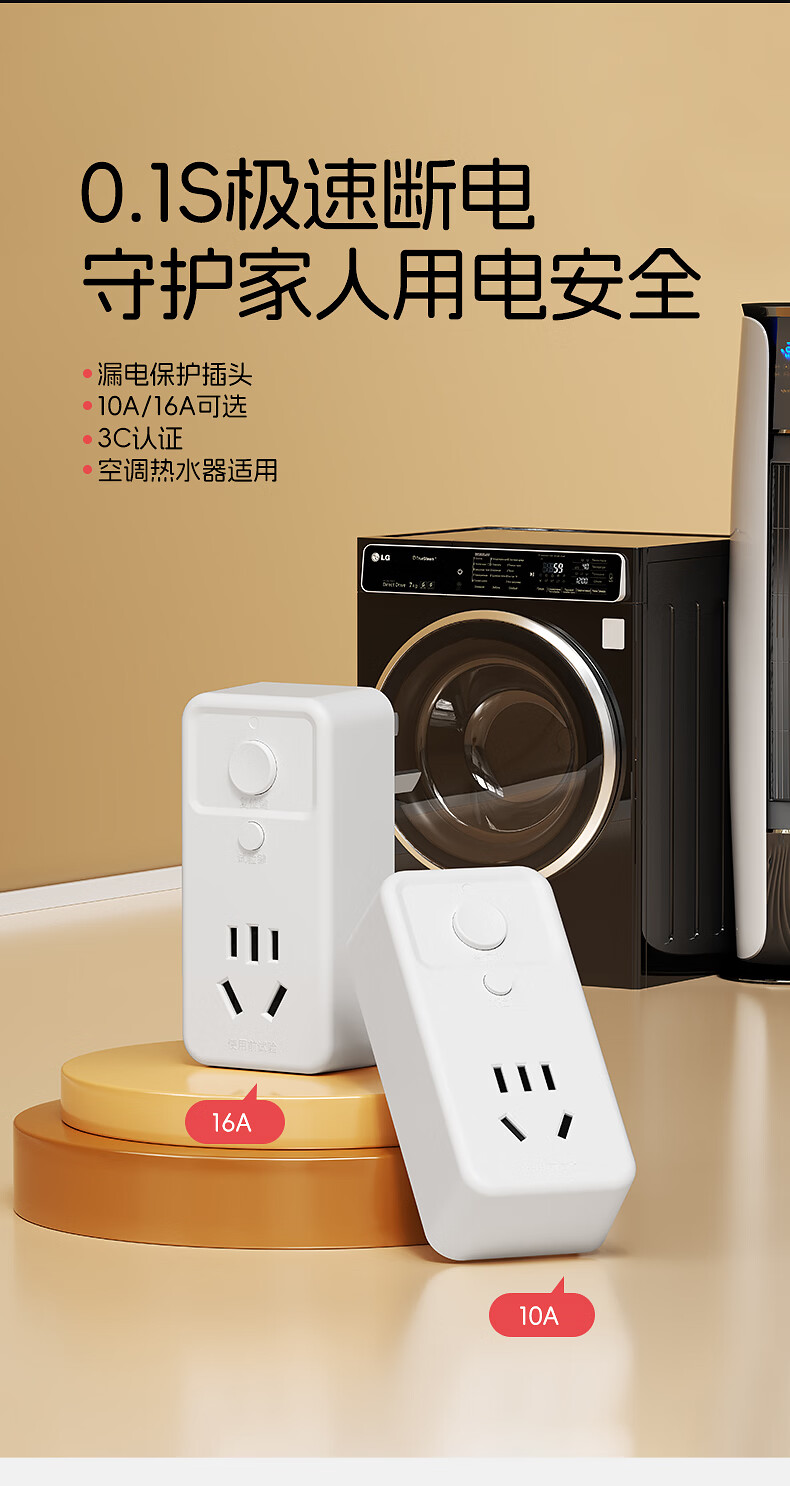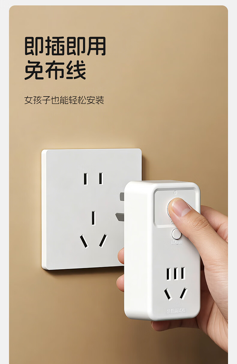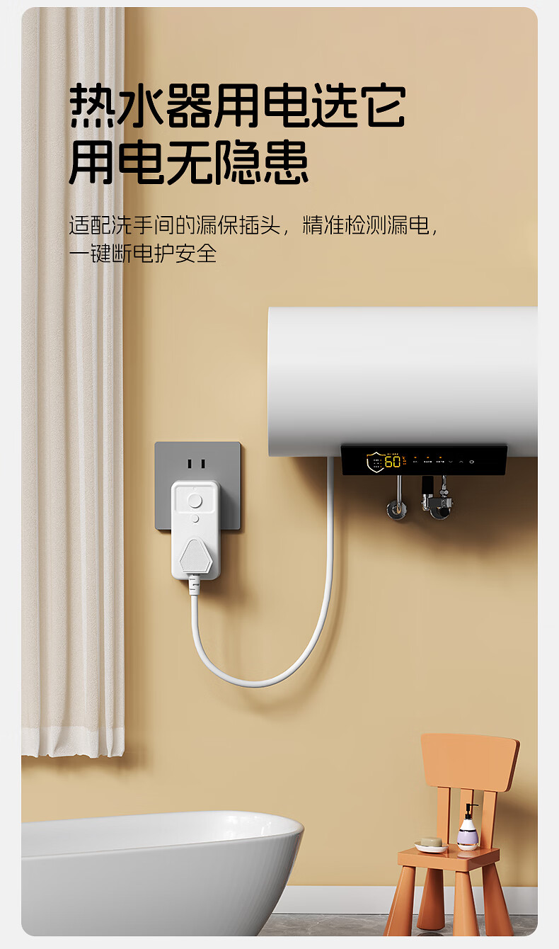 国际电工热水器漏电保护插头插座漏保电热水器专用防漏电保护器开关带16a 10A漏电保护插头【直插款】