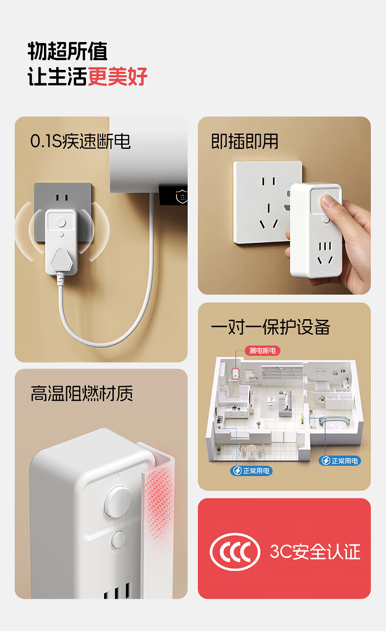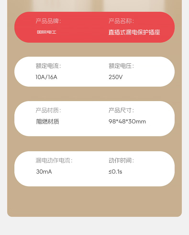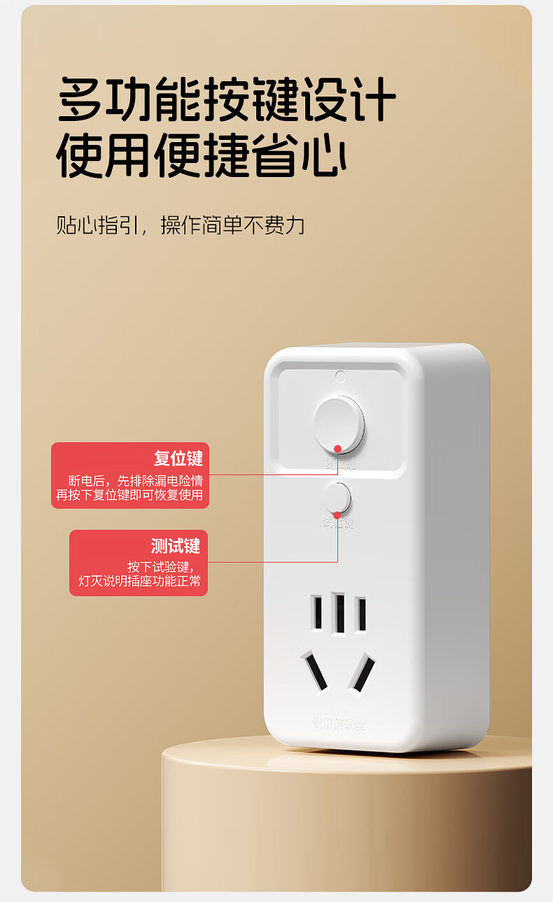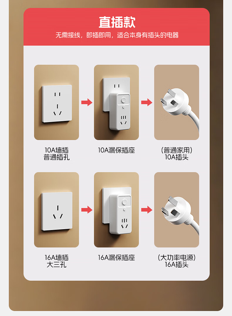 国际电工热水器漏电保护插头插座漏保电热水器专用防漏电保护器开关带16a 10A漏电保护插头【直插款】