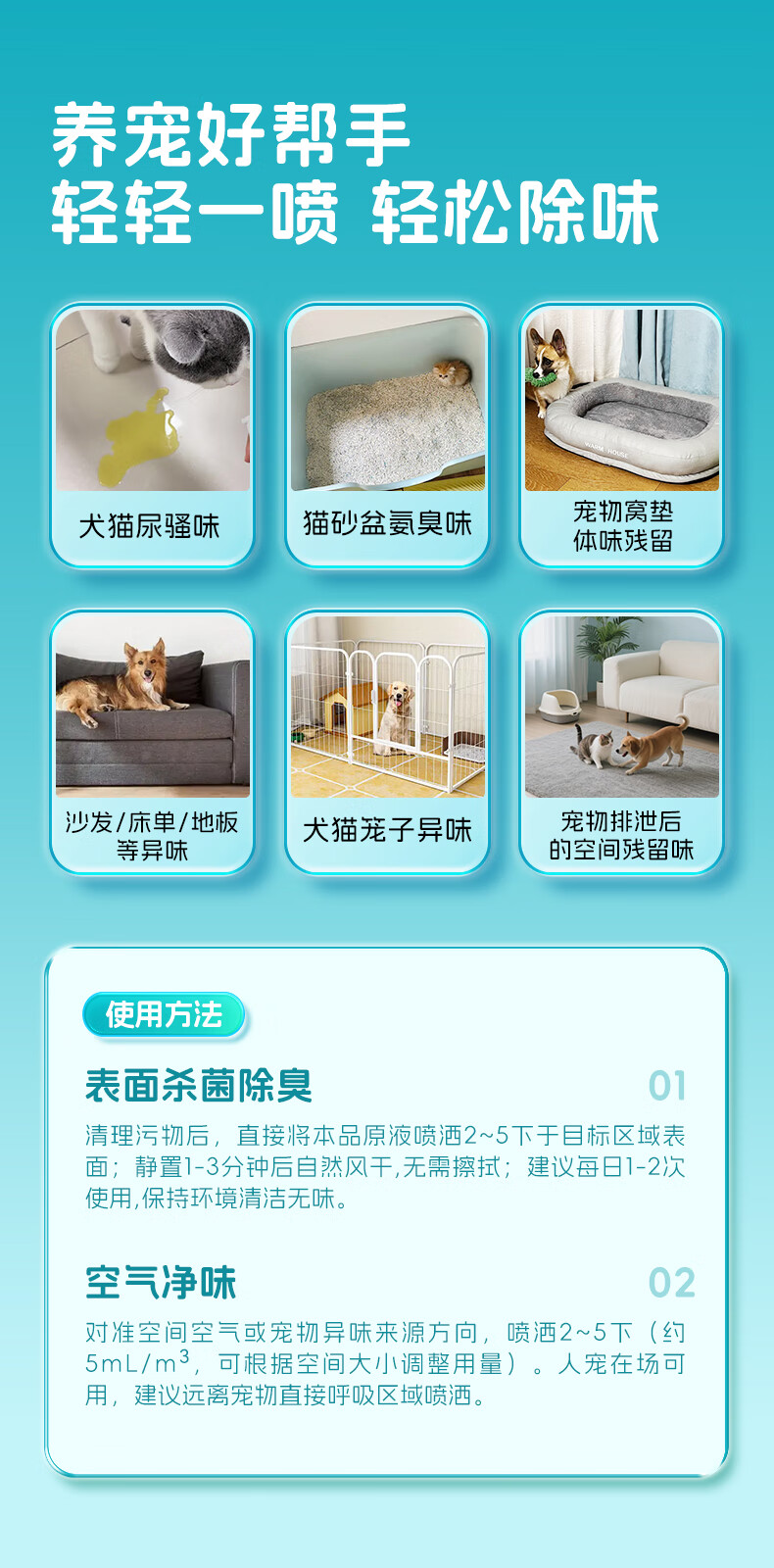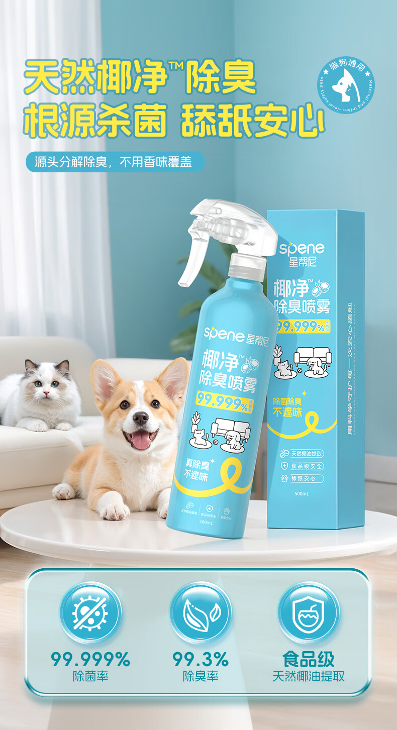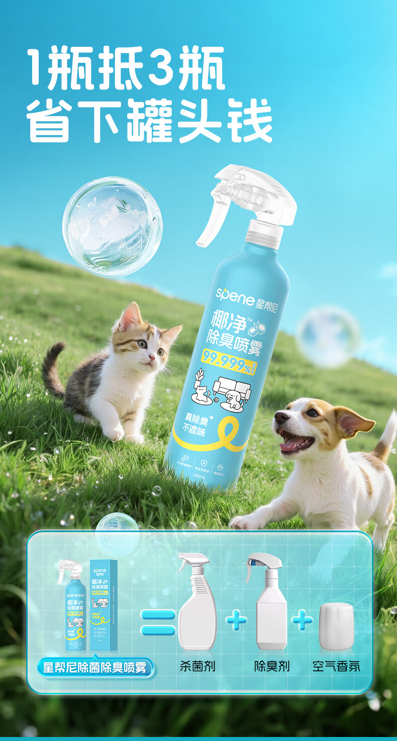 星帮尼(Spene)宠物除臭剂星邦尼猫咪狗专用消毒液室内猫砂狗尿专用杀菌除味喷雾