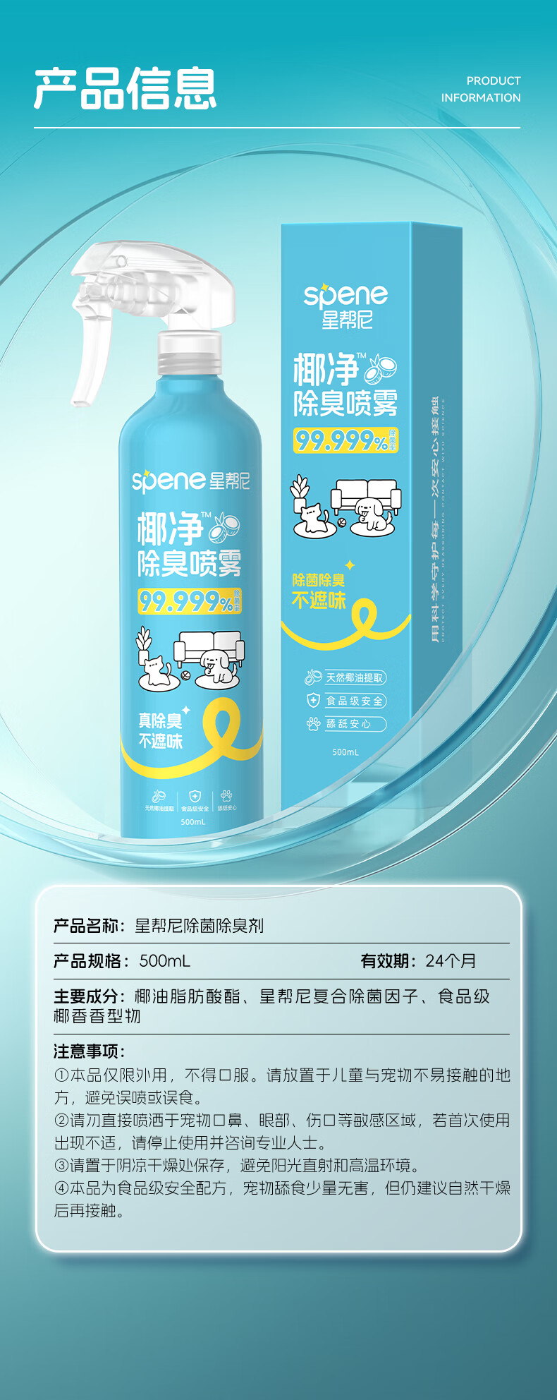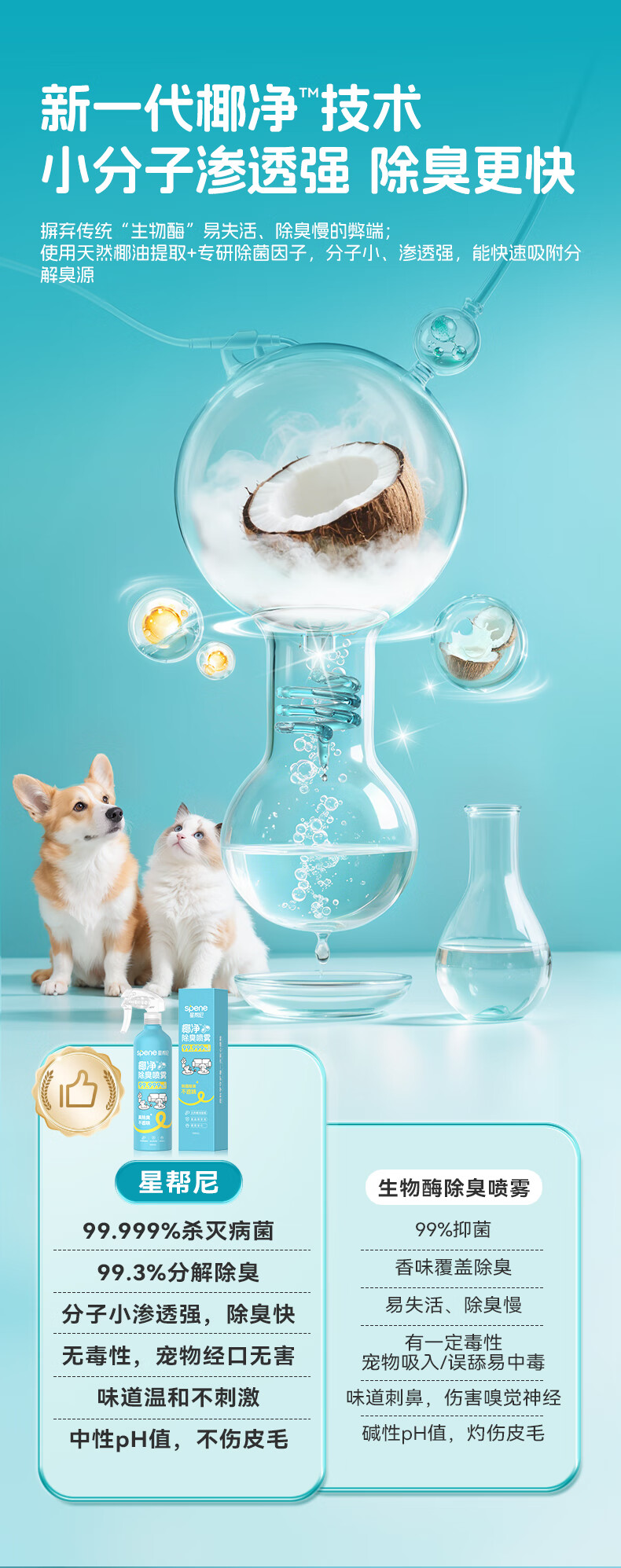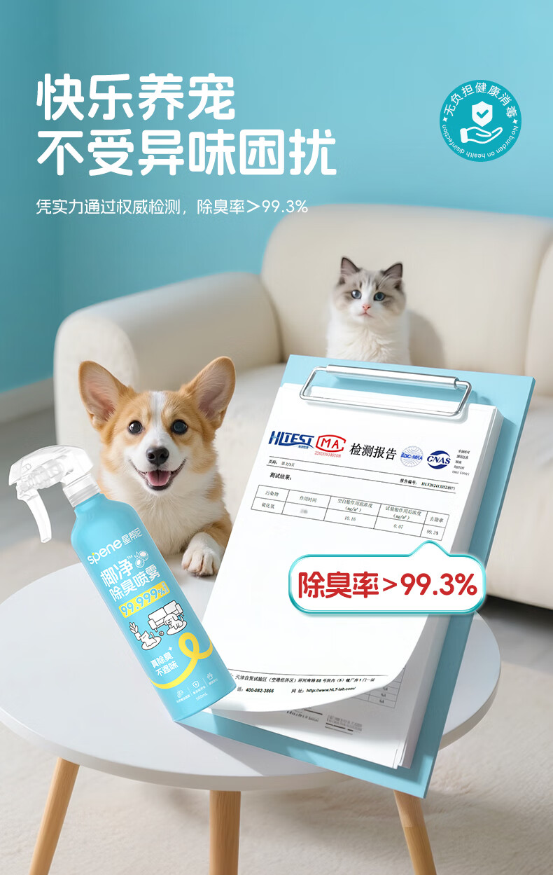 星帮尼(Spene)宠物除臭剂星邦尼猫咪狗专用消毒液室内猫砂狗尿专用杀菌除味喷雾