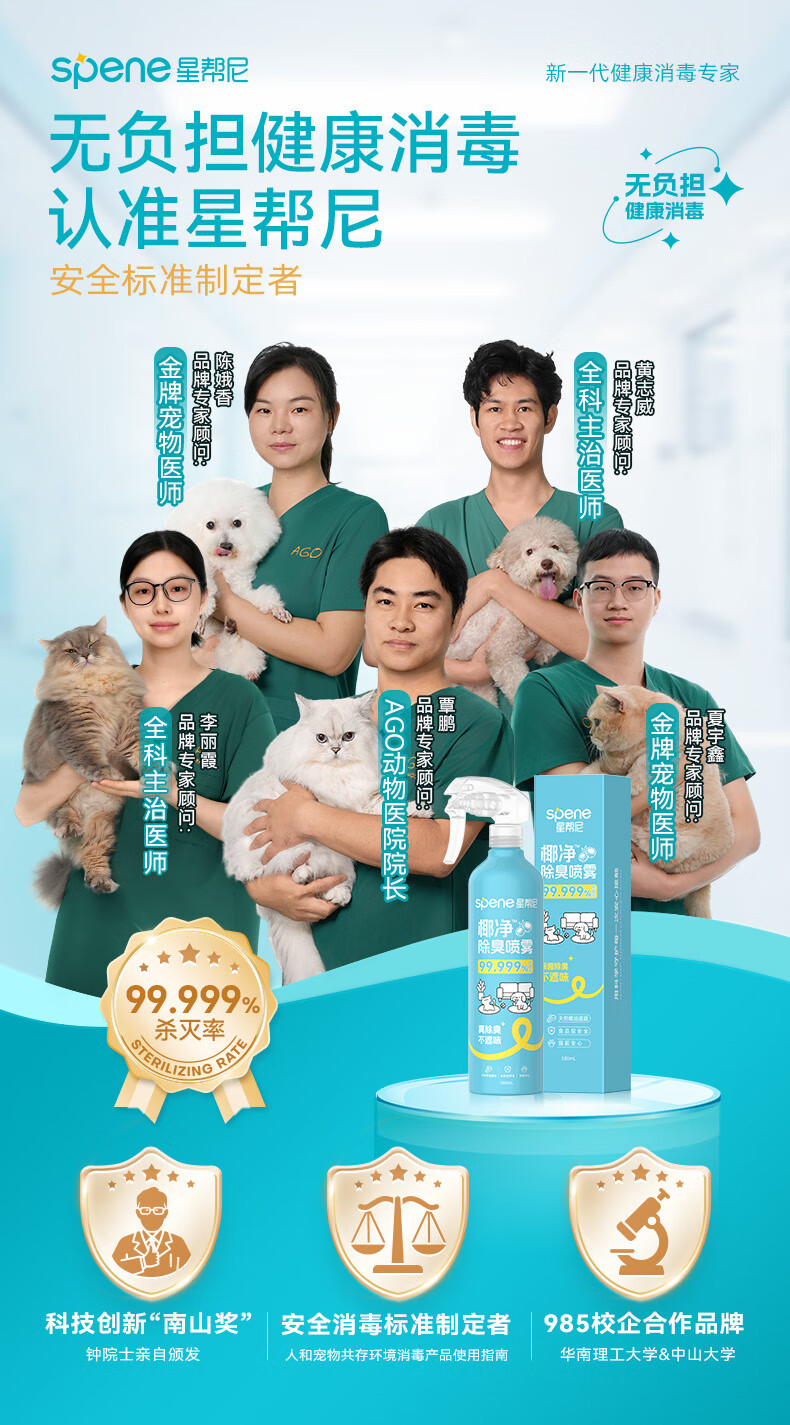 星帮尼(Spene)次氯酸宠物消毒液水猫咪专用星邦尼家用环境狗狗猫癣猫藓杀菌喷雾