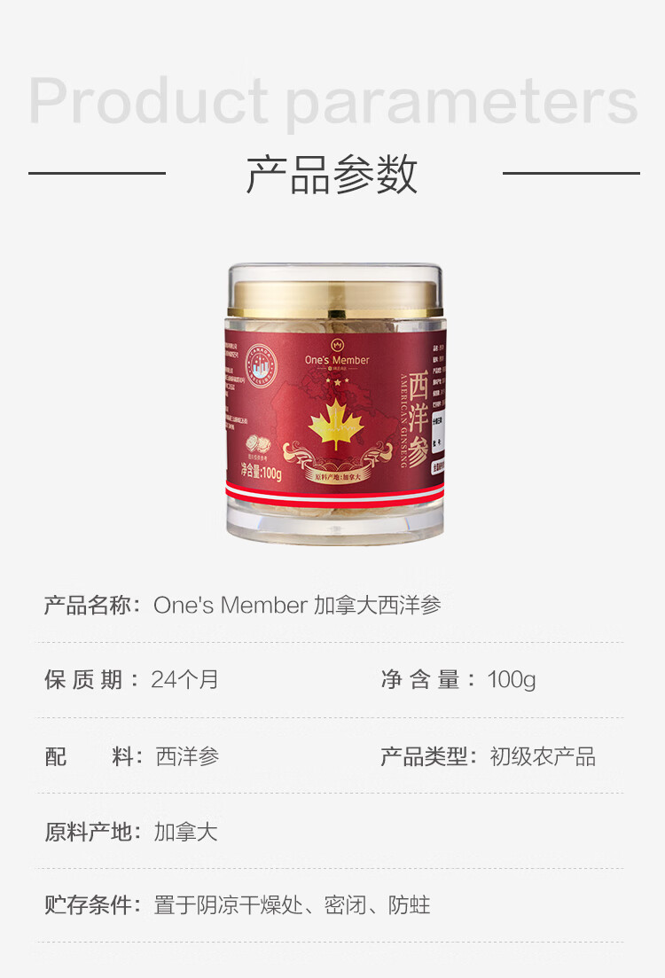 1号会员店加拿大西洋参100g1.4-1.6cm进口花旗参含片送礼送父母爸妈