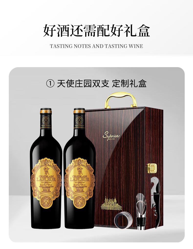 拉斐法国原瓶进口红酒拉斐天使庄园干红葡萄酒750ml*2送礼礼品 双支礼盒装