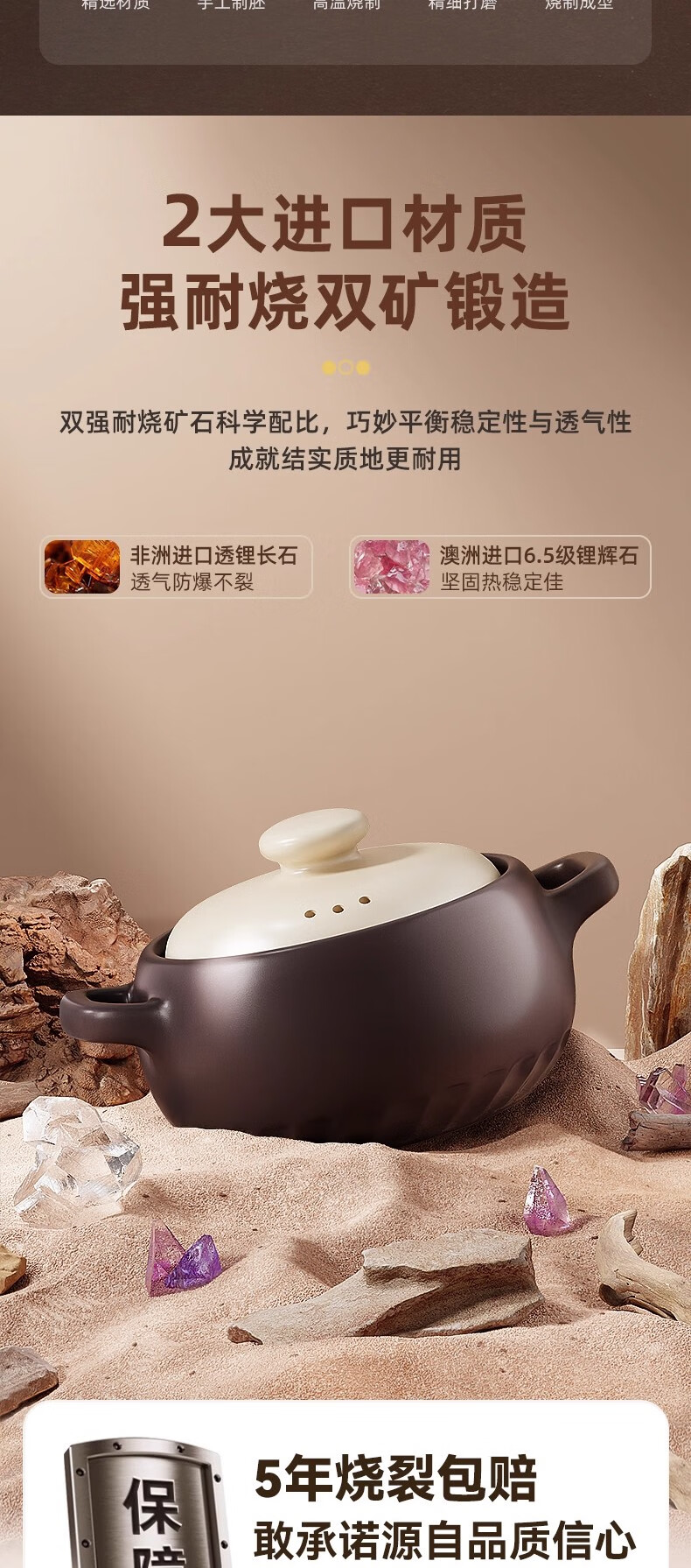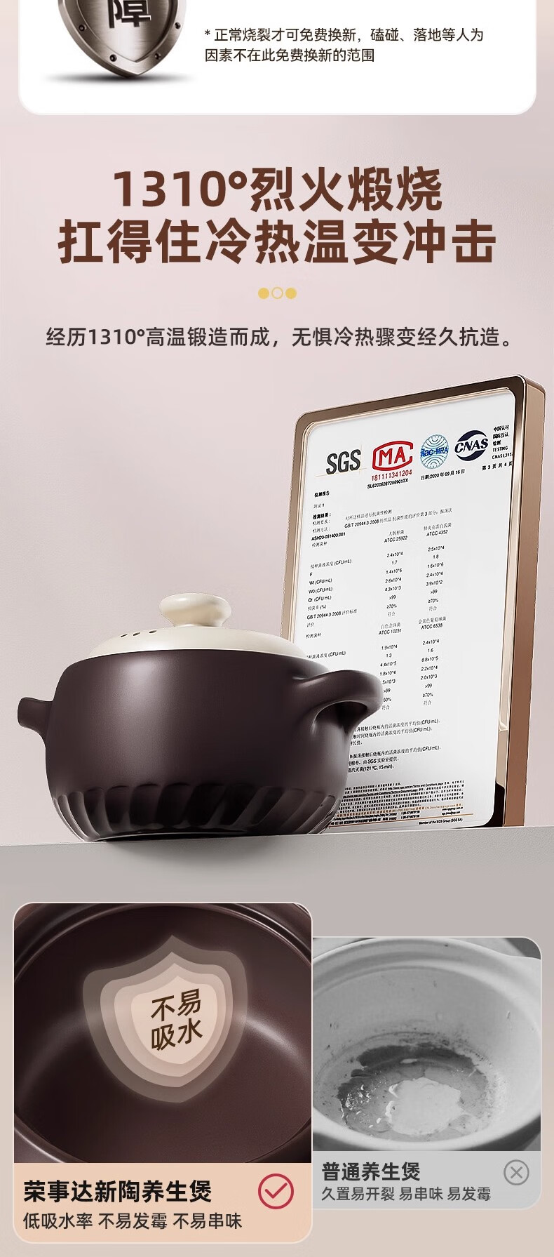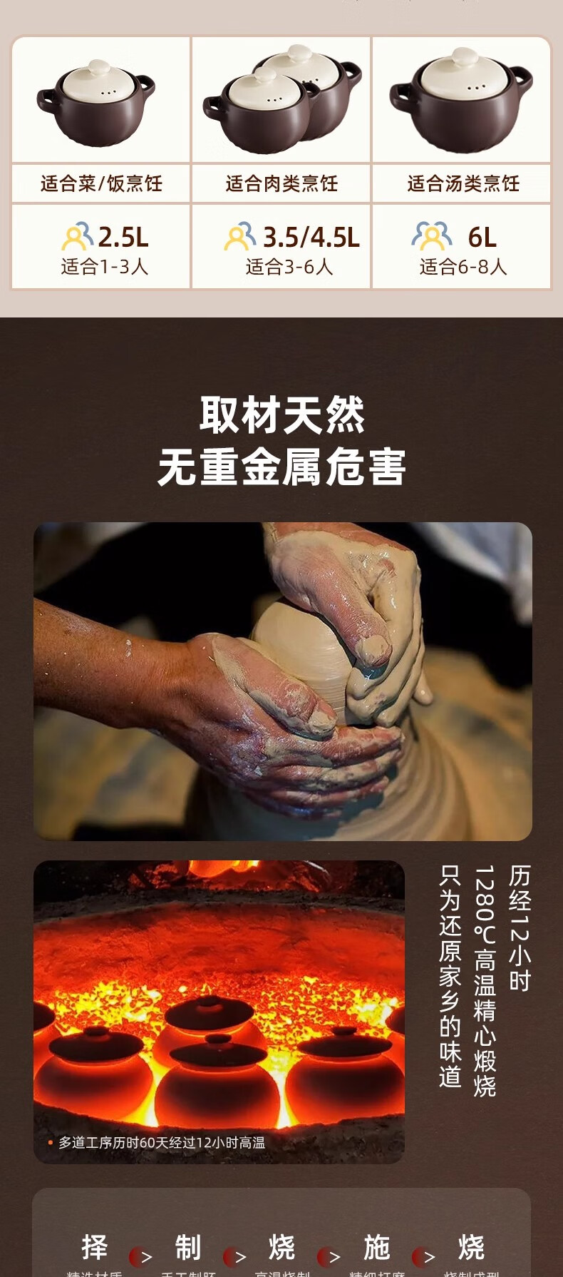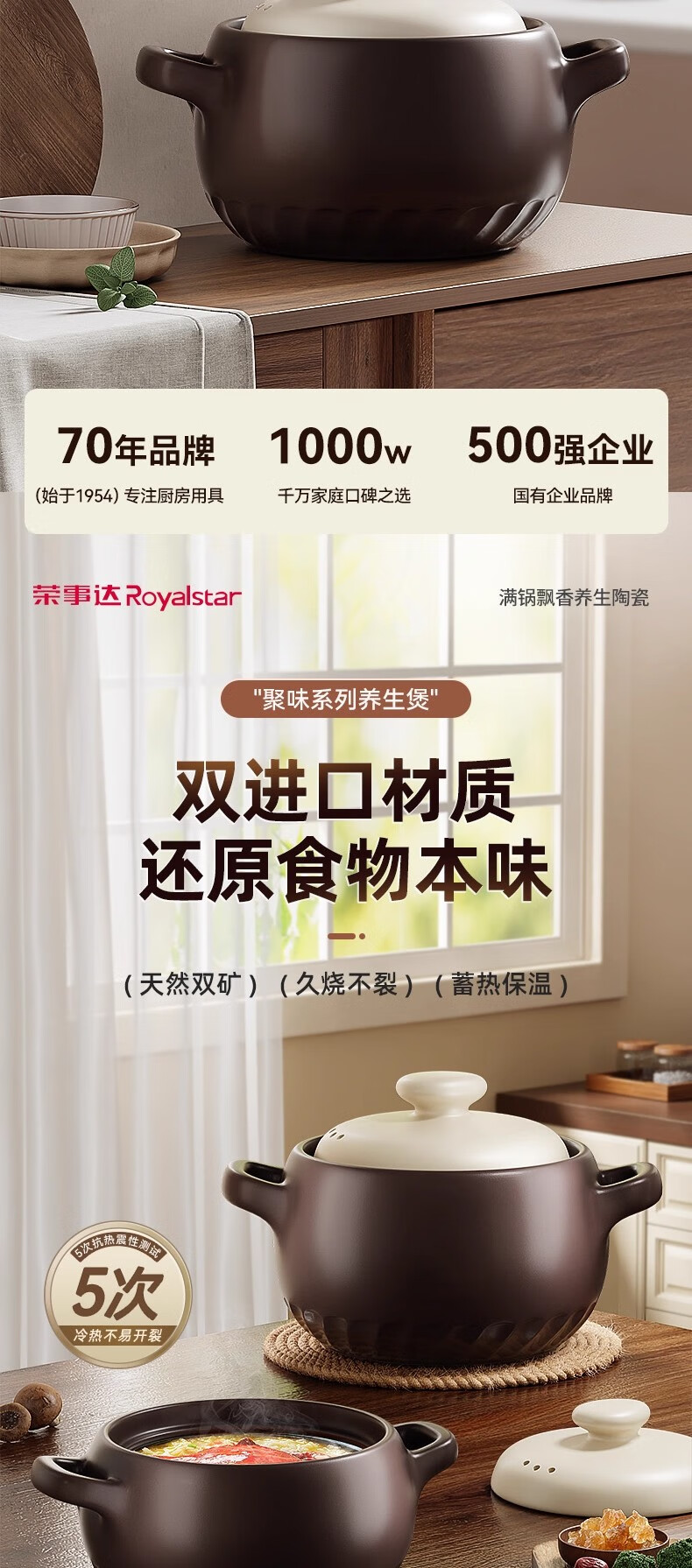 荣事达砂锅家用燃气炖锅陶瓷煲仔饭炖汤锅耐高温干烧不裂沙锅汤锅 【特厚】6.0L-深汤煲【6-8人适用】 6.0L