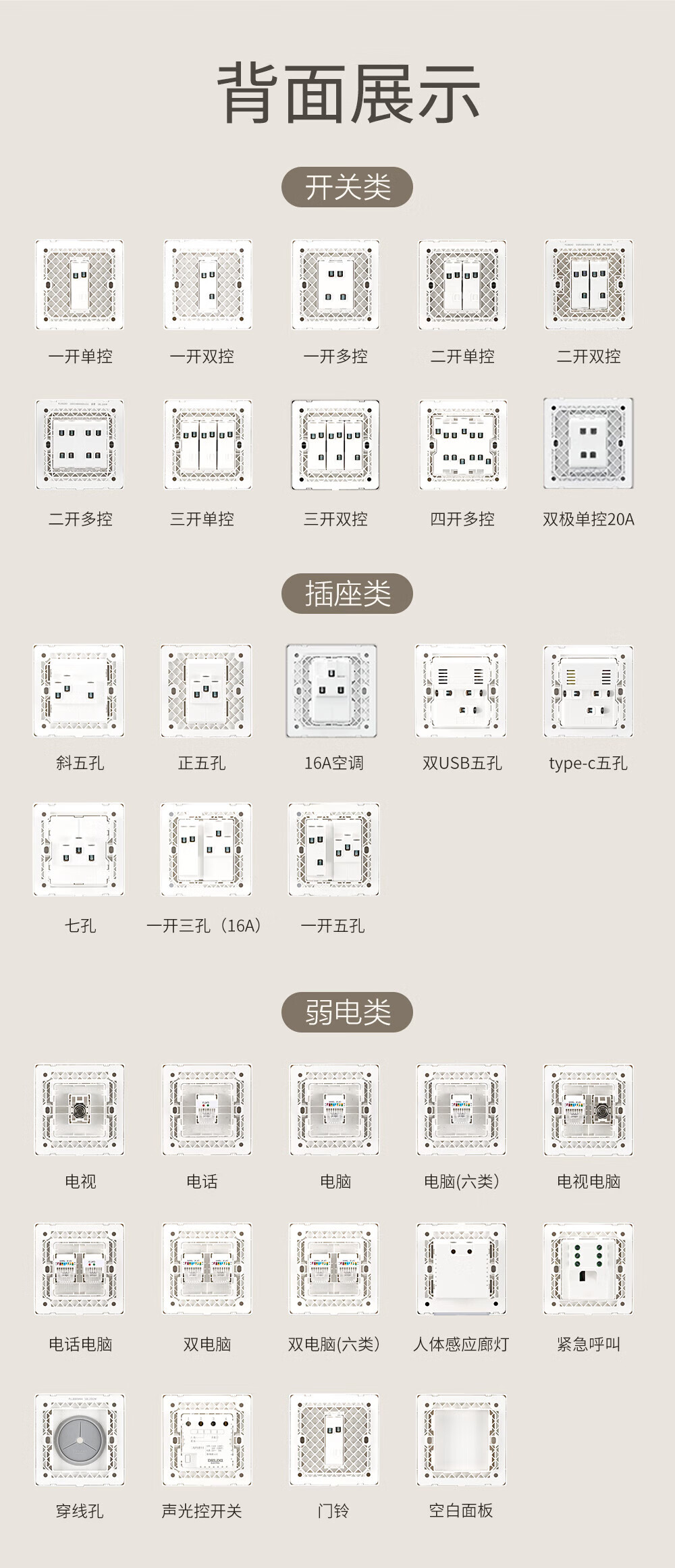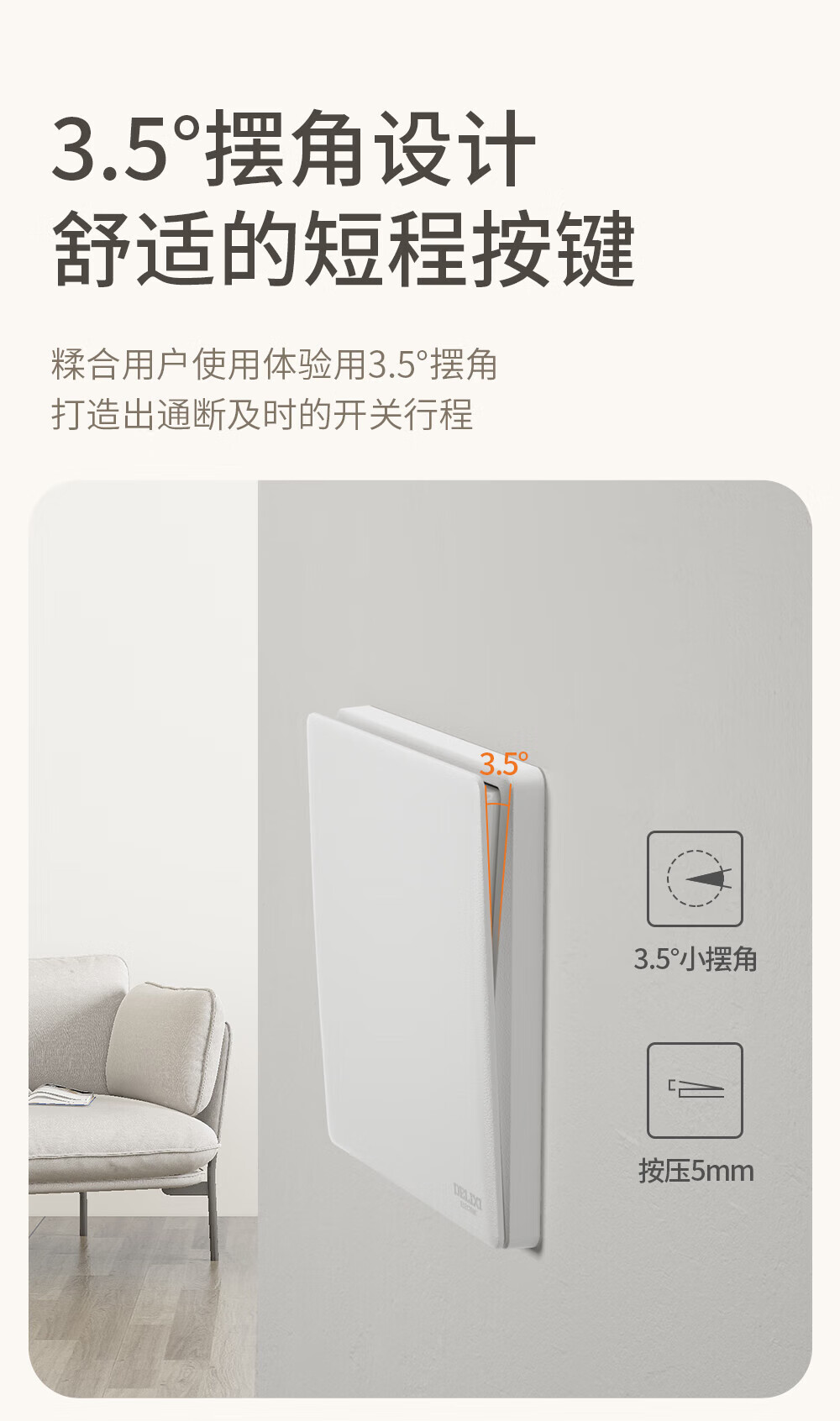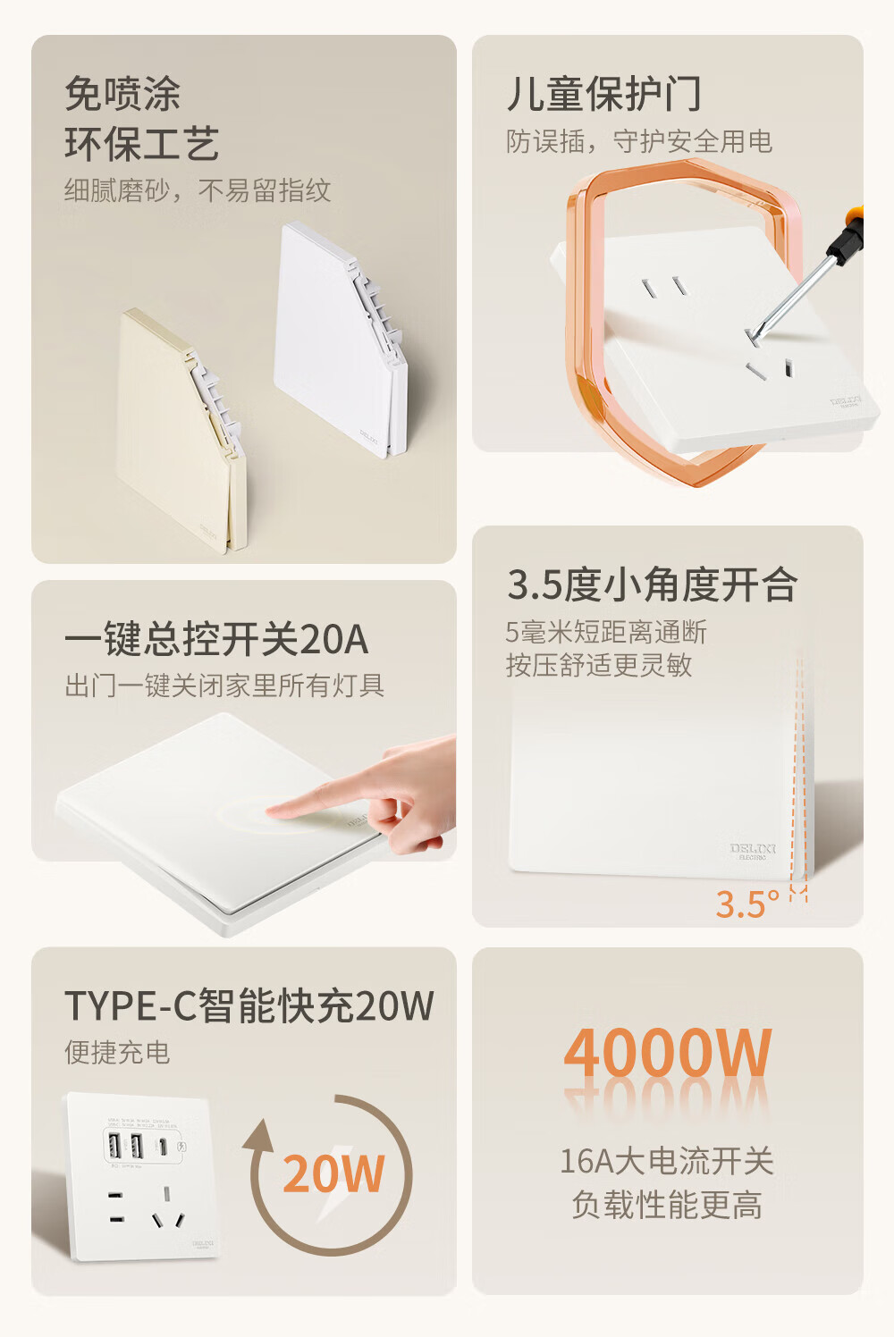 ABB开关插座面板 德典系列皓月灰 磨砂哑光奶油风 无边框 86型电源 斜五孔插座