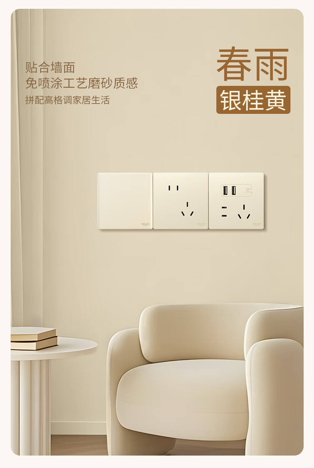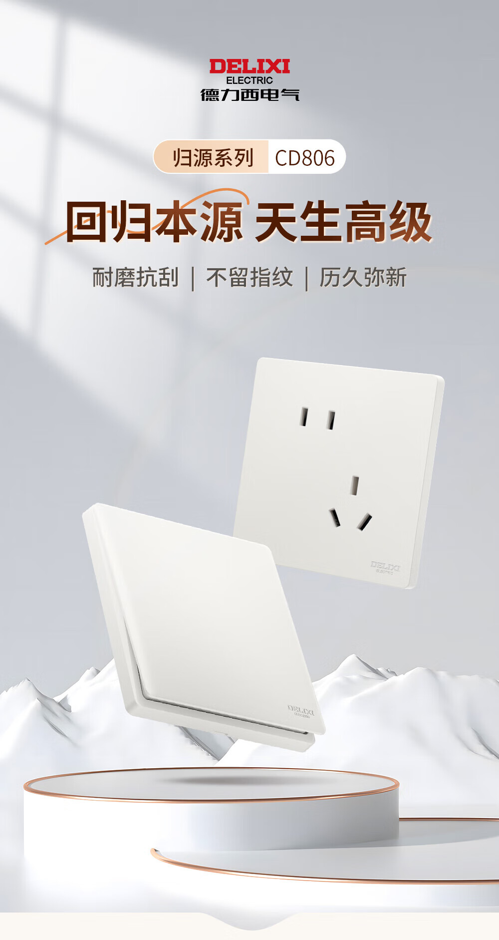 德力西(DELIXI)开关插座CD806归原系列免喷涂哑光磨砂大板面板家用空调插座暗装 一开双控五孔