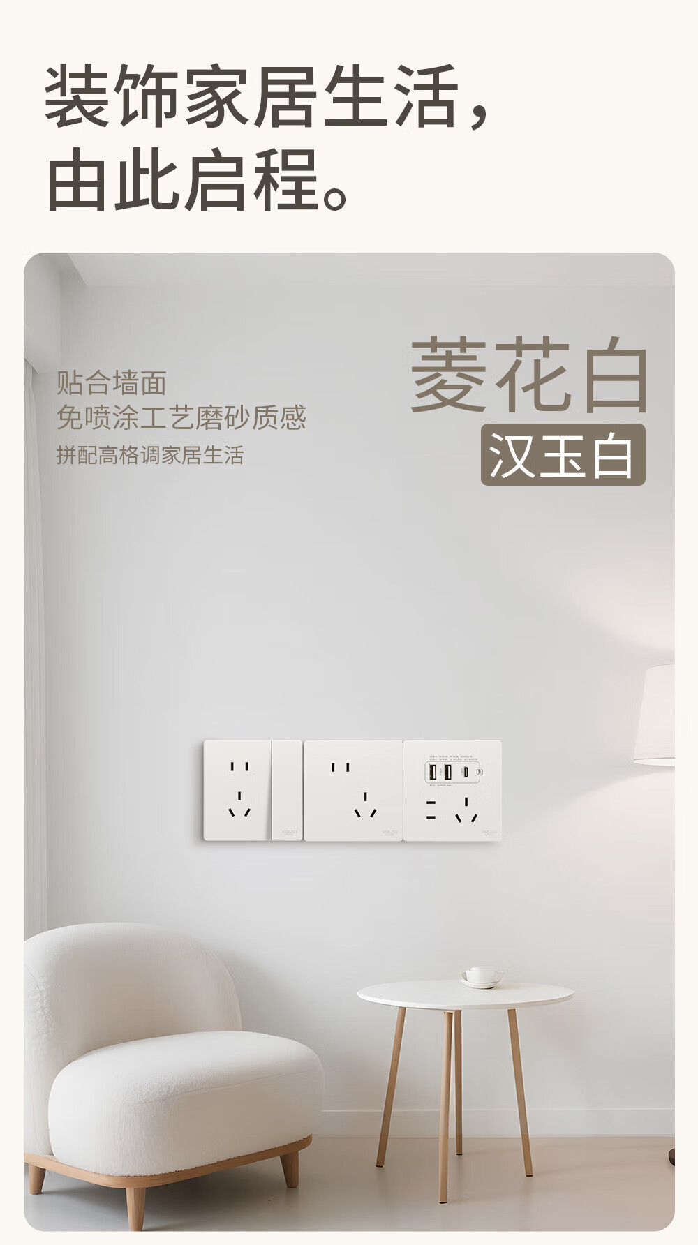 ABB开关插座面板 德典系列皓月灰 磨砂哑光奶油风 无边框 86型电源 正五孔插座