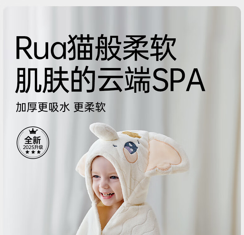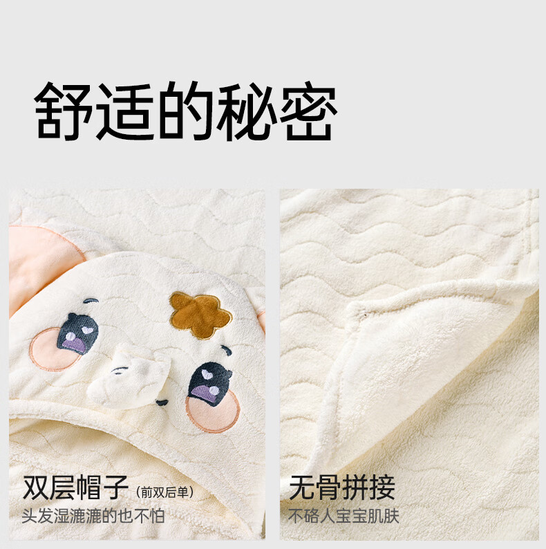 欧孕(OUYUN)儿童浴巾斗篷浴袍可穿式布兰龙婴儿新生宝宝带帽洗澡男女童冬 布兰龙-【7A抗菌 防静电】 135x65cm