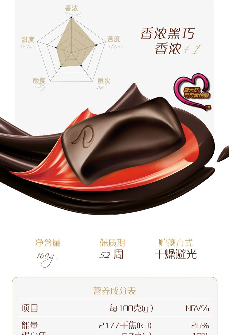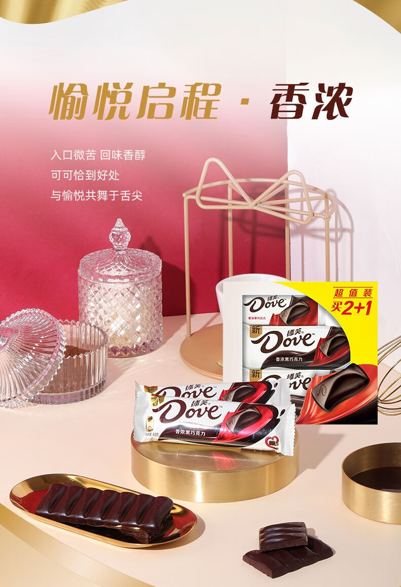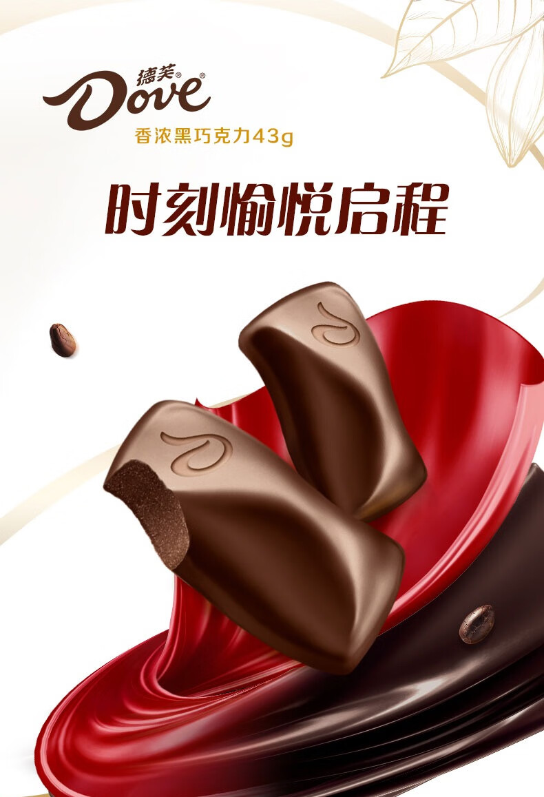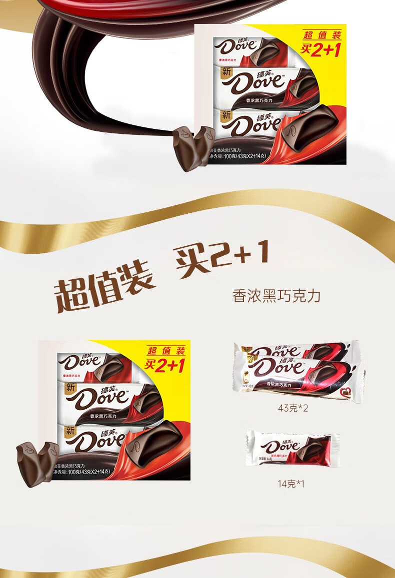 德芙(Dove)黑巧克力43克2条超值装赠14g共100g休闲儿童零食糖果生日礼物