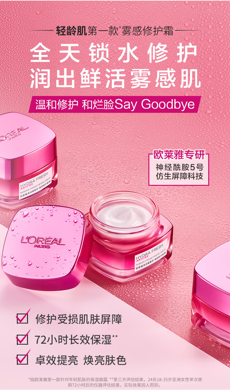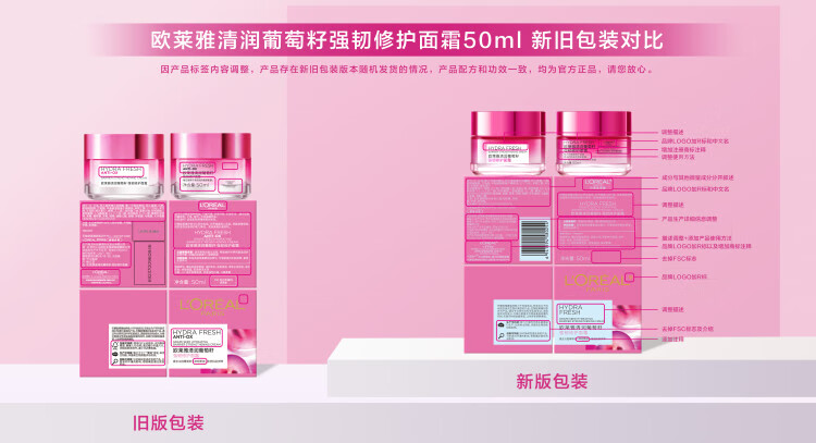 欧莱雅清润葡萄籽水绷带面霜15ml 体验装补水保湿圣诞礼物