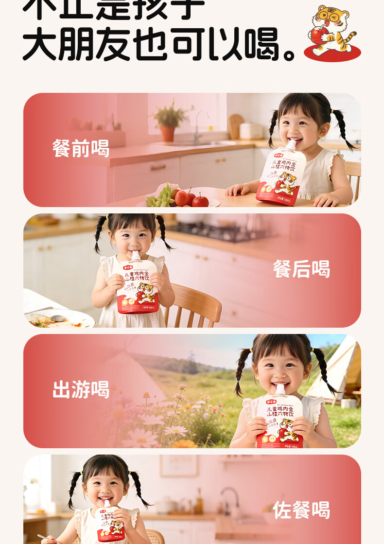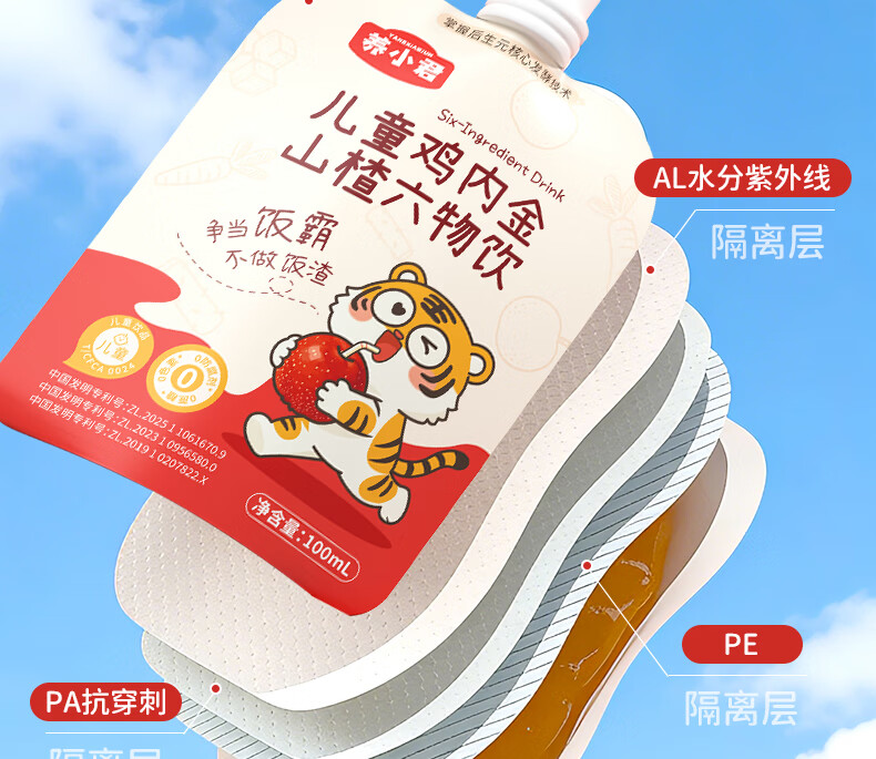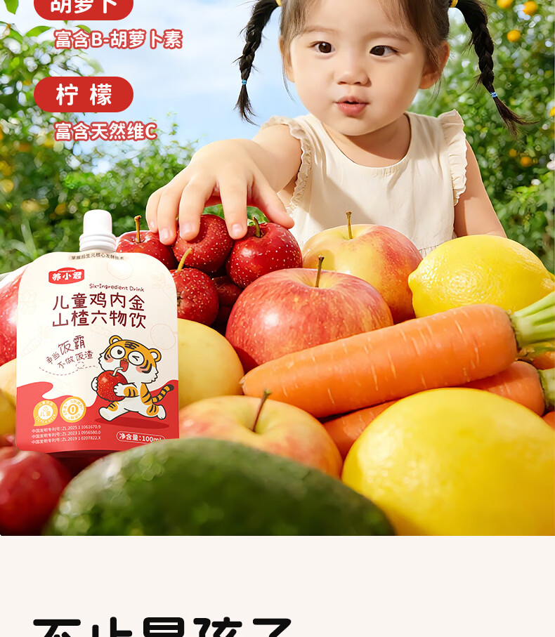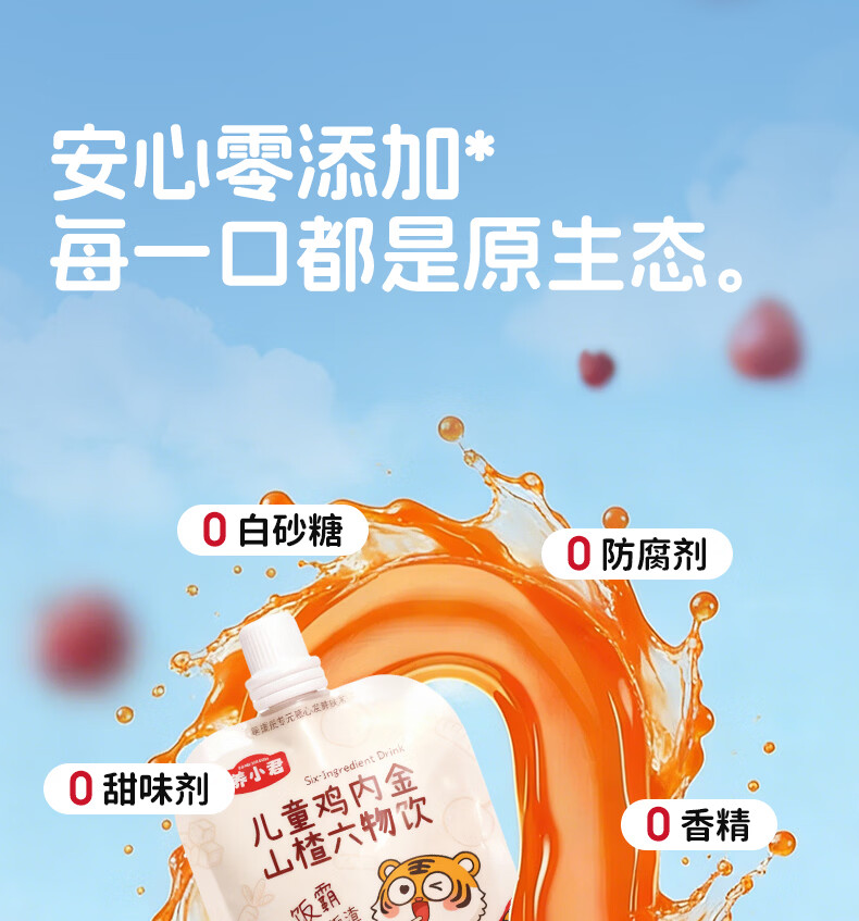 养小君儿童鸡内金山楂汁六物饮100ml*10袋宝宝果汁健康卑胃消食饮料