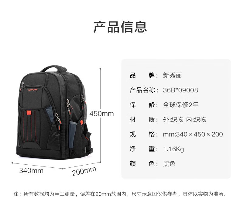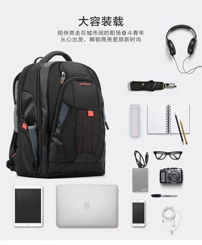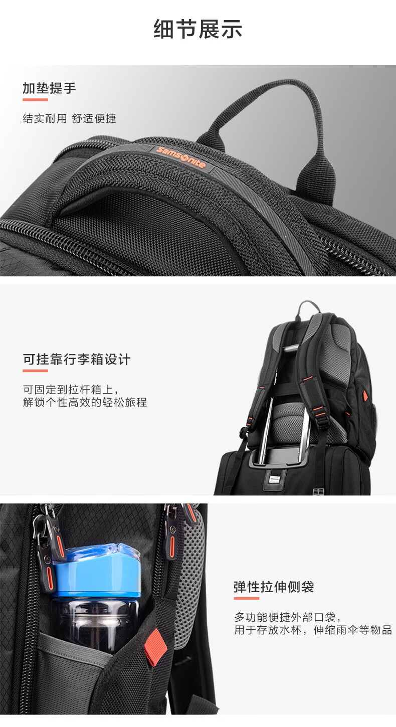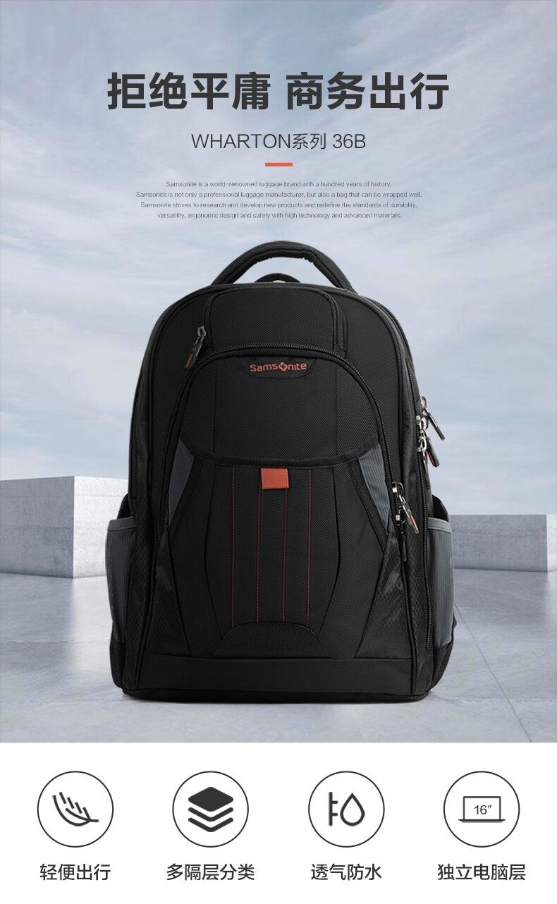 新秀丽(Samsonite)双肩包商务电脑包多功能男士背包差旅大容量运动透气书包\36B 黑色