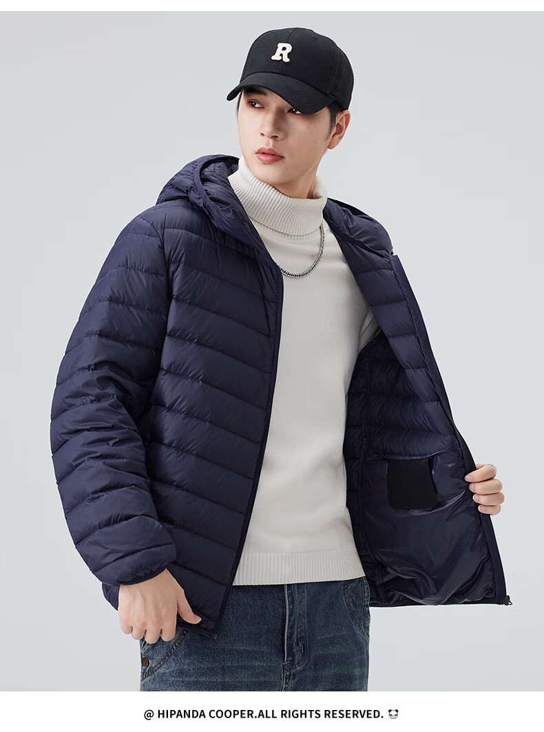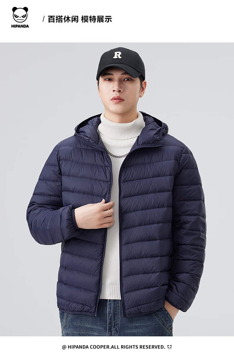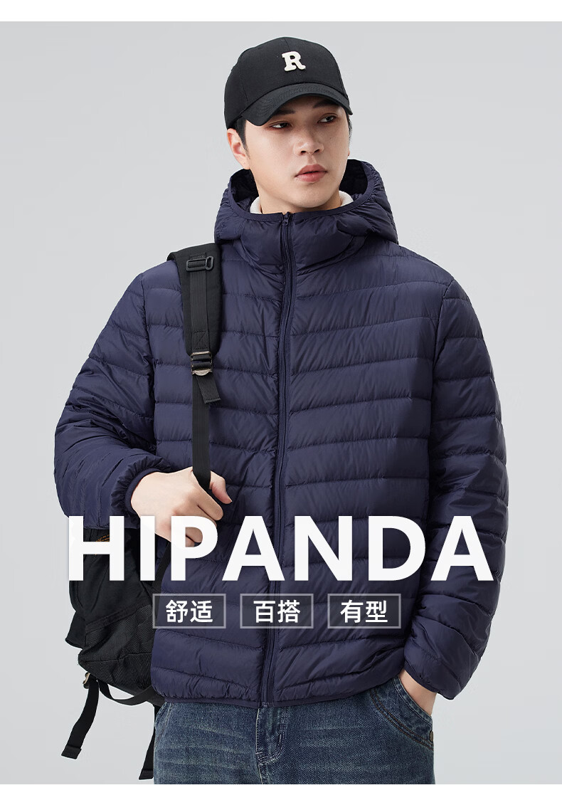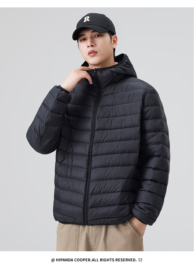 HIPANDA你好熊猫羽绒服男2025新款冬季保暖男士修身短款休闲连帽外套男款 黑色 M
