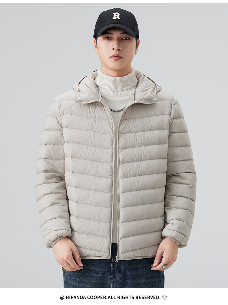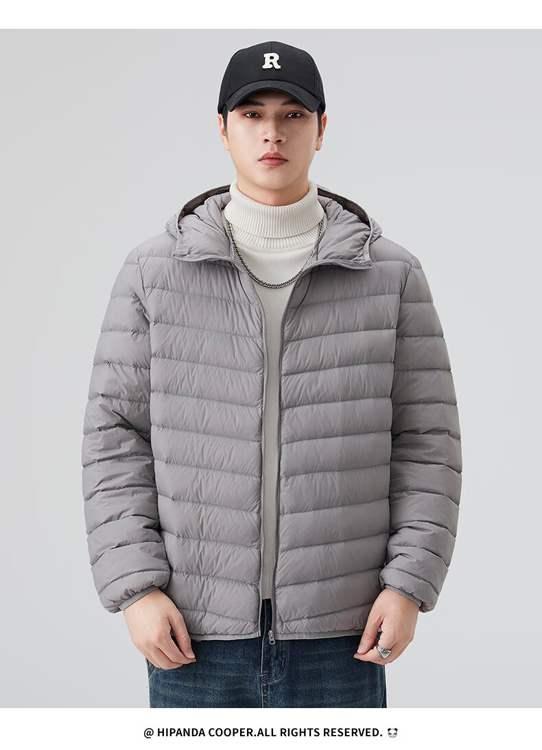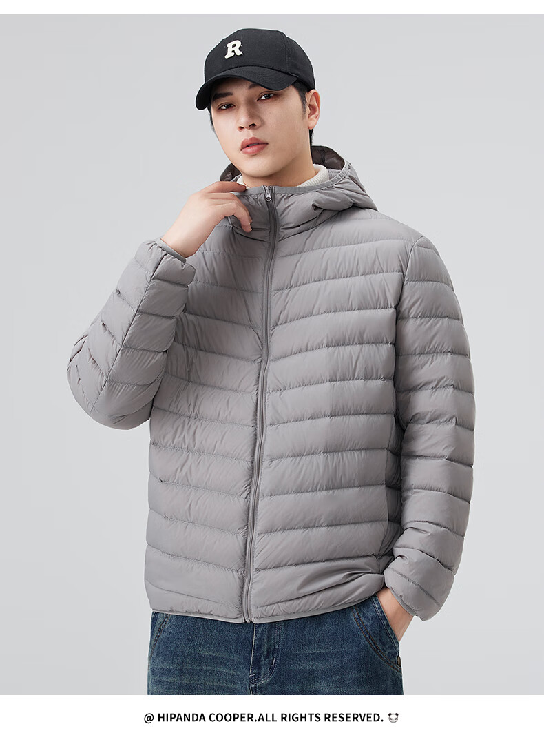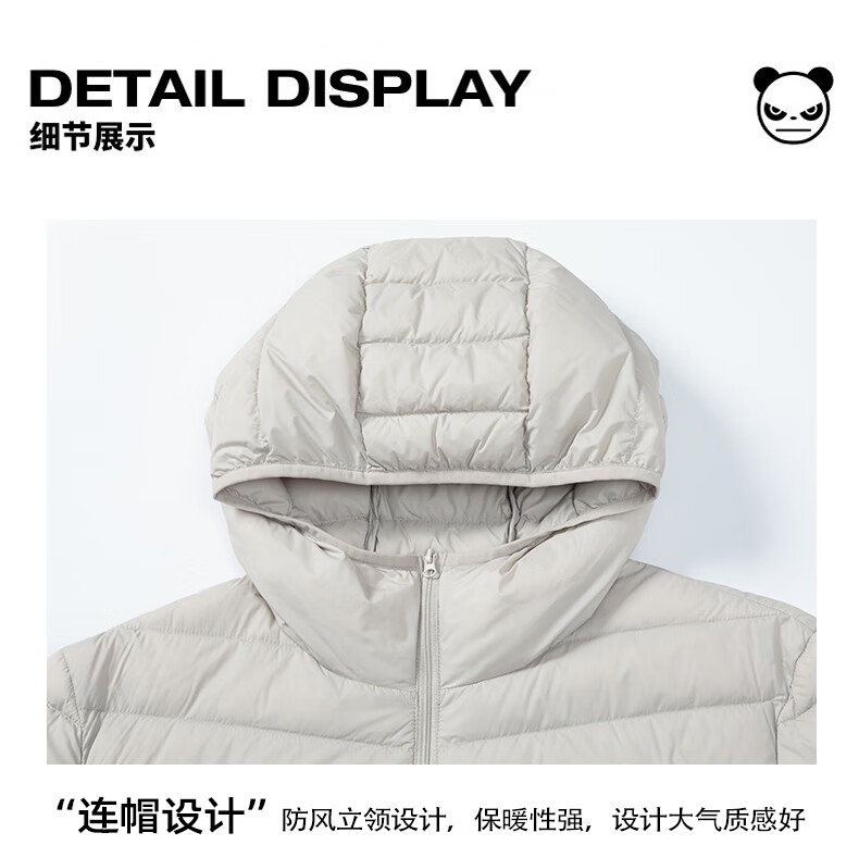 HIPANDA你好熊猫羽绒服男2025新款冬季保暖男士修身短款休闲连帽外套男款 黑色 M