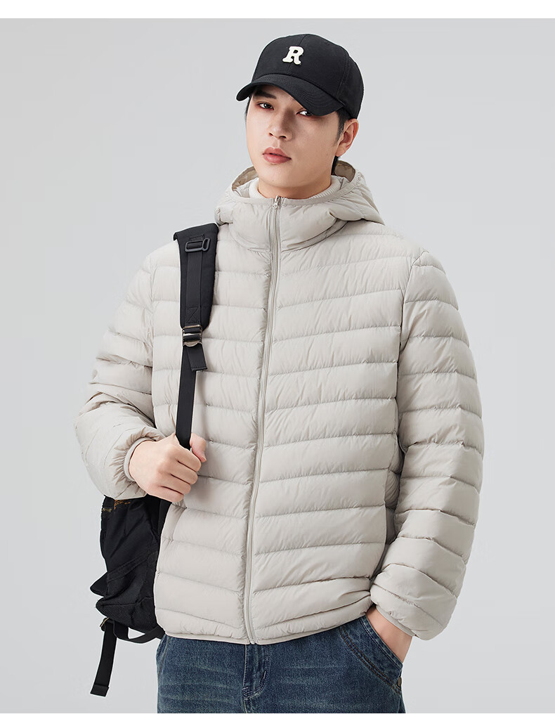 啄木鸟(TUCANO)羽绒服男款外套冬季加厚保暖防寒休闲连帽面包服上衣 灰白 XL