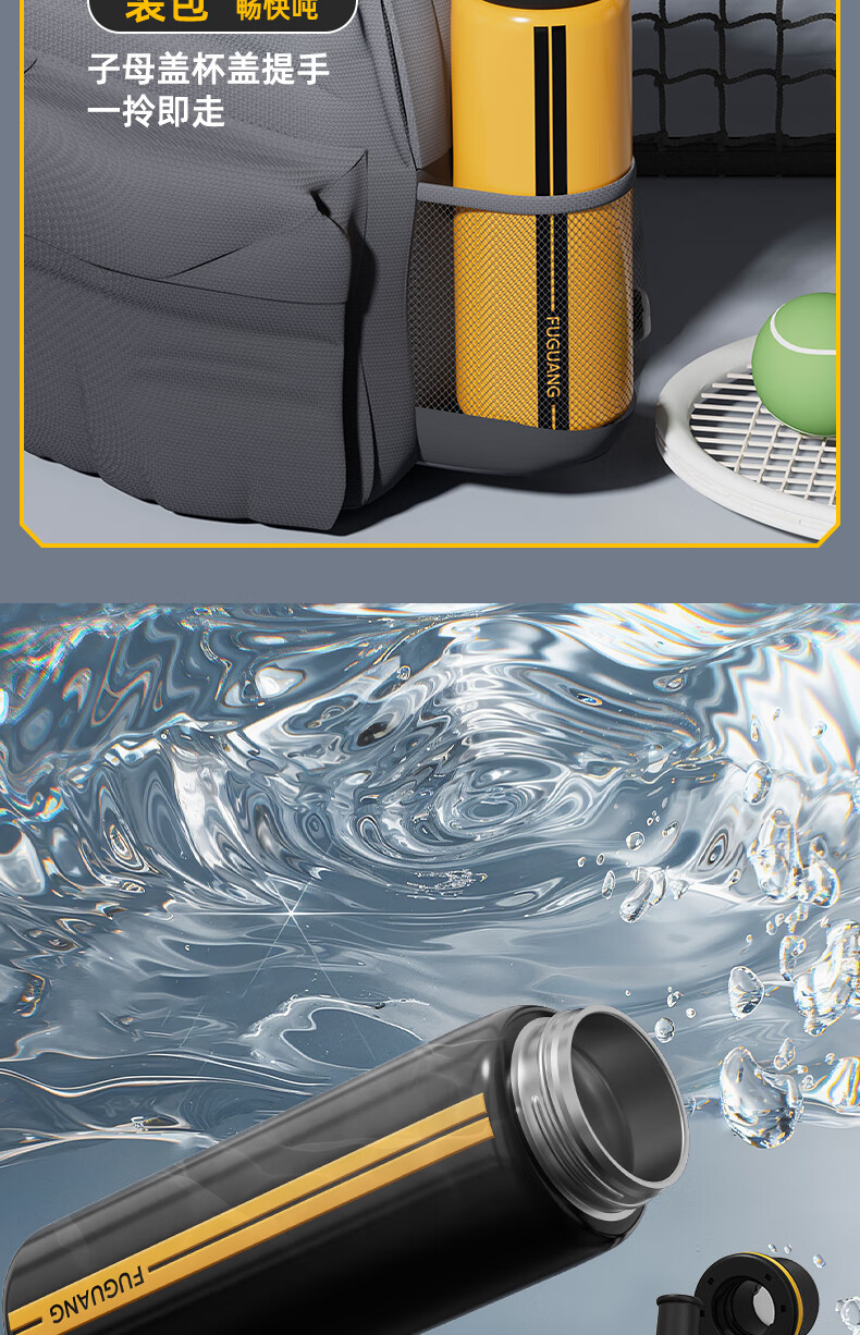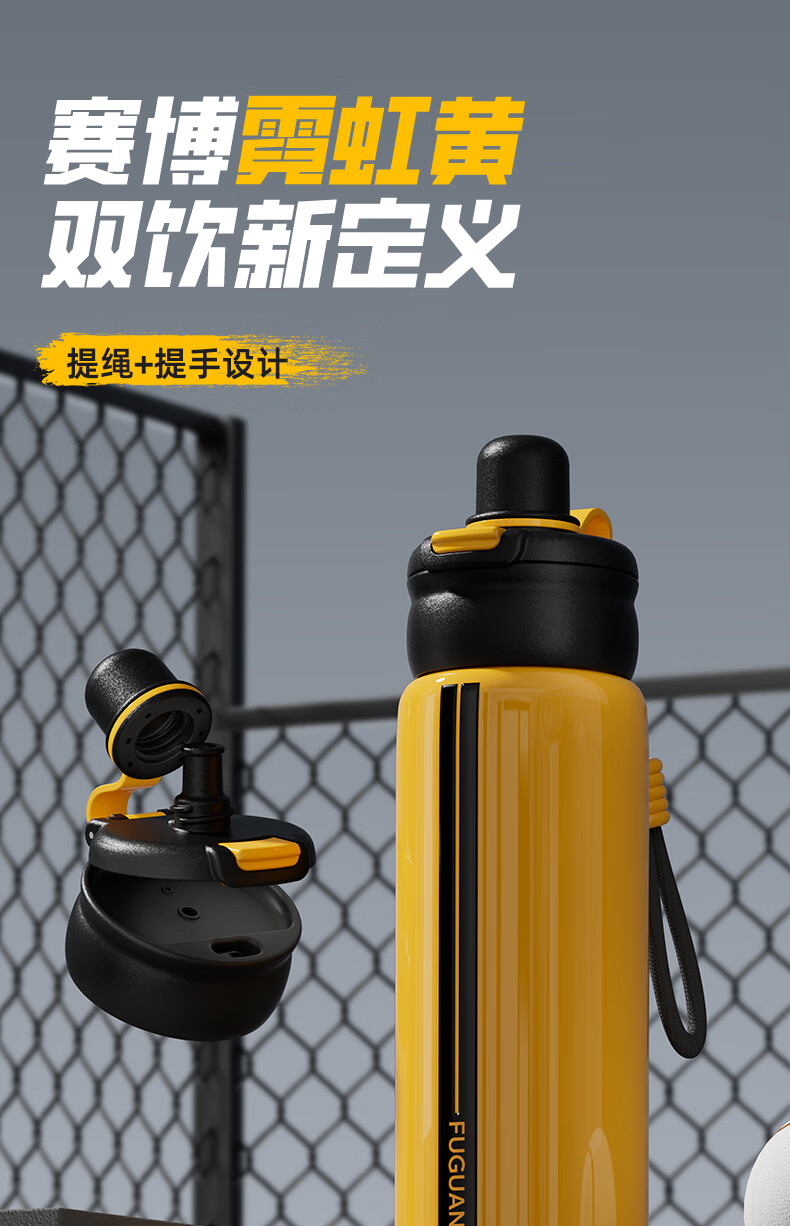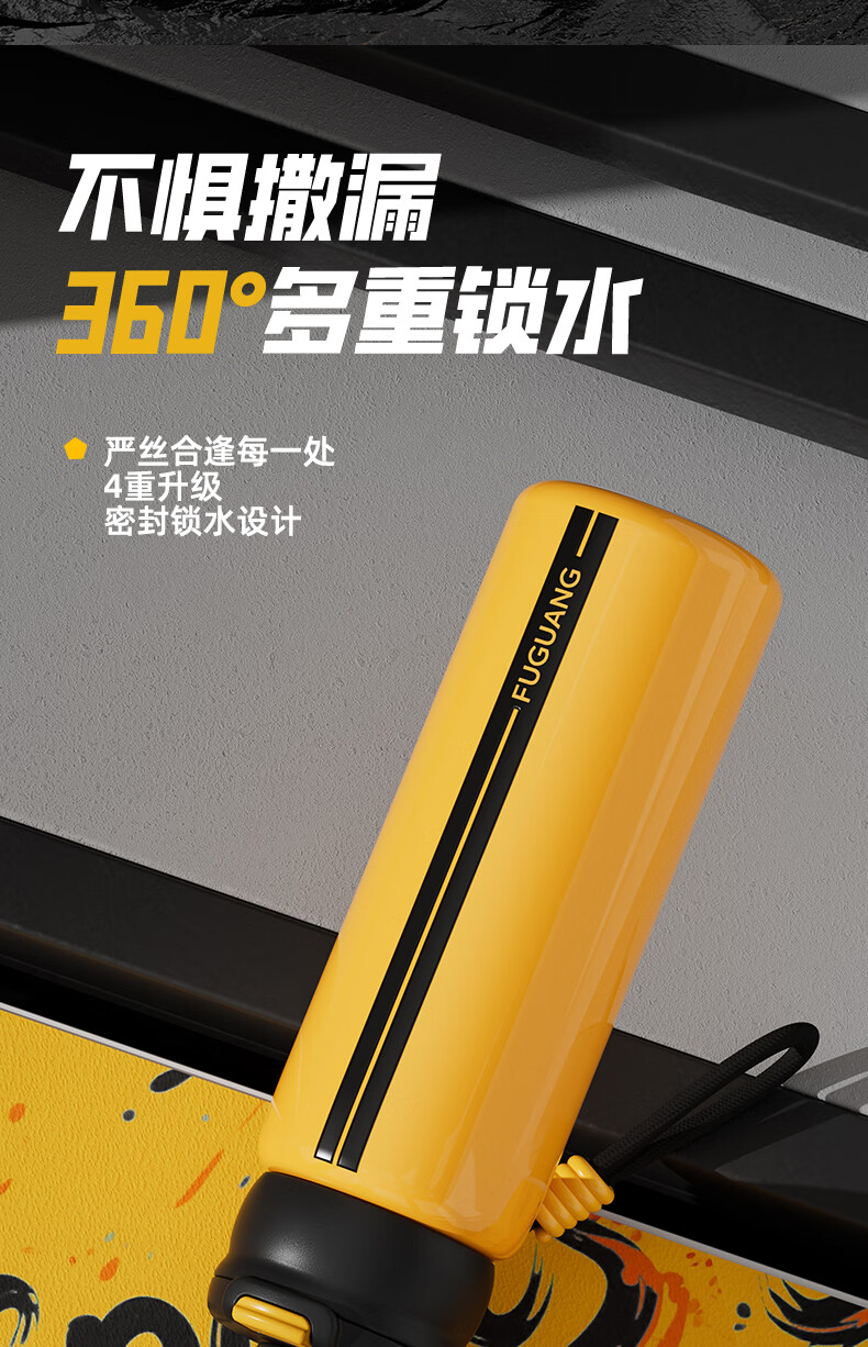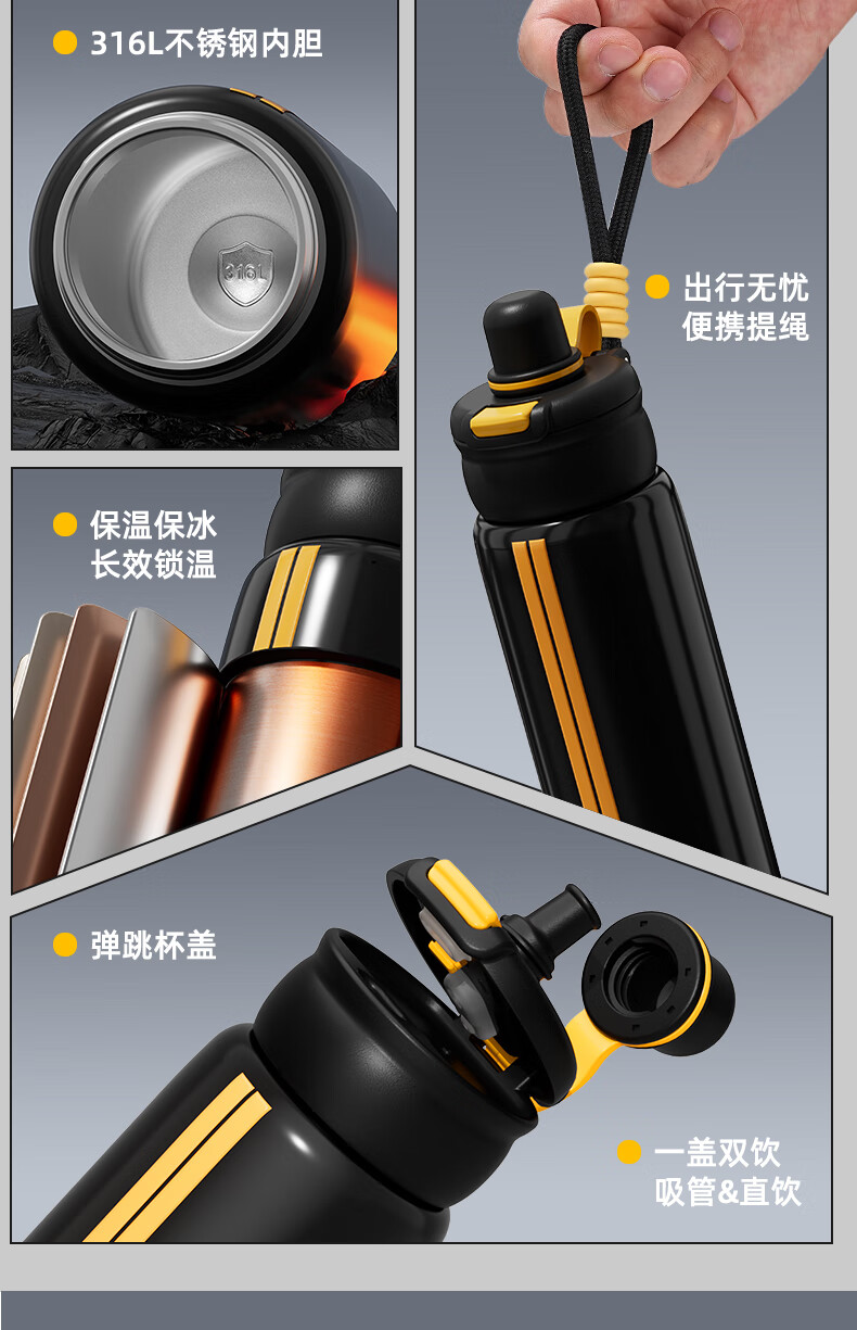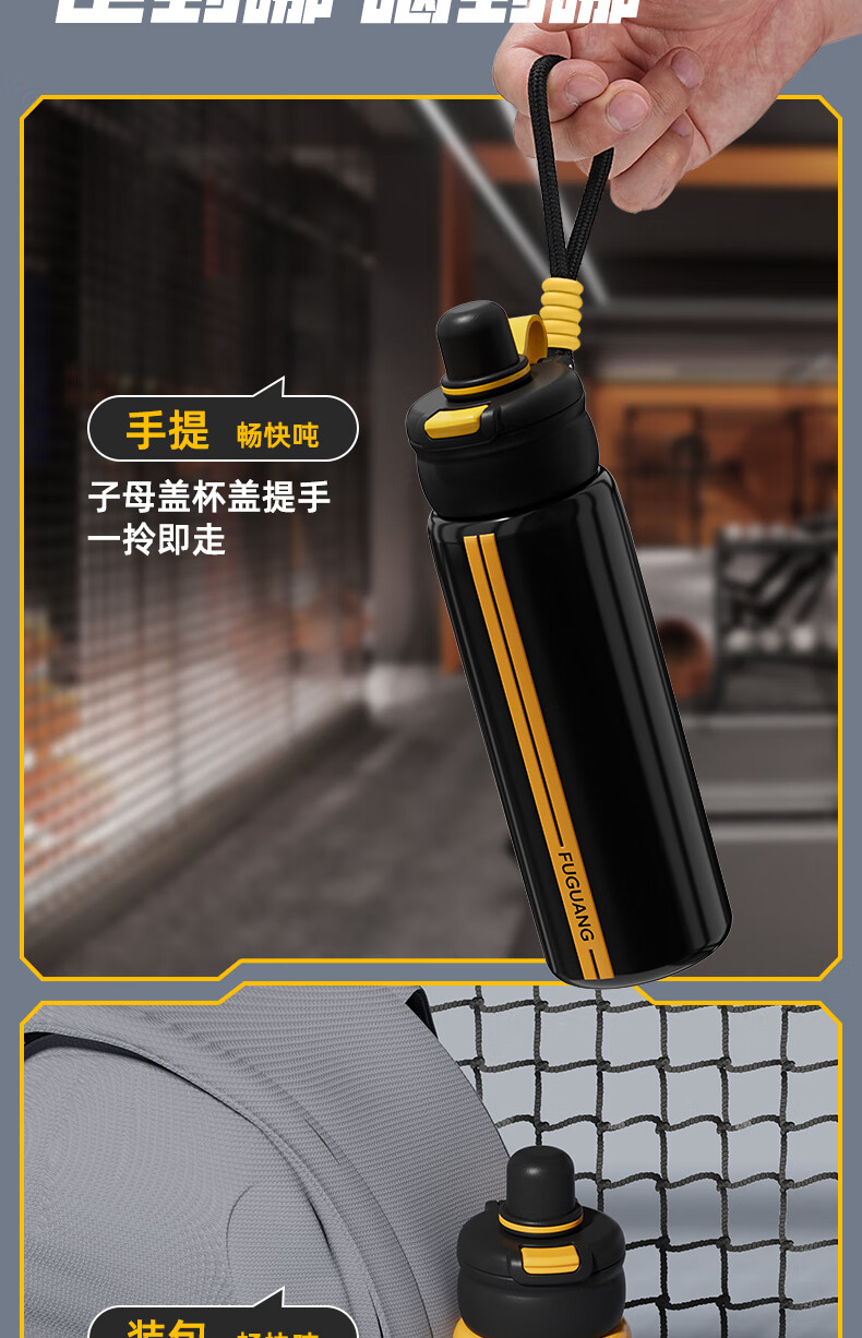 富光运动保温杯男士健身2025新款学生上学水杯便携车载不锈钢杯子水壶 闪电黄700ml【吸管+直饮+316L内胆】