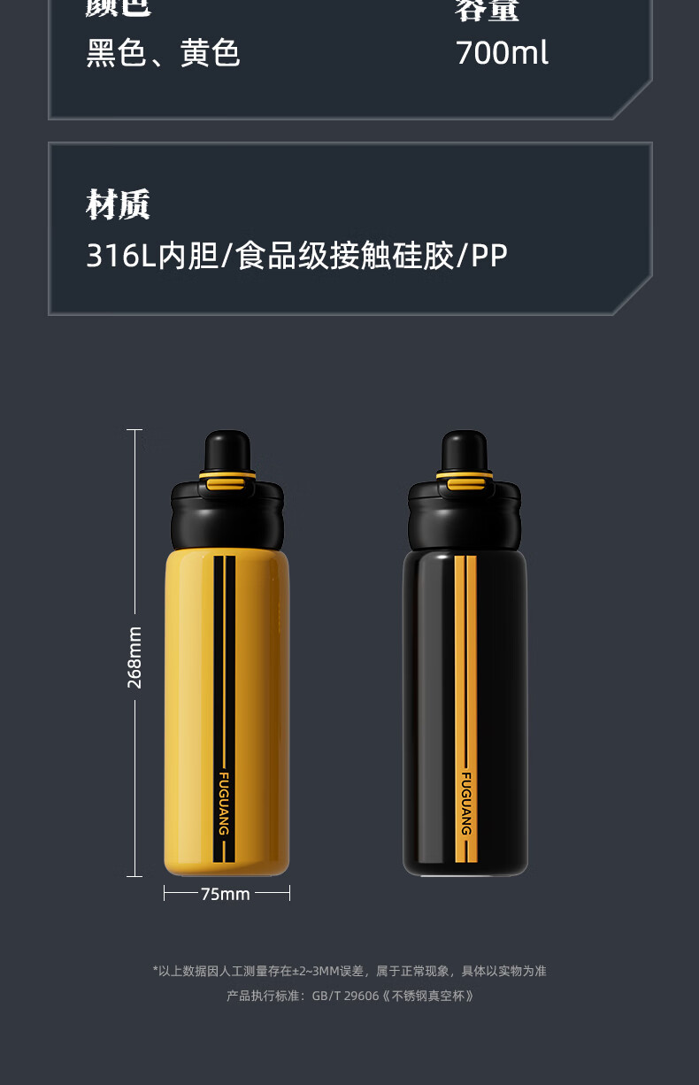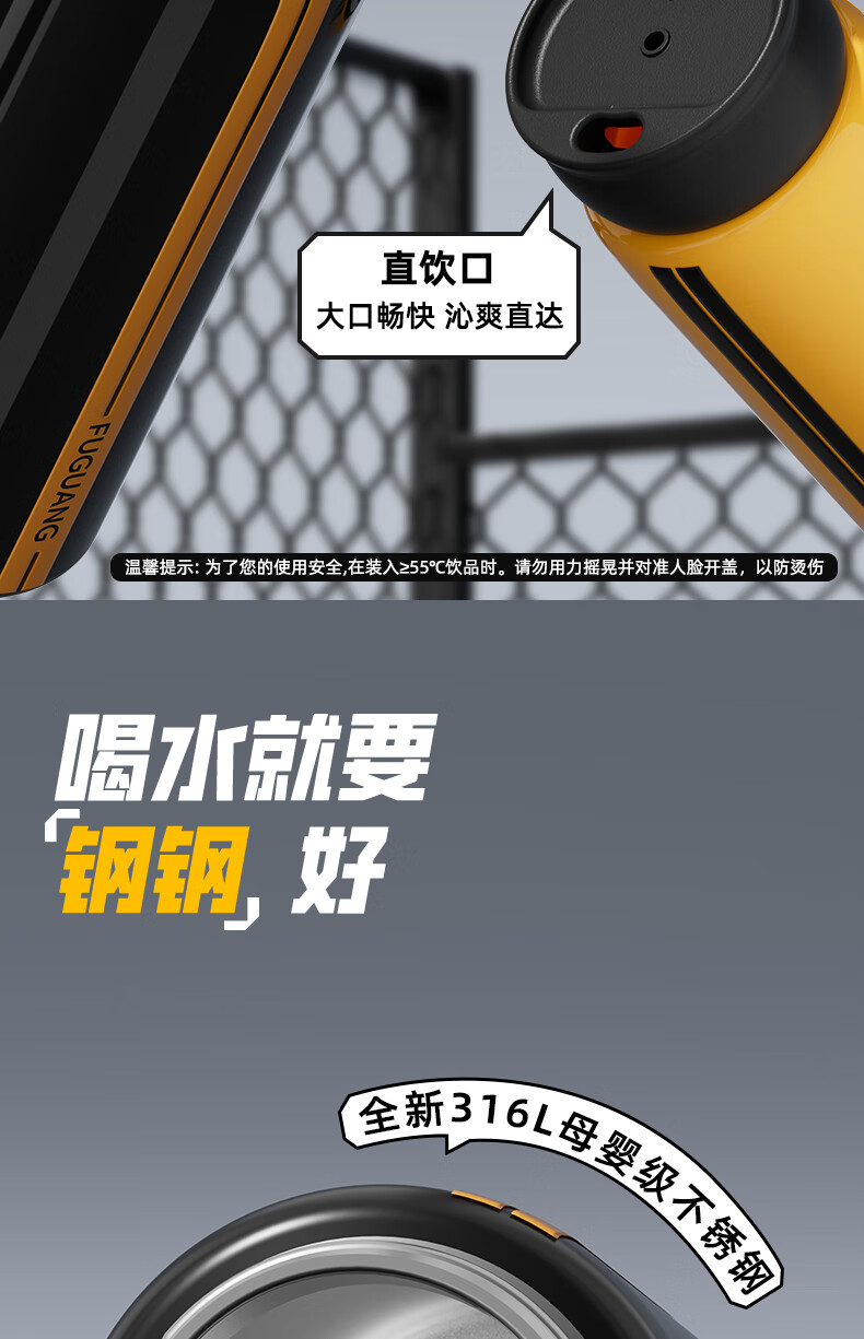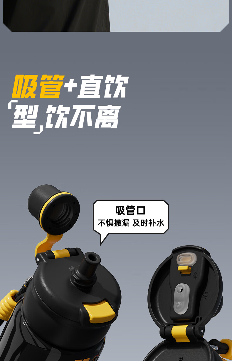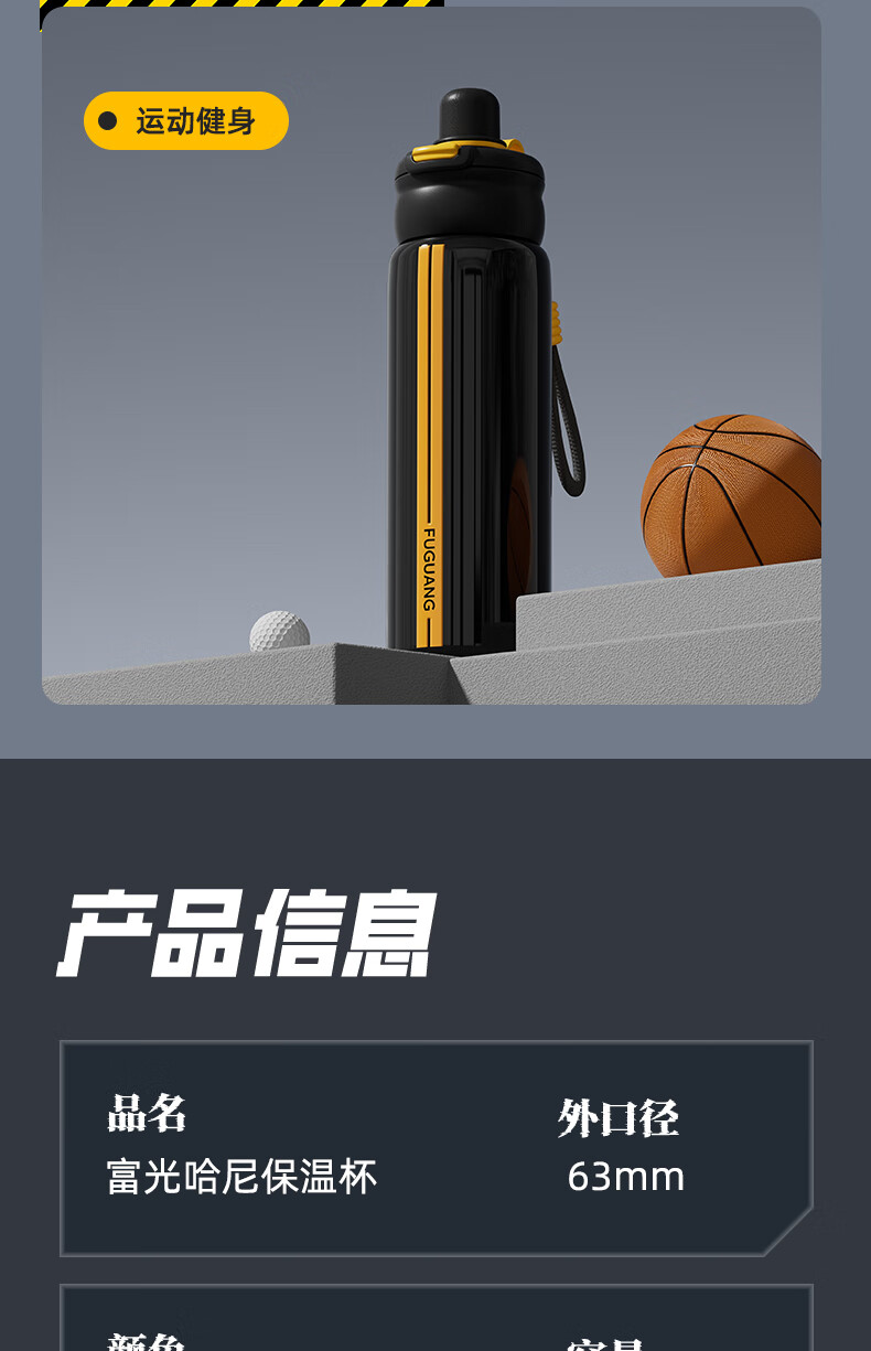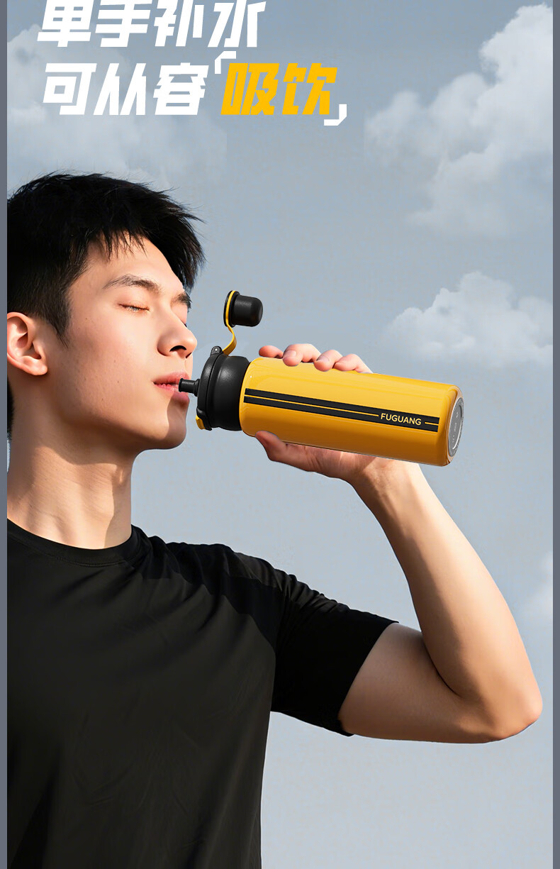 富光运动保温杯男士健身2025新款学生上学水杯便携车载不锈钢杯子水壶 闪电黄700ml【吸管+直饮+316L内胆】