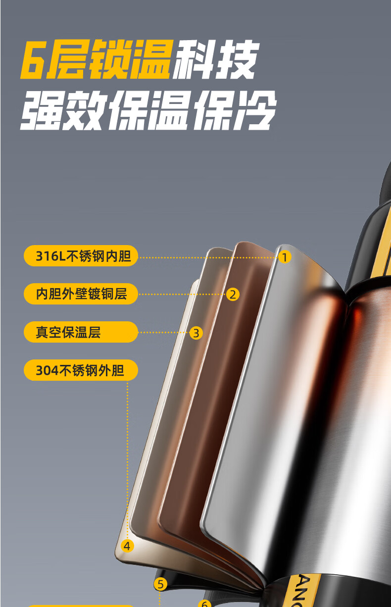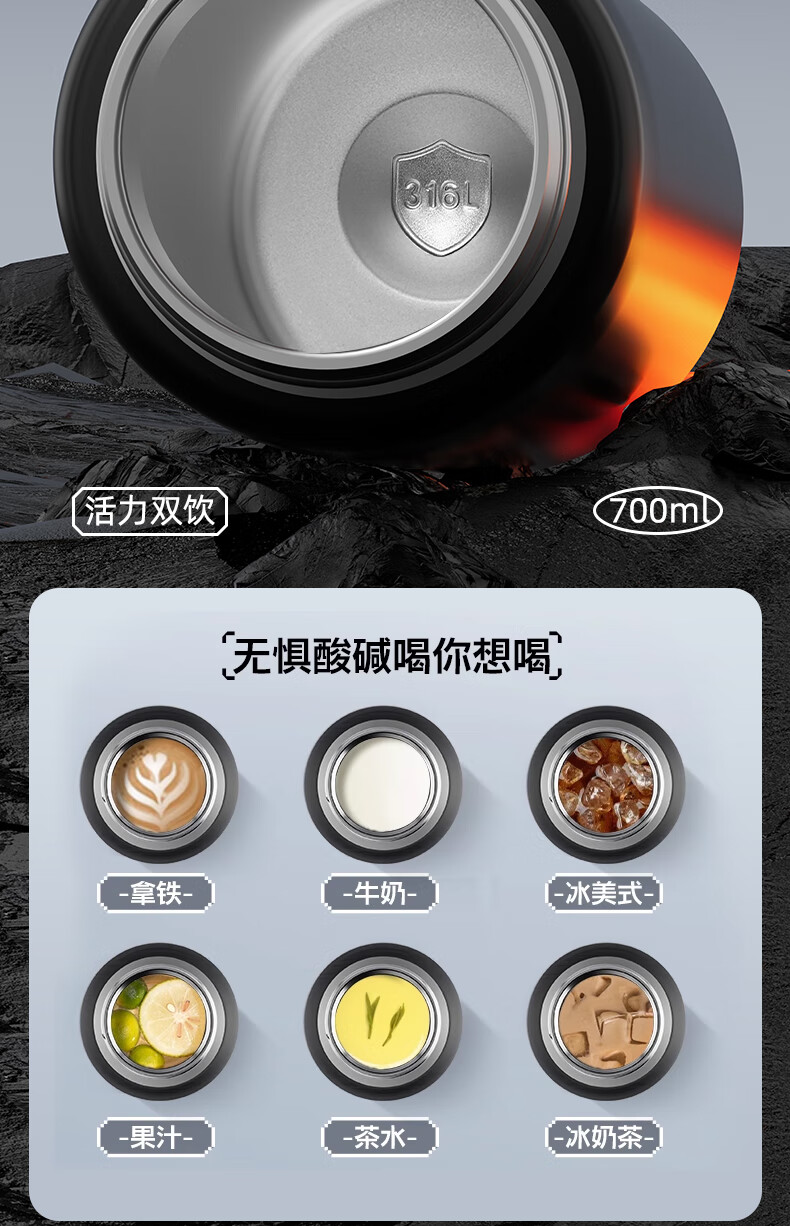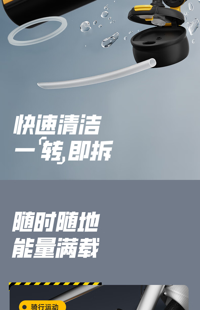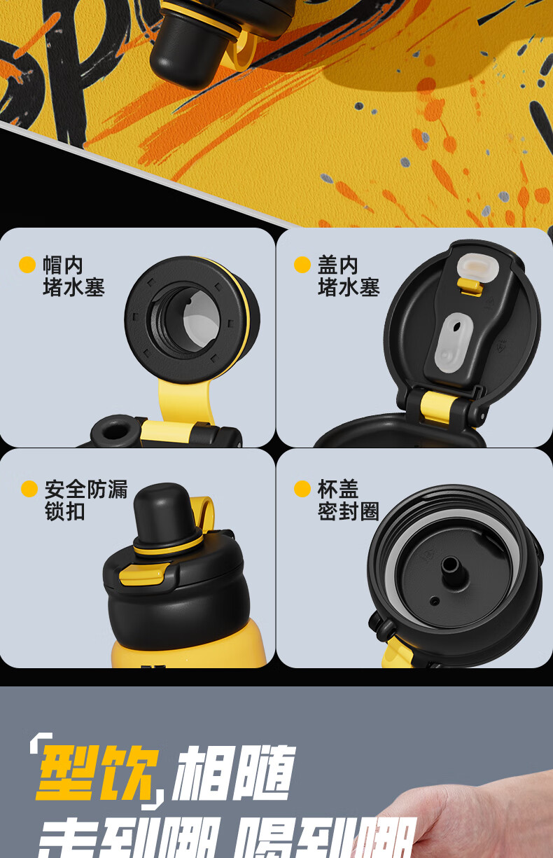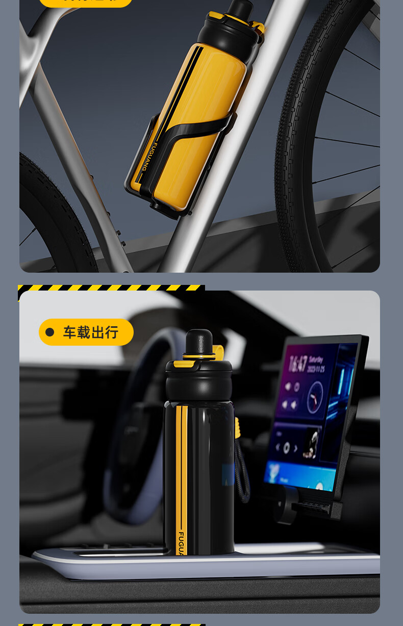富光运动保温杯男士健身2025新款学生上学水杯便携车载不锈钢杯子水壶 闪电黄700ml【吸管+直饮+316L内胆】