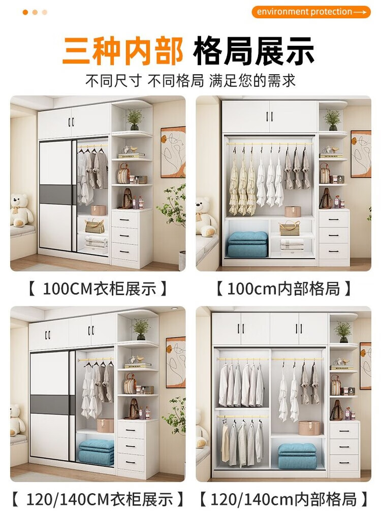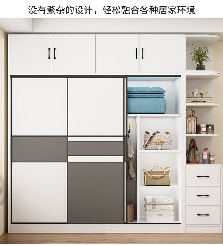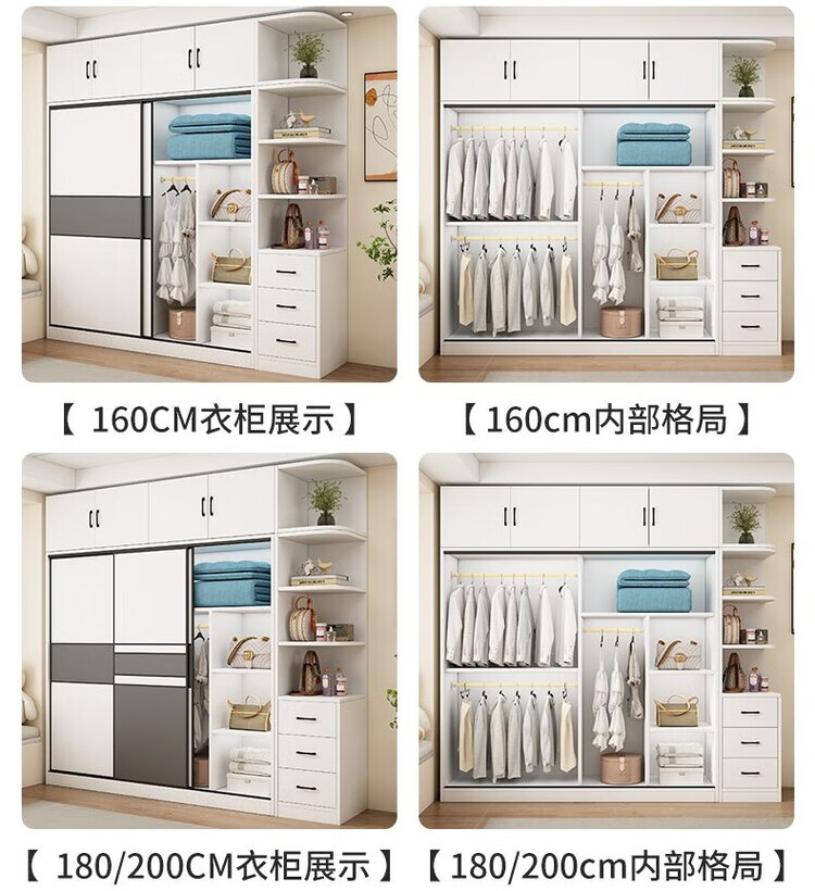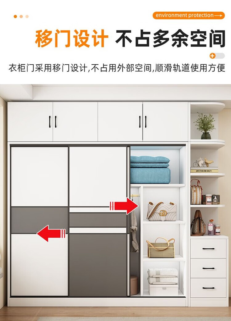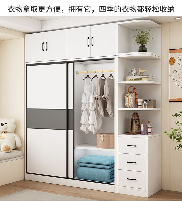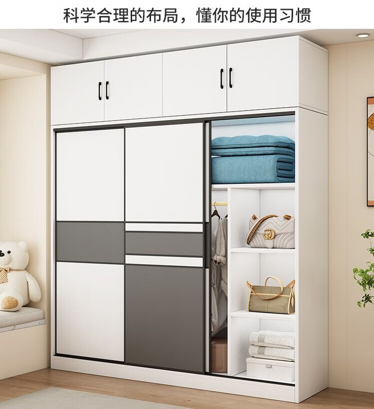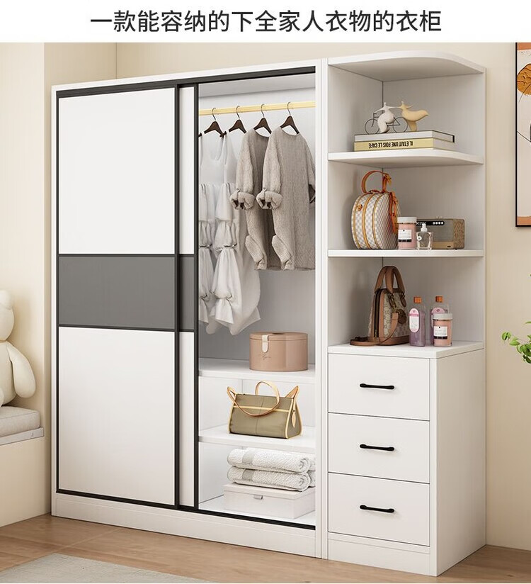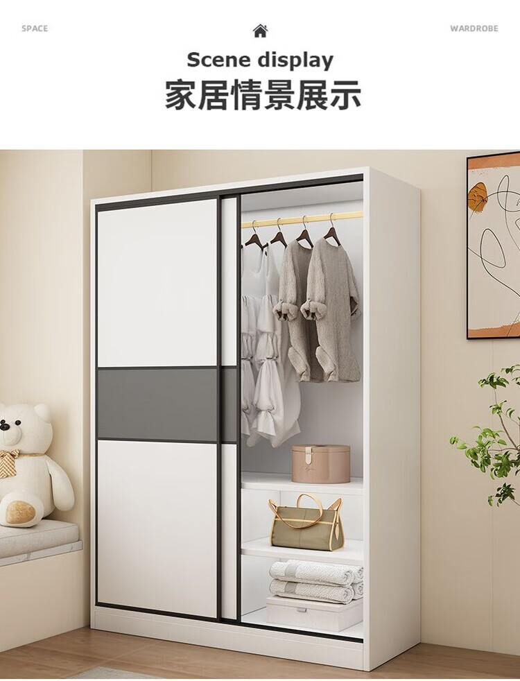 弘星隆推拉门衣柜家用卧室网红柜子结实耐用出租房屋木质儿童 长100*180cm 衣柜 送货上楼+自行安装(彩门款)