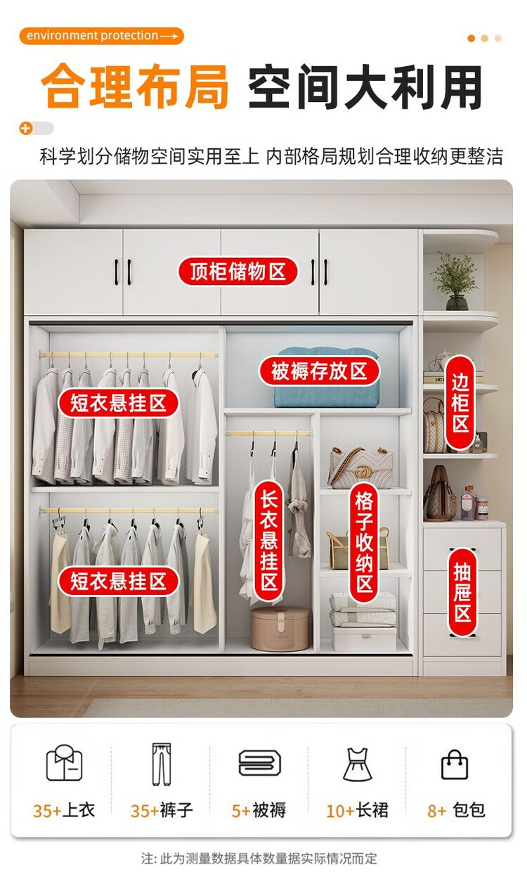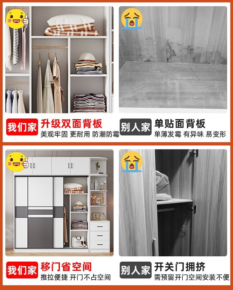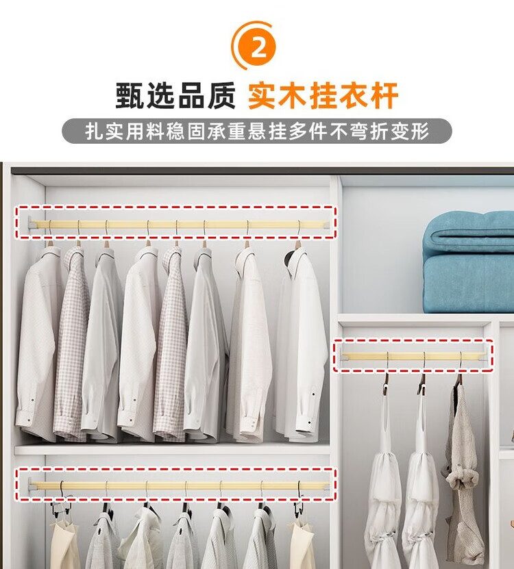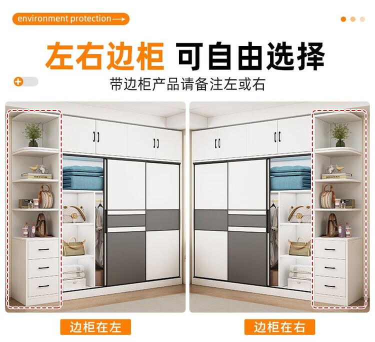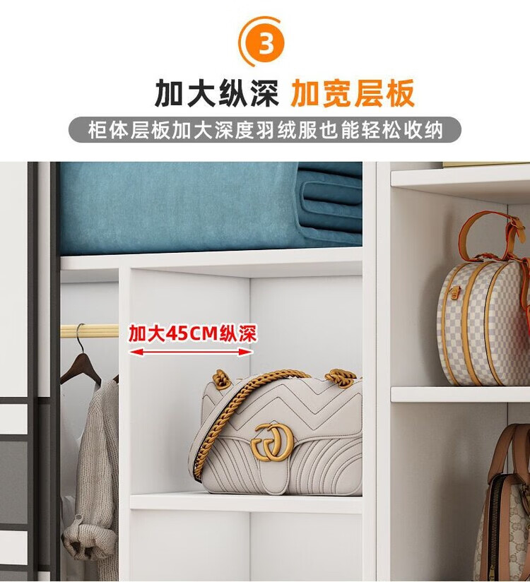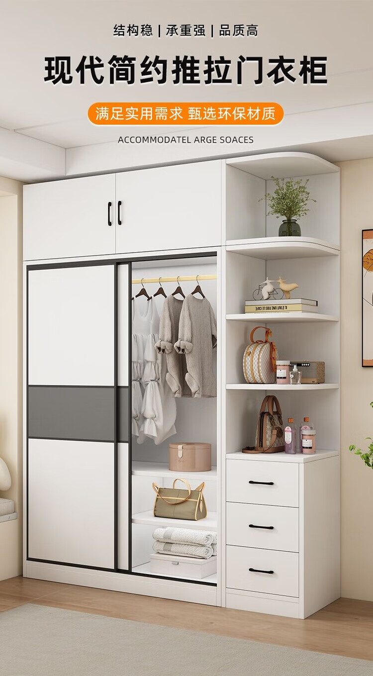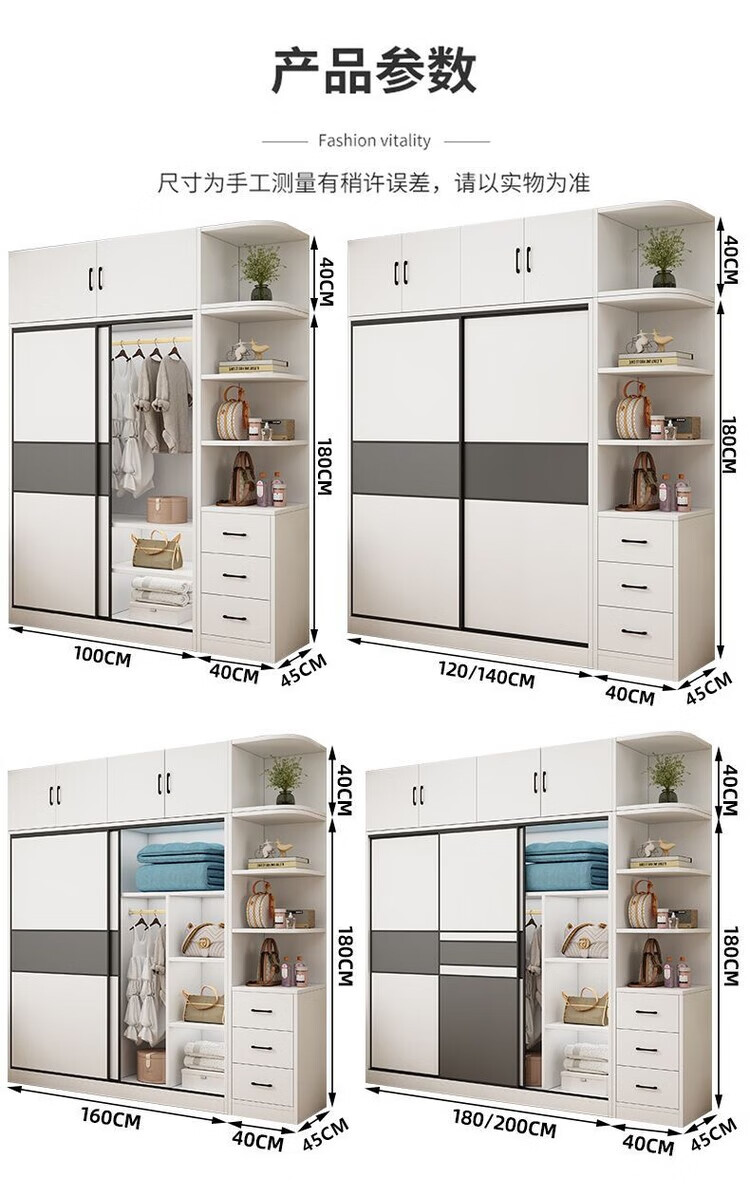 弘星隆推拉门衣柜家用卧室网红柜子结实耐用出租房屋木质儿童 长100*180cm 衣柜 送货上楼+自行安装(彩门款)