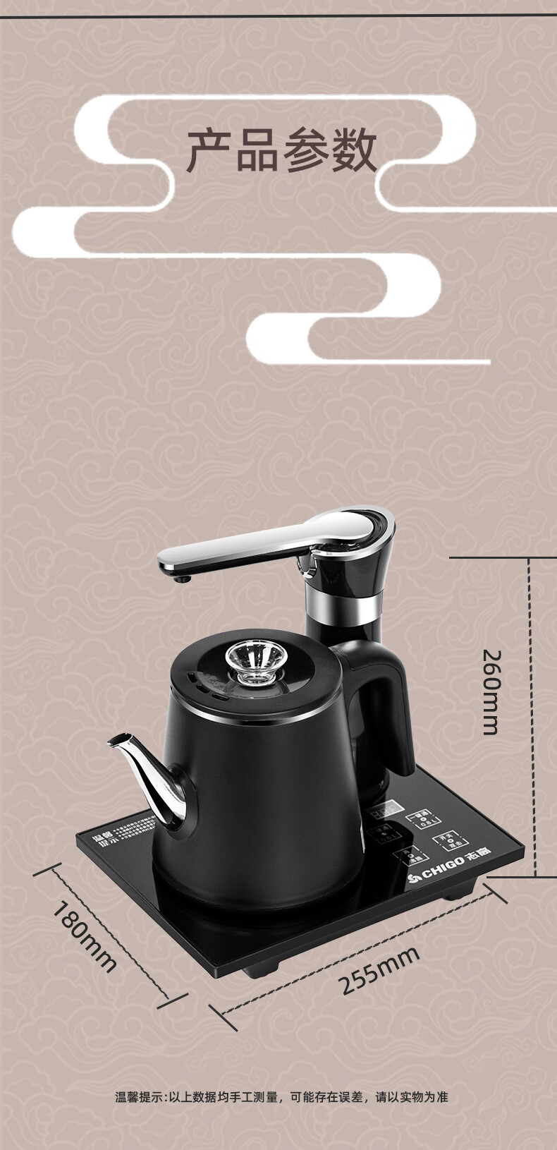 志高(CHIGO)全自动上水电热水壶 茶台烧水壶自动抽水一体机 茶桌泡茶专用电茶炉电水壶电茶壶煮茶器JBL-D6161