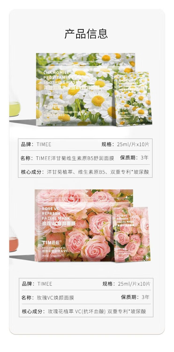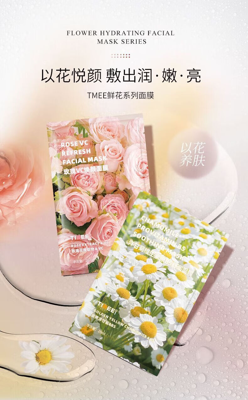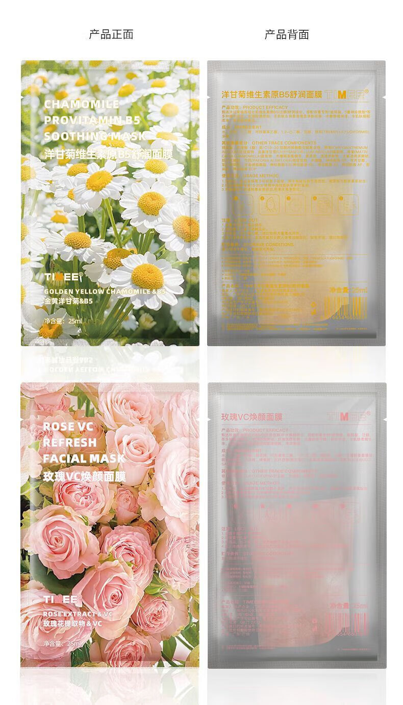 韩诗盈 KOESIREDtimee鲜花面膜洋甘菊玫瑰VC补水舒润男女学生可用保湿舒缓面膜 玫瑰VC焕颜面膜*3盒【10片/盒】