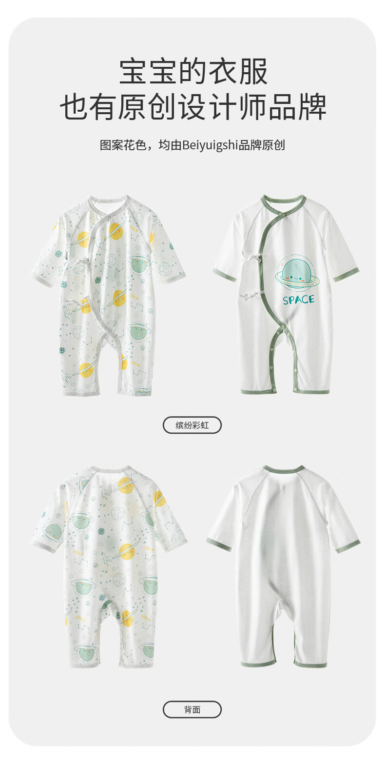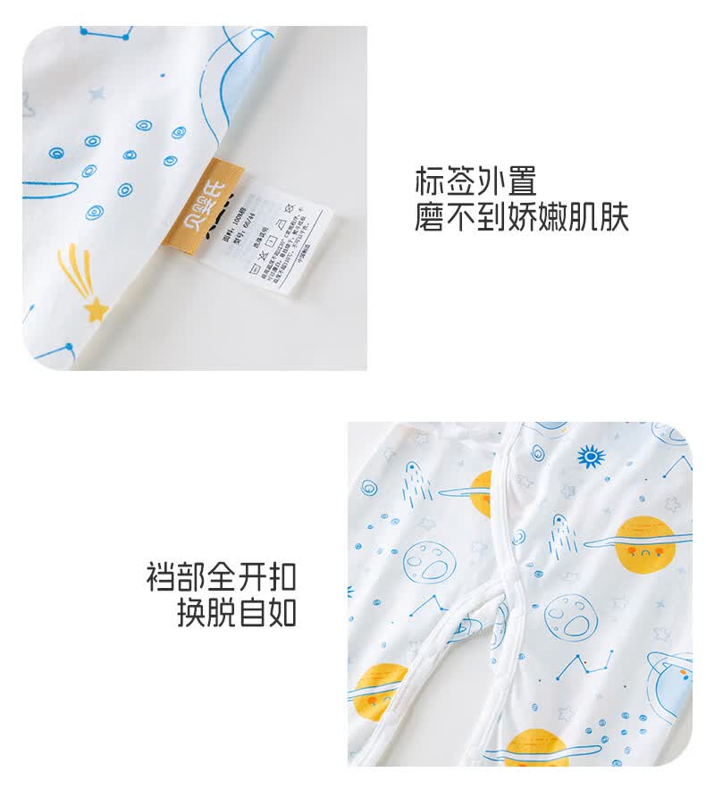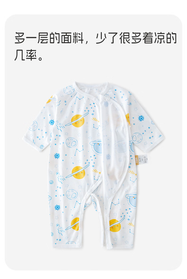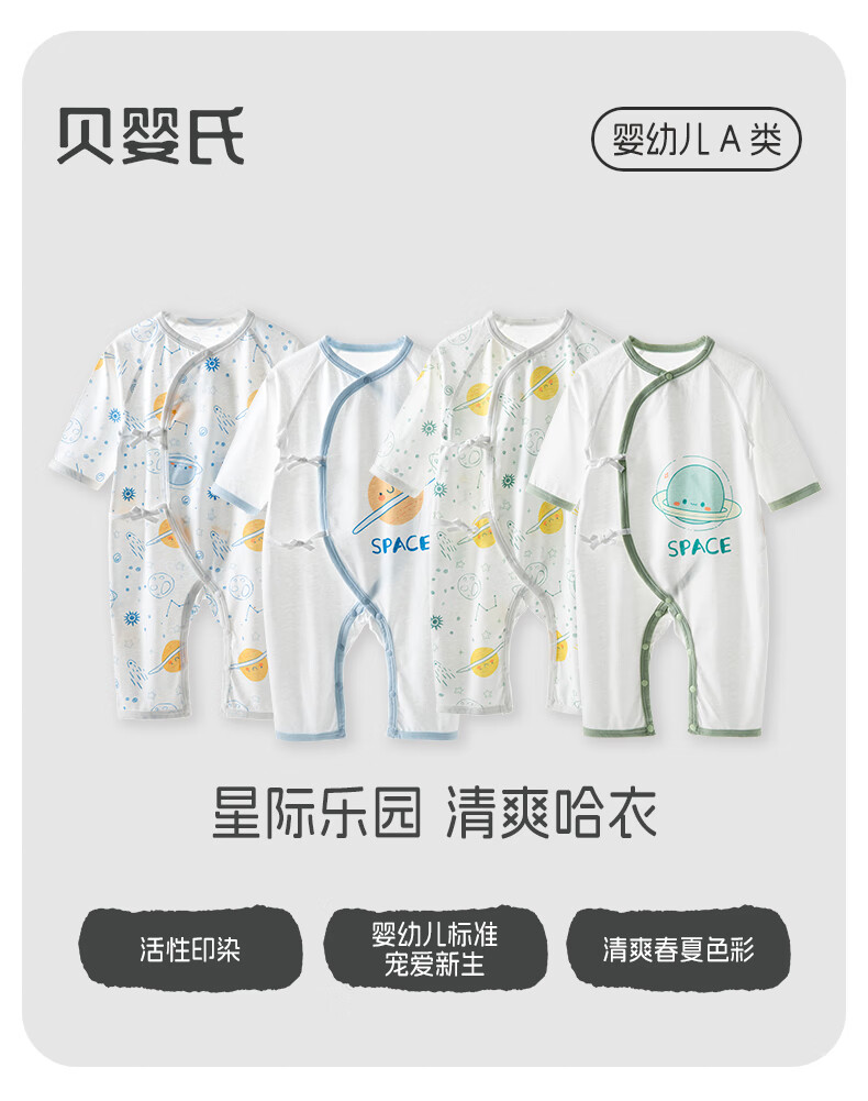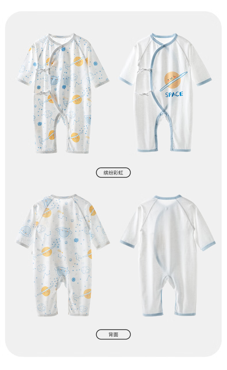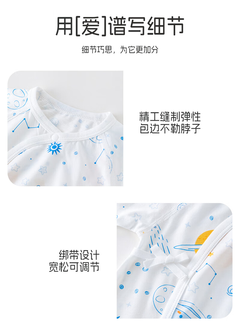 贝婴氏【2件装】婴儿夏季连体衣宝宝哈衣纯棉新生儿四季和尚新疆长绒棉 星际乐园-蓝 59cm