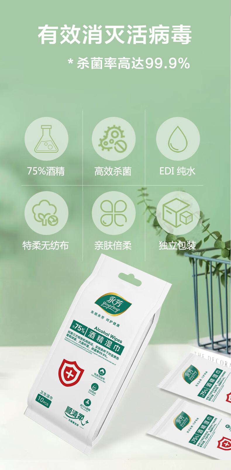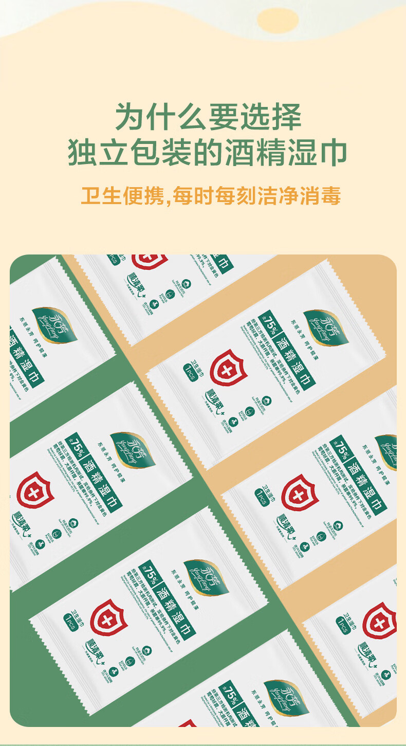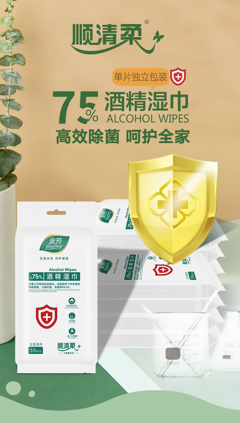 顺清柔75%酒精湿巾 杀菌率99.9% 便携消毒杀菌湿纸巾独立装10片*10包