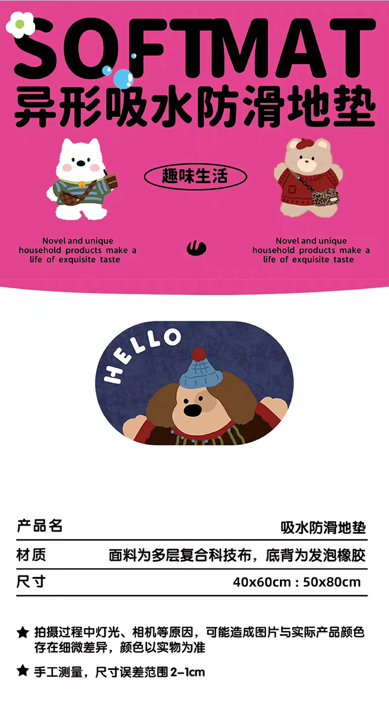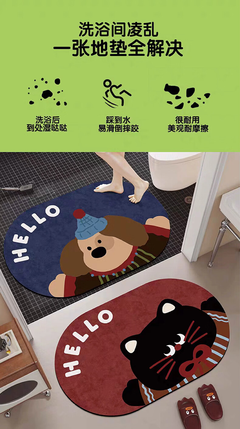 金玉铭川硅藻泥浴室地垫卫生间吸水垫卫浴厕所门口脚垫家用入户门防滑垫子 GZN-J怀旧-Y17(一方一圆 共2件) 40X60cm【吸水速干防滑】