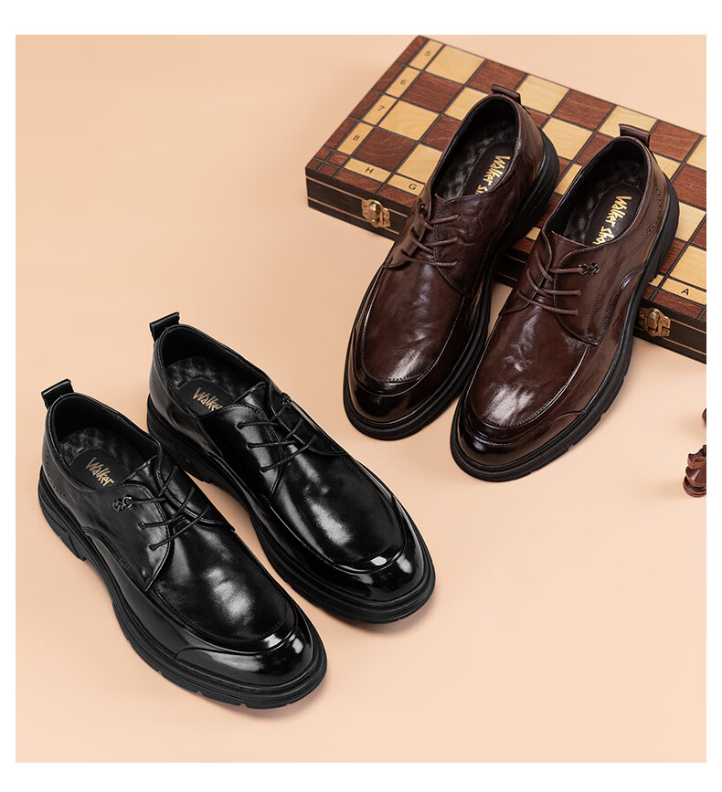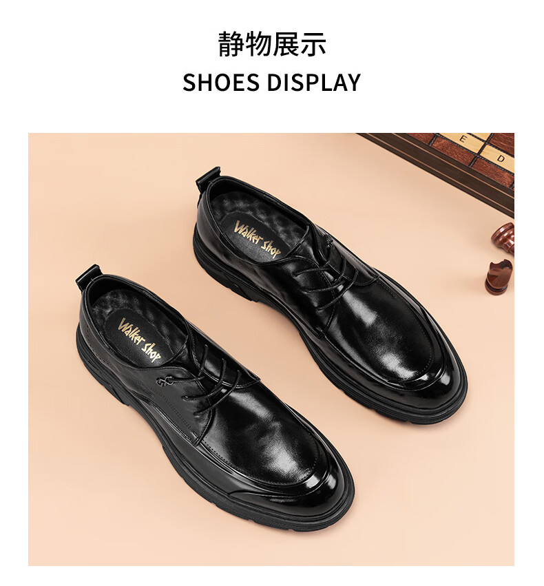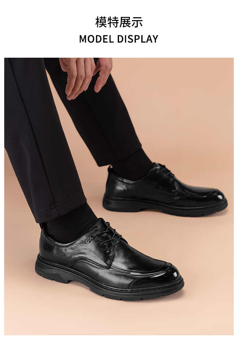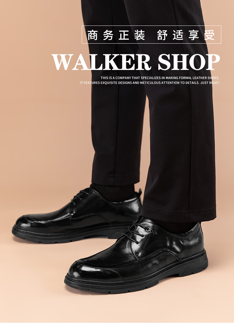 Walker Shop皮鞋男款2026新款真皮商务西装鞋男休闲增高夏季透气软底男士皮鞋 高档黑色【品牌男鞋 礼盒包装】 41