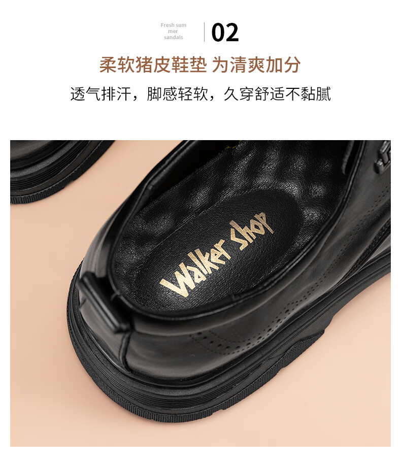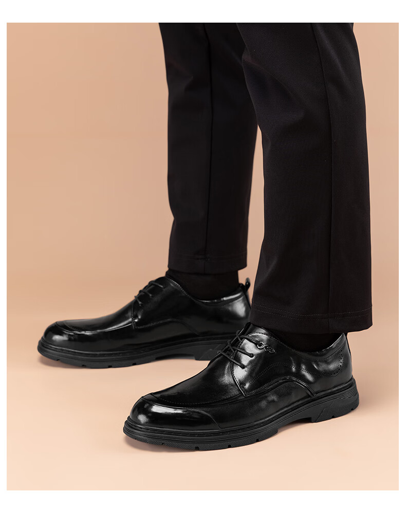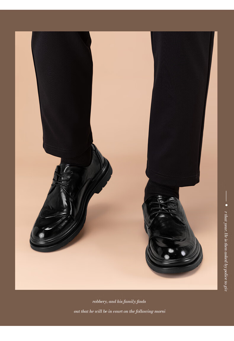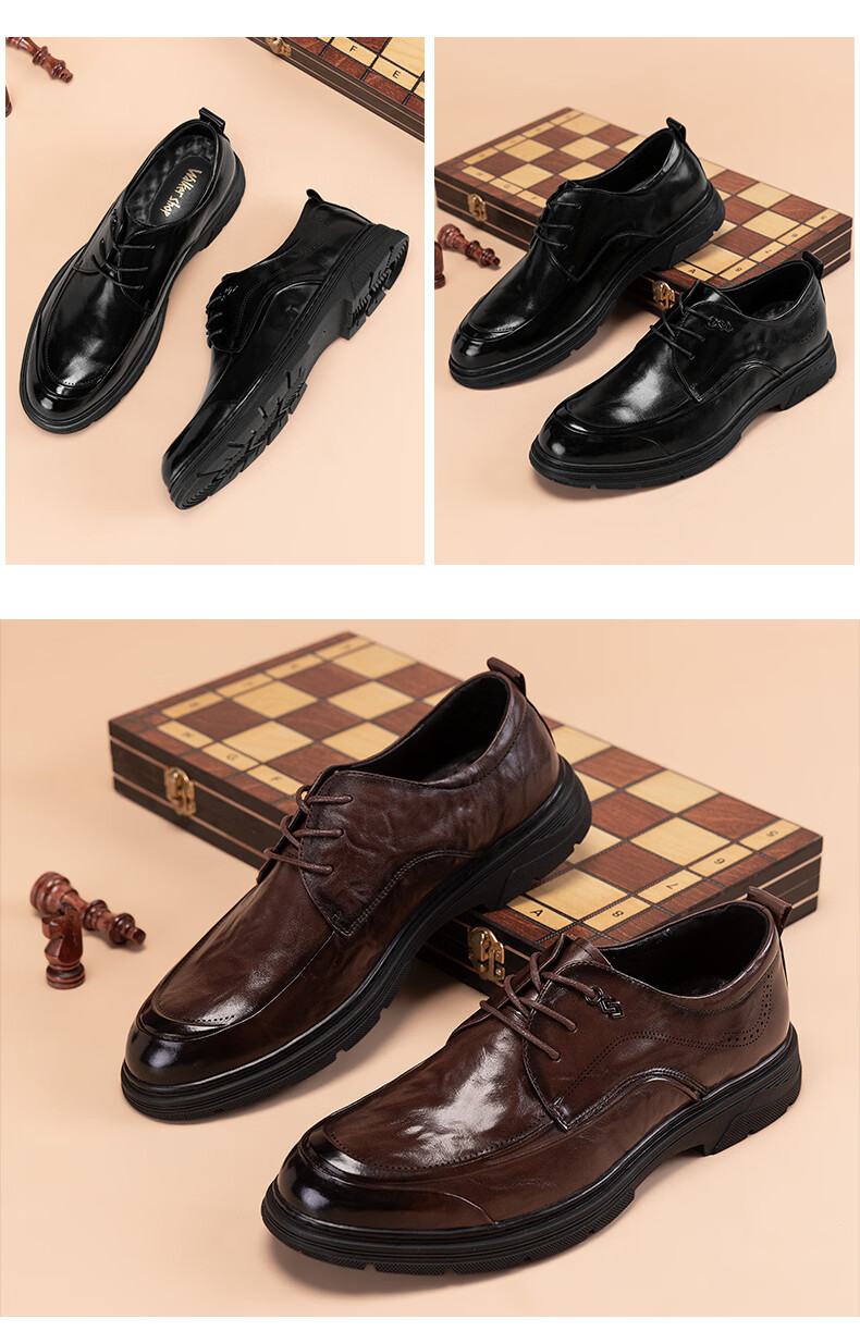 Walker Shop皮鞋男款2026新款真皮商务西装鞋男休闲增高夏季透气软底男士皮鞋 高档黑色【品牌男鞋 礼盒包装】 41