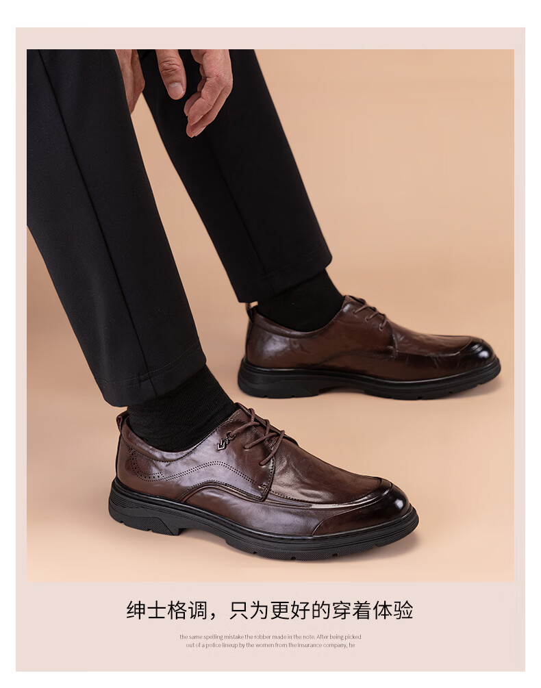 【厂家直供】2024秋季新款男皮鞋工作鞋透气软底休闲鞋爸爸鞋中老 818皮鞋棕色(一双) 43