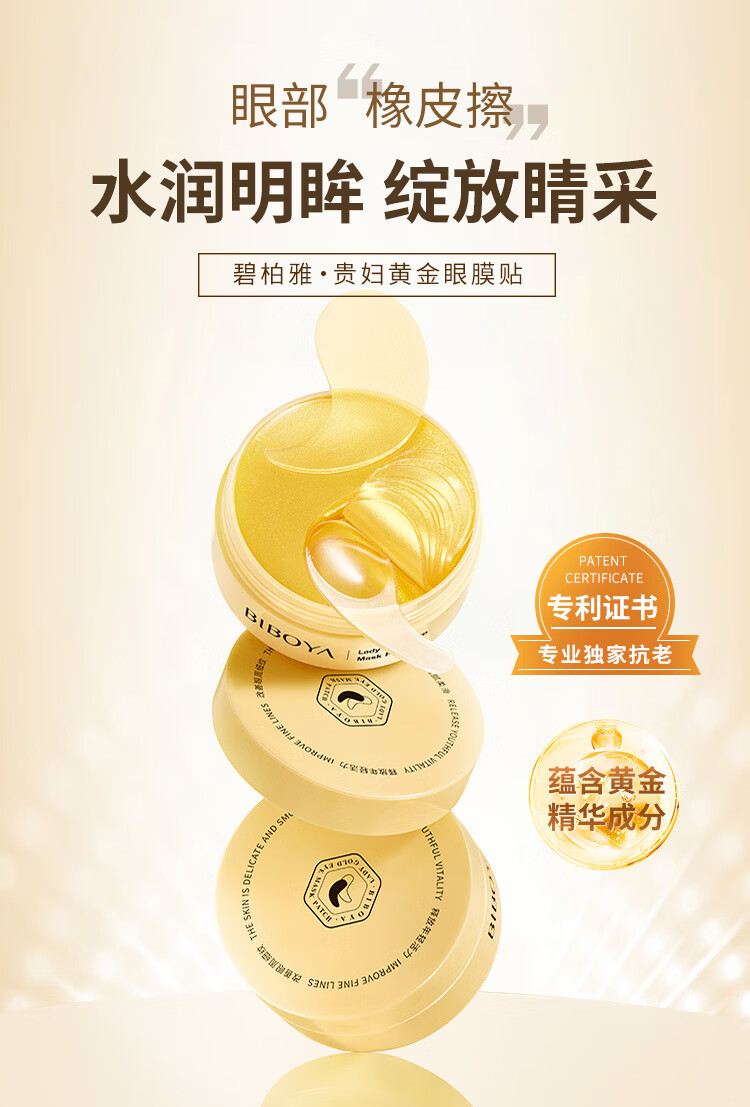 碧柏雅贵妇黄金胶原蛋白眼膜贴保湿滋润冷敷贴淡黑眼圈眼纹贴抗皱眼膜 贵妇黄金胶原蛋白淡纹眼膜贴80g 60片