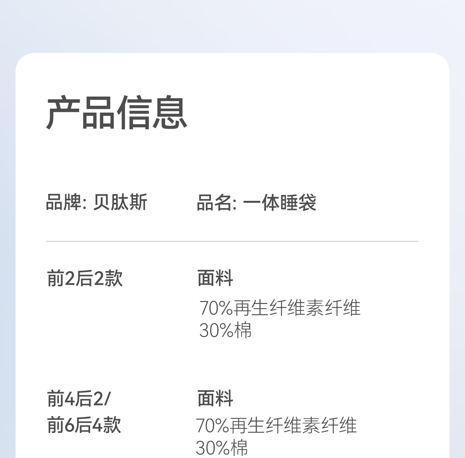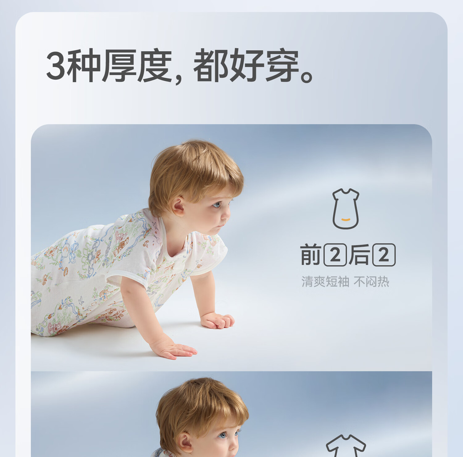 贝肽斯婴儿睡袋春夏胎脂皮儿童一体睡袋婴幼儿防踢被睡衣前4后2 星尘M