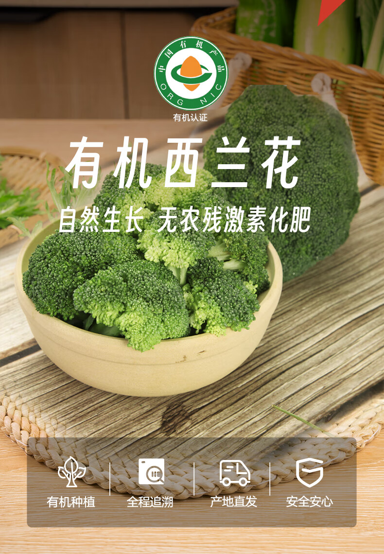京鲜生&听蔬 有机西兰花1斤净重 有机认证无农残激素 源头直发