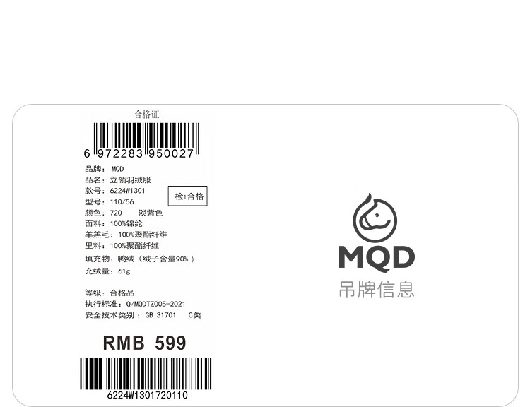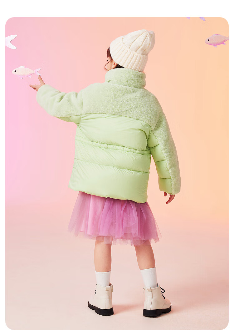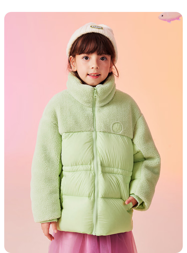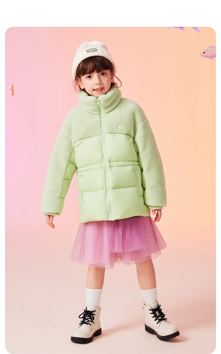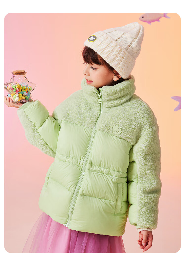 MQD童装女大童冬装立领羽绒服 浅绿 130