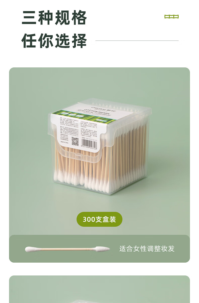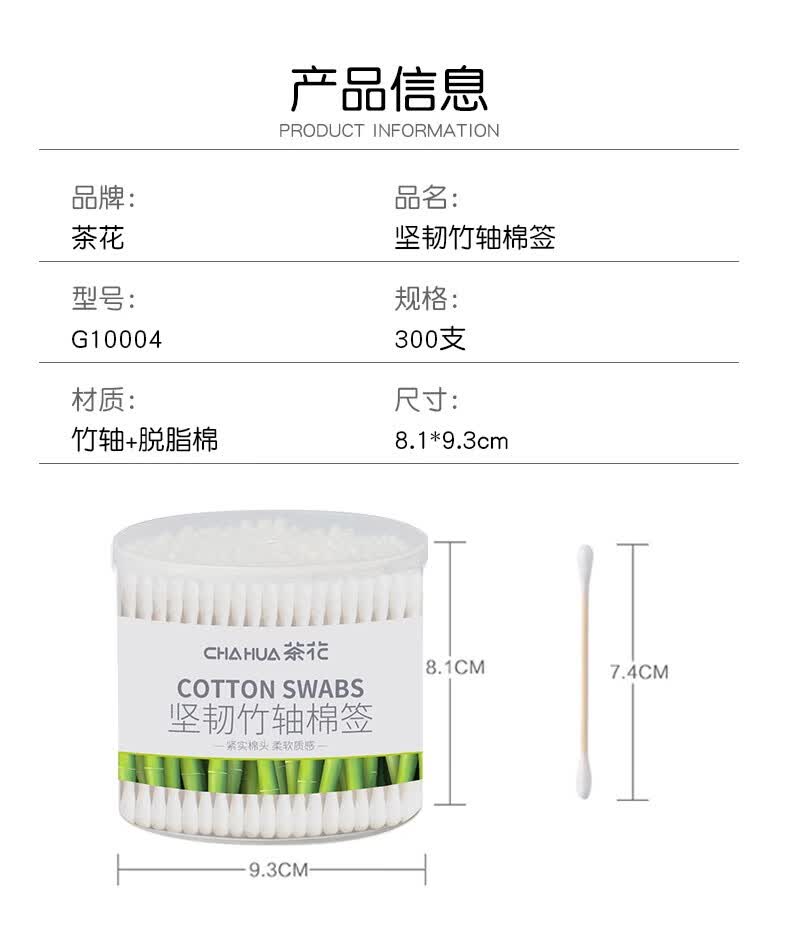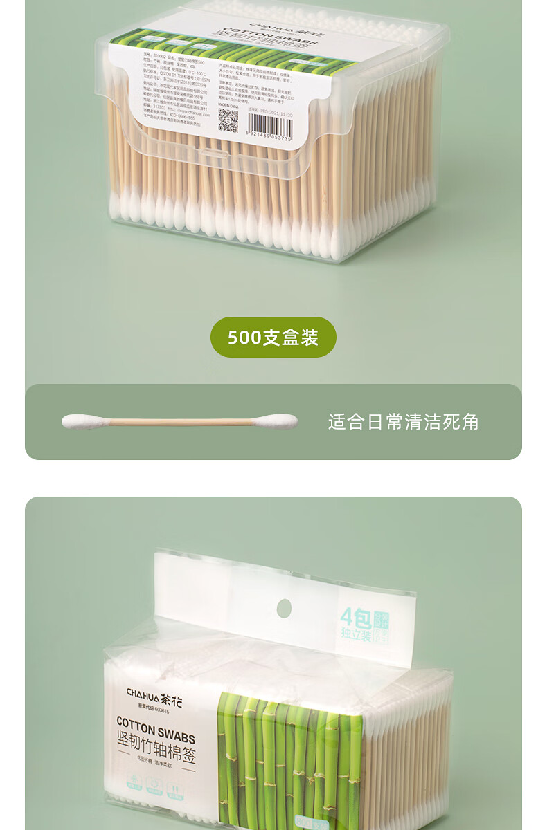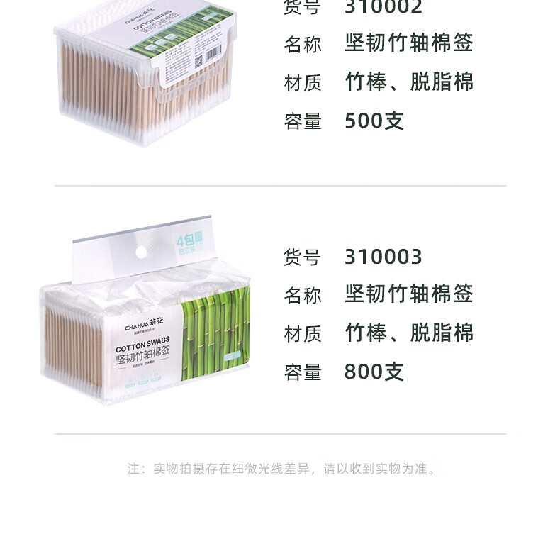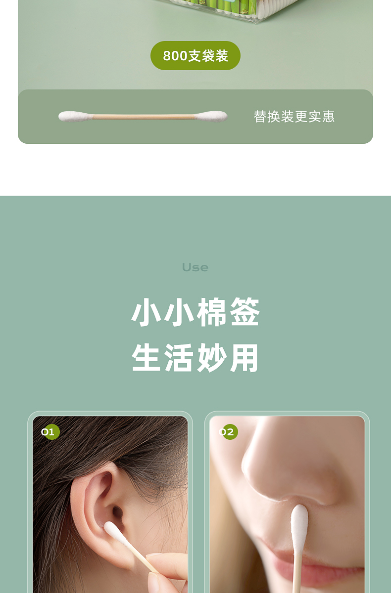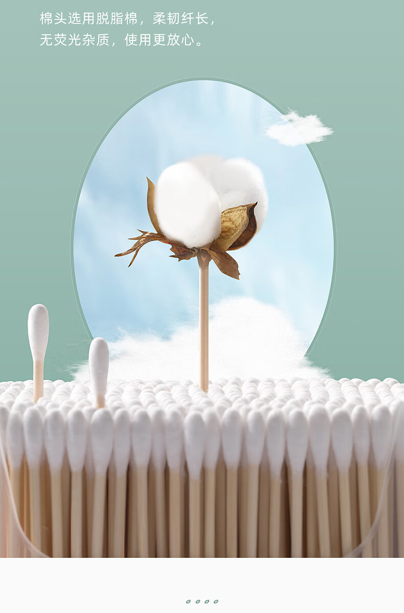 茶花新疆棉棉签木棒口红棉花棒掏耳朵尖头化妆用双头专用棉婴儿 袋装竹轴棉签800支(双圆头)
