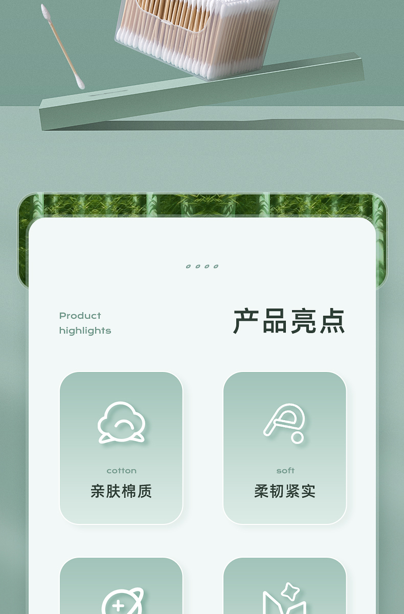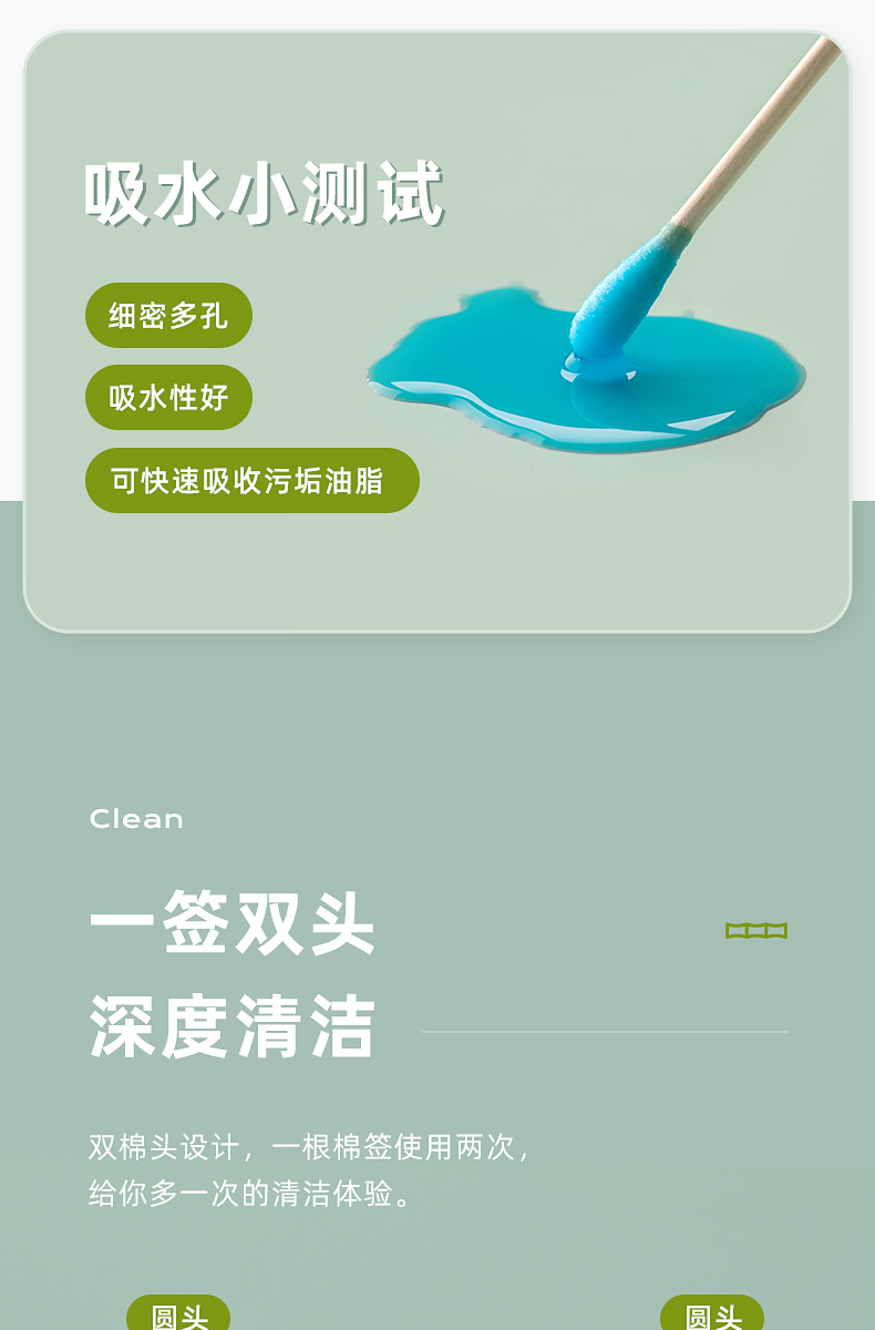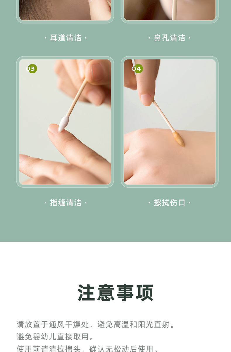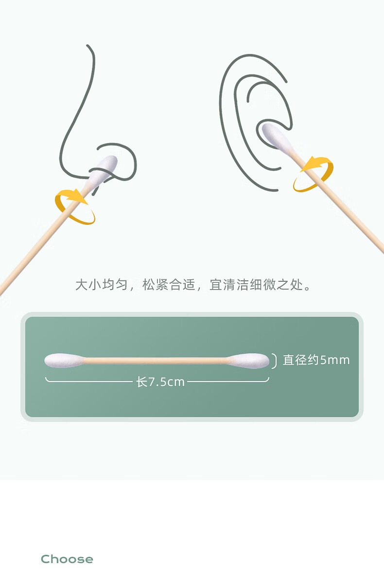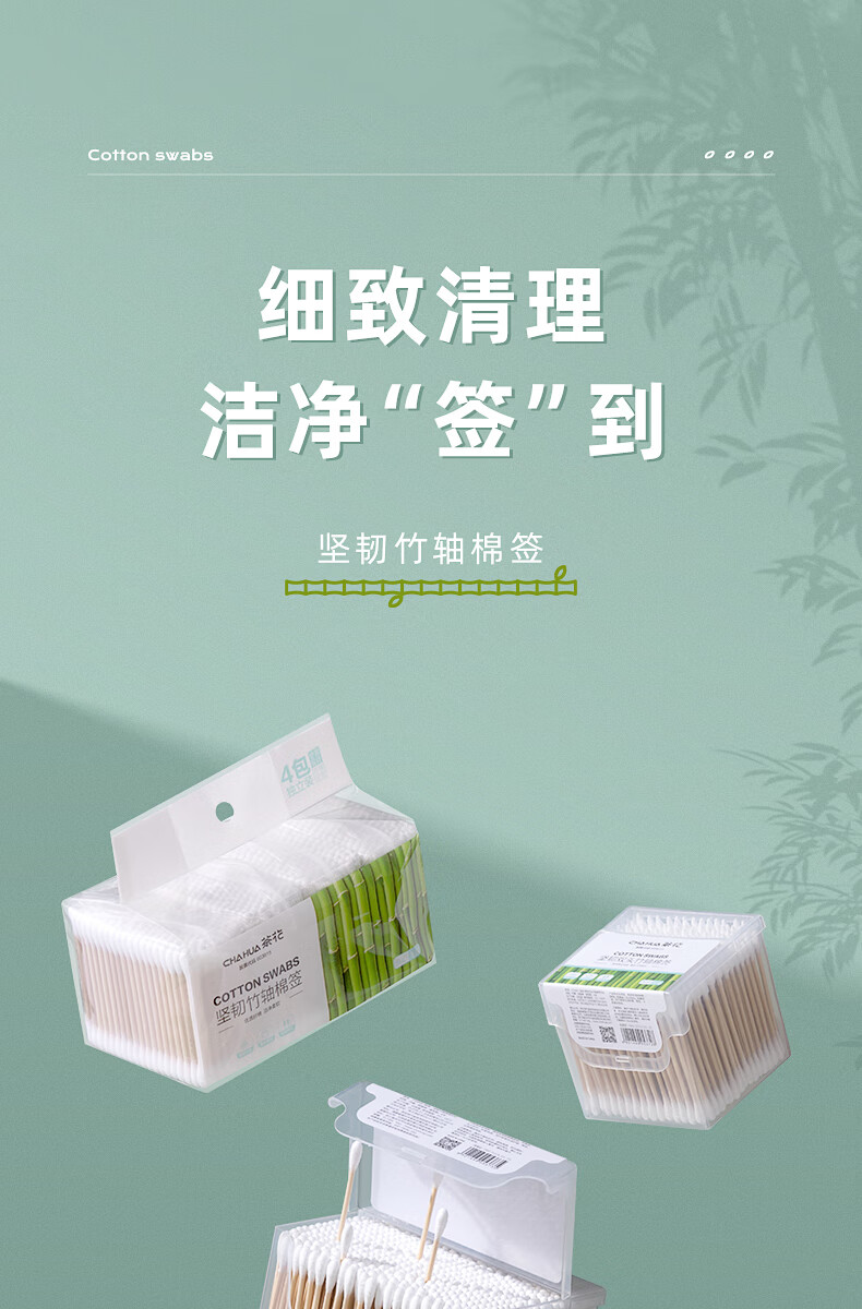 茶花新疆棉棉签木棒口红棉花棒掏耳朵尖头化妆用双头专用棉婴儿 袋装竹轴棉签800支(双圆头)