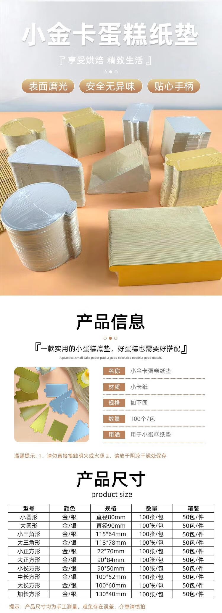 现货慕斯底托蛋糕托糕点心食品垫100张加厚硬纸片底托金卡蛋糕垫 大圆形金卡食品级蛋糕底托