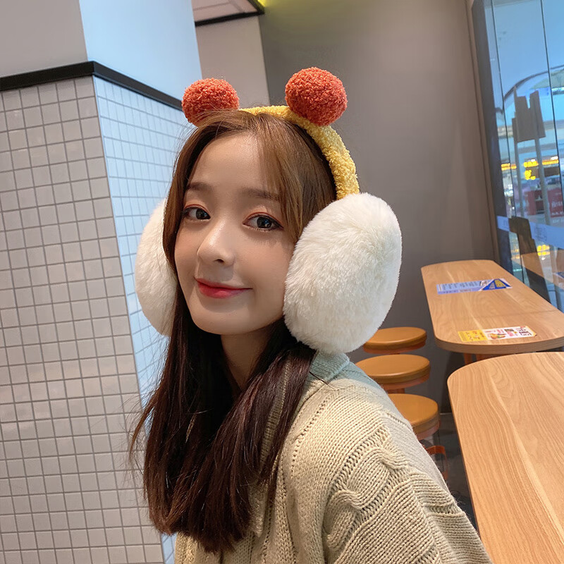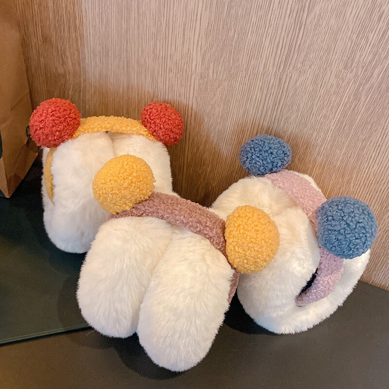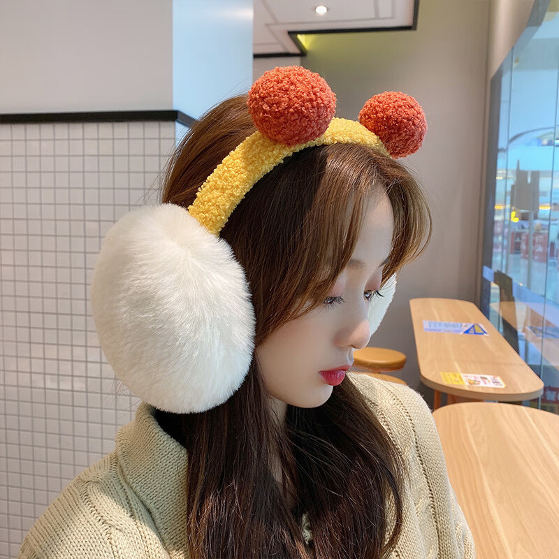 淘有型毛绒耳罩冬季女士加绒保暖耳捂子学生可爱少女百搭耳包防寒护耳套 双毛球耳罩 黄蓝双球